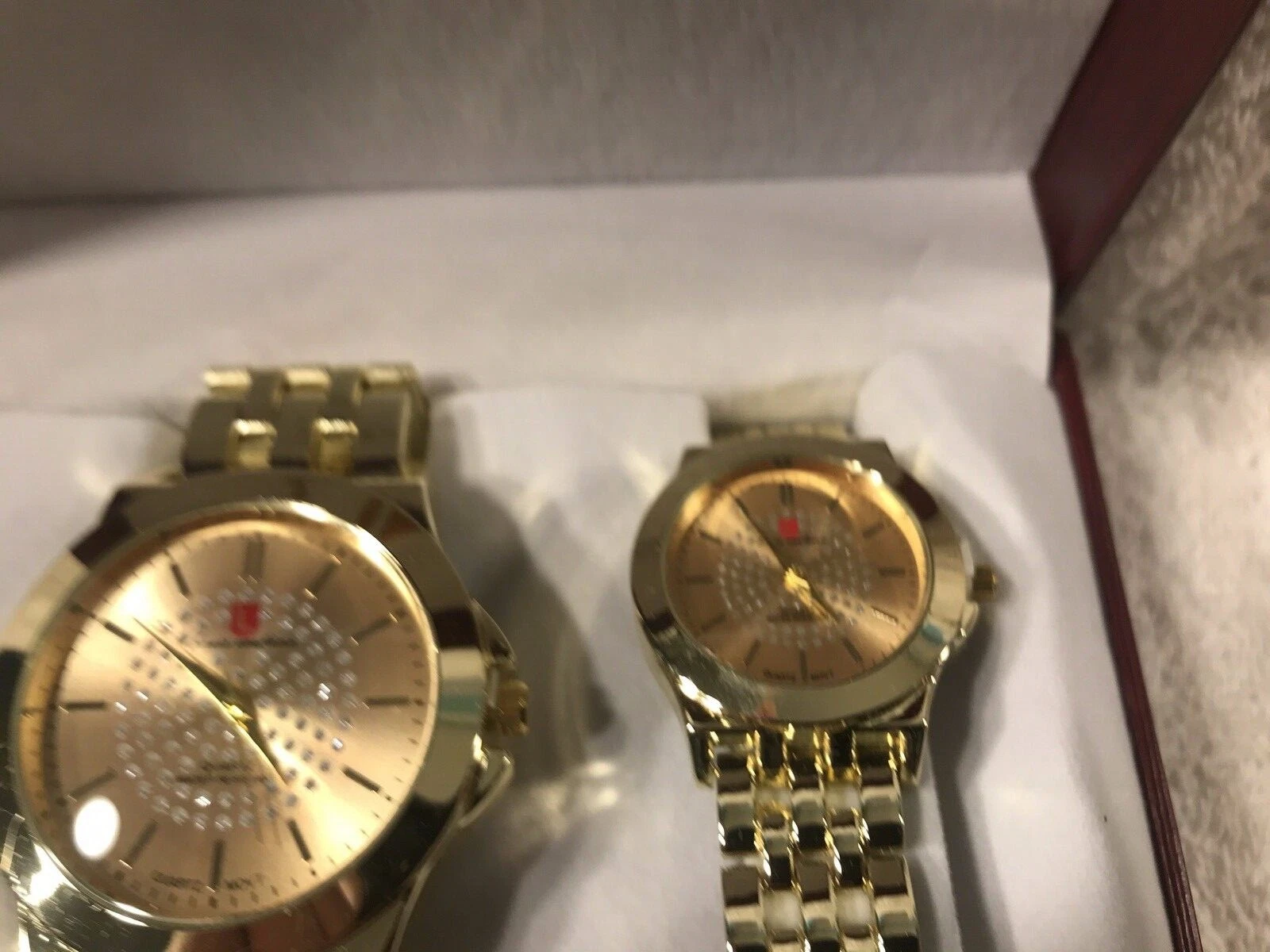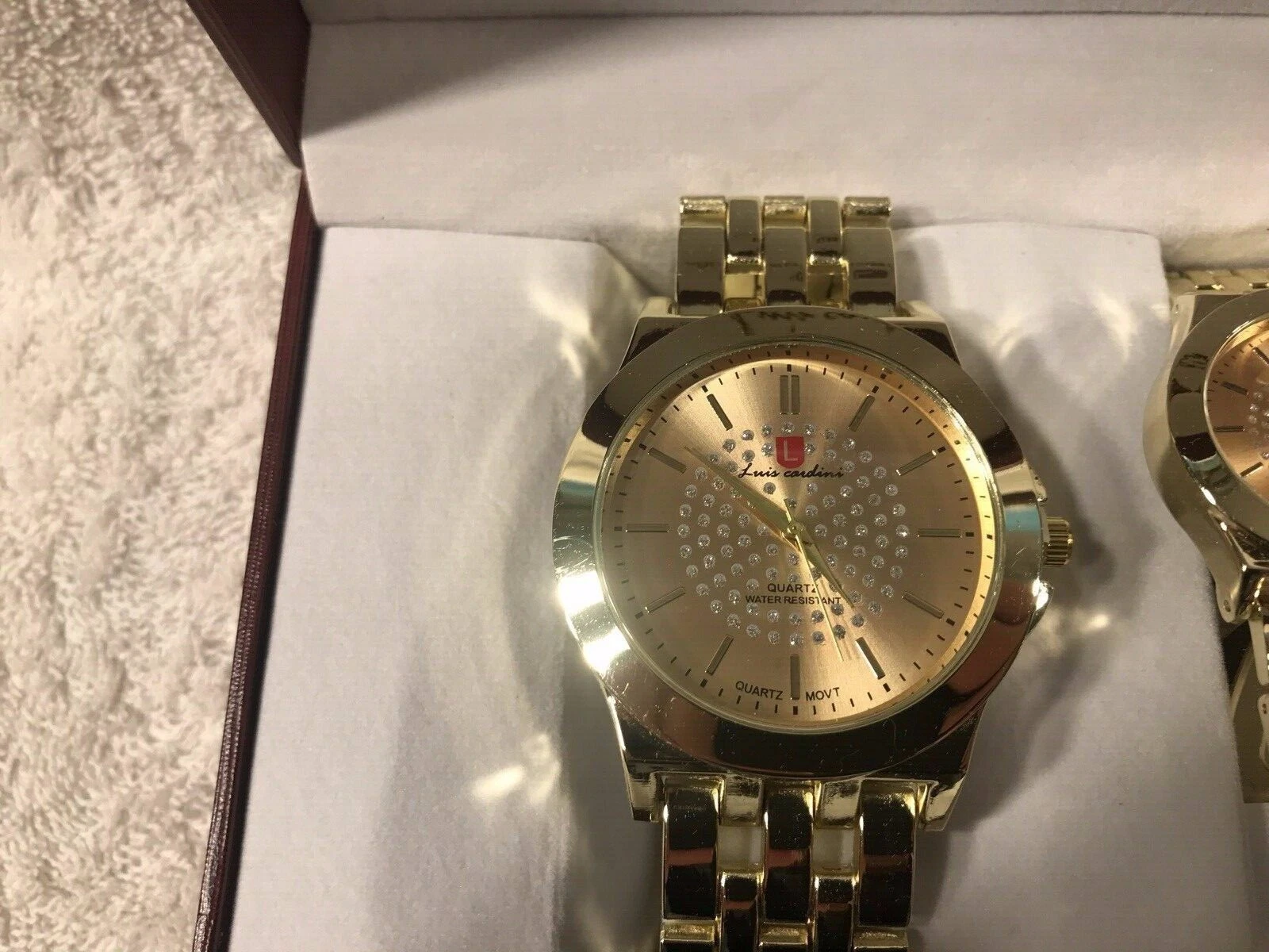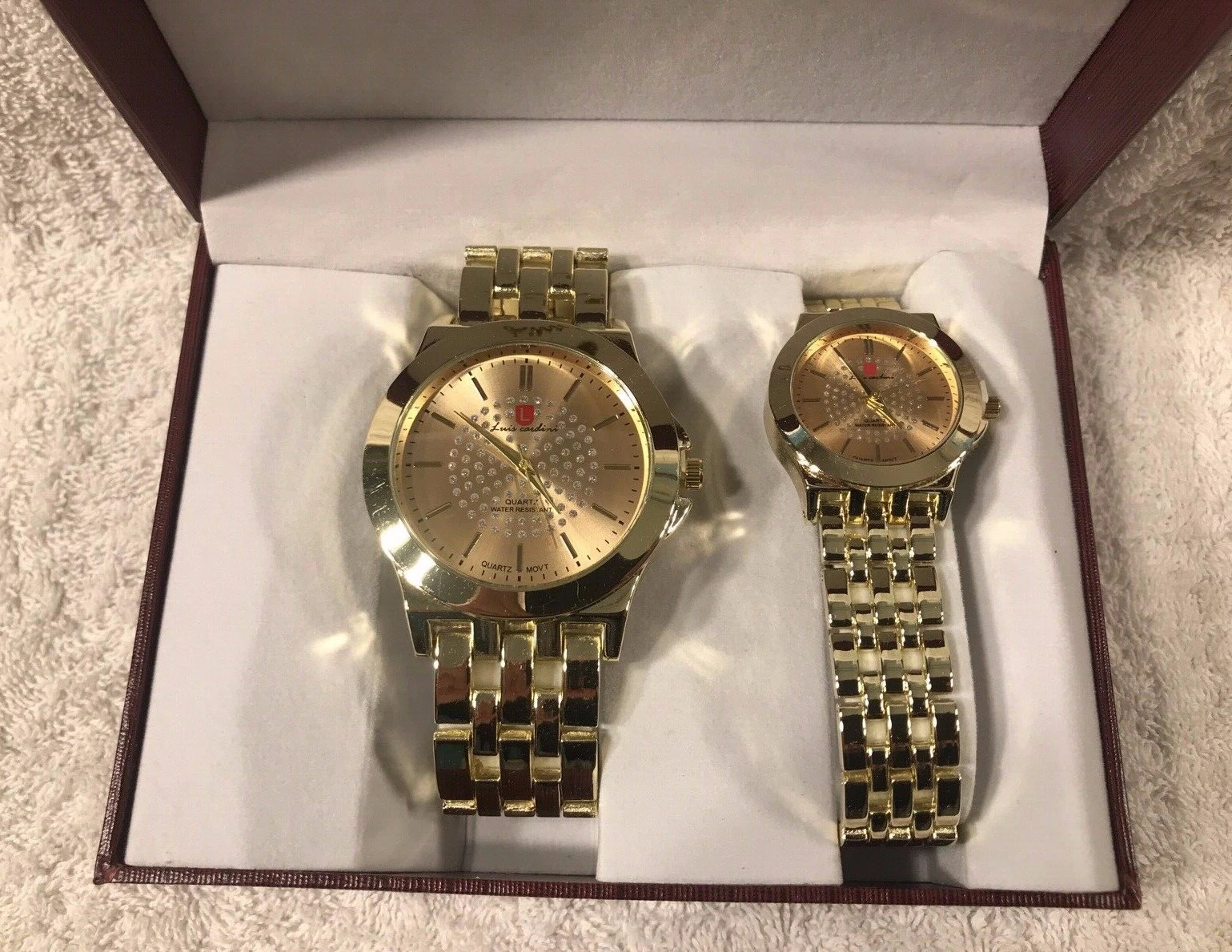 $249.99 Luis Cardini His & Her Metal Link Stylish Set of Watches NIB 80% OFF #30