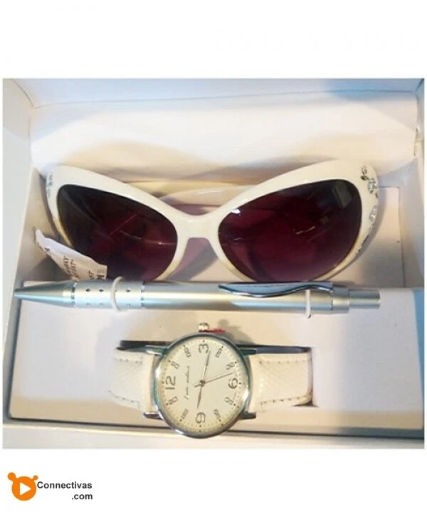 Luis Cardini Women's Watch Gift Set, Pen, Sunglasses - White
