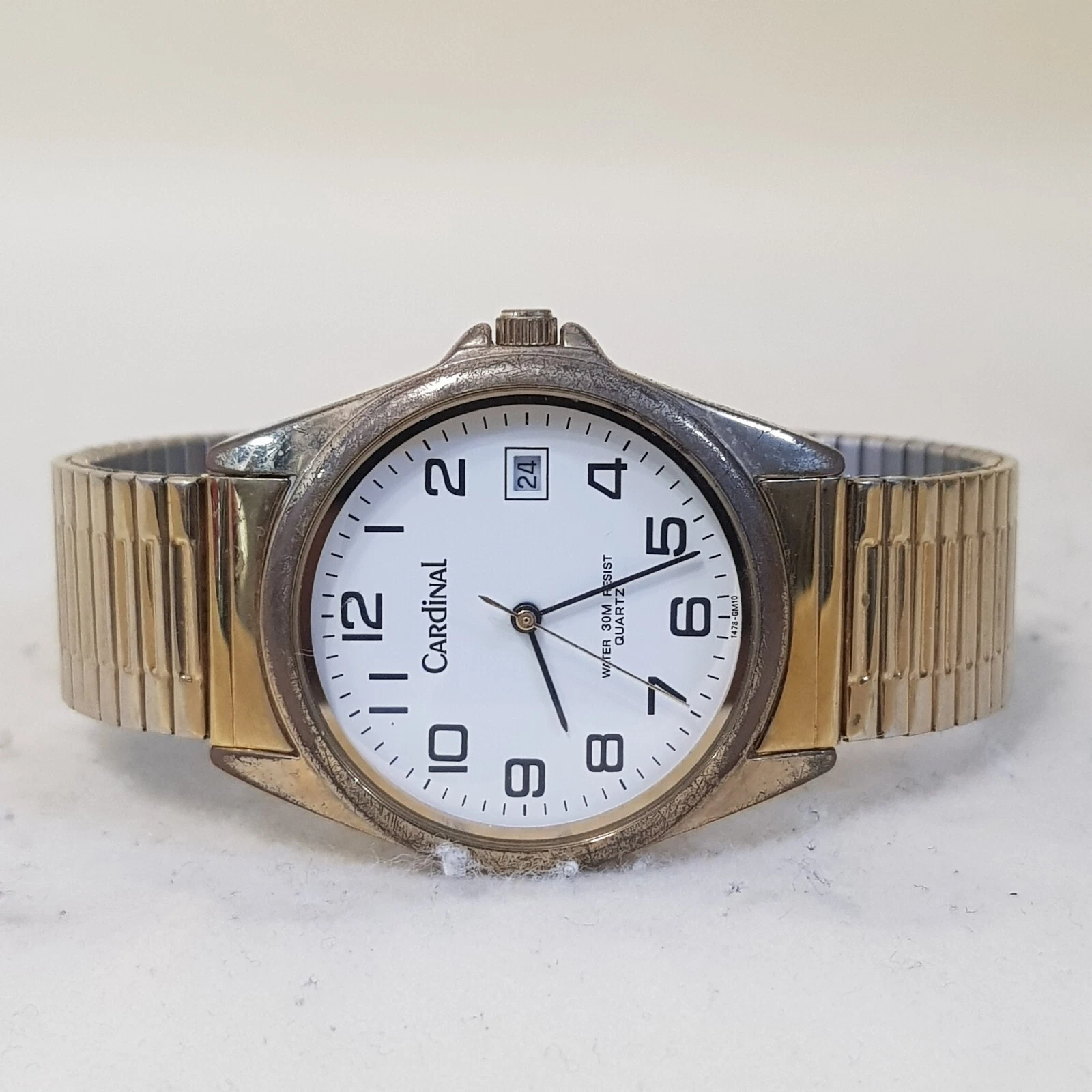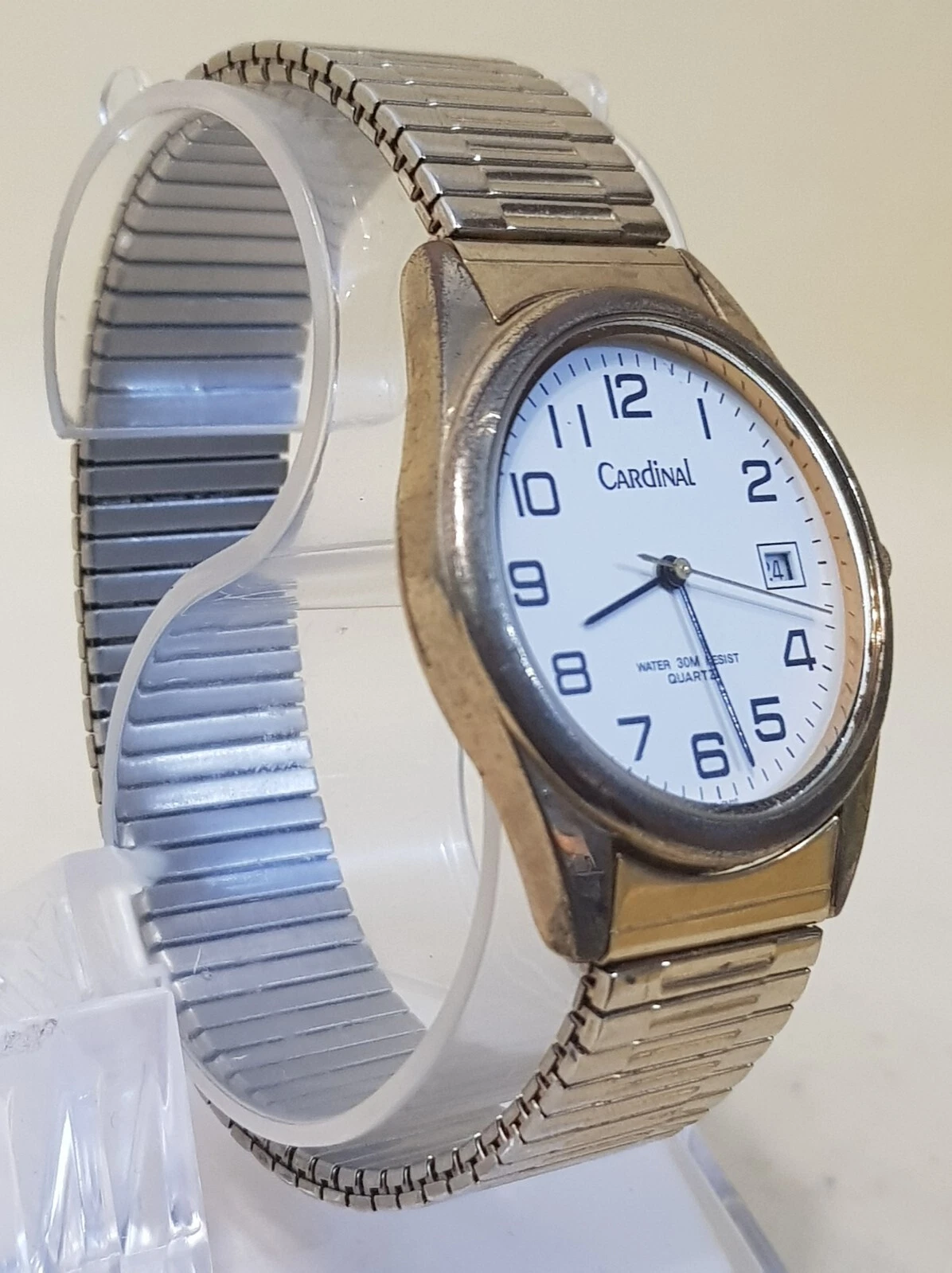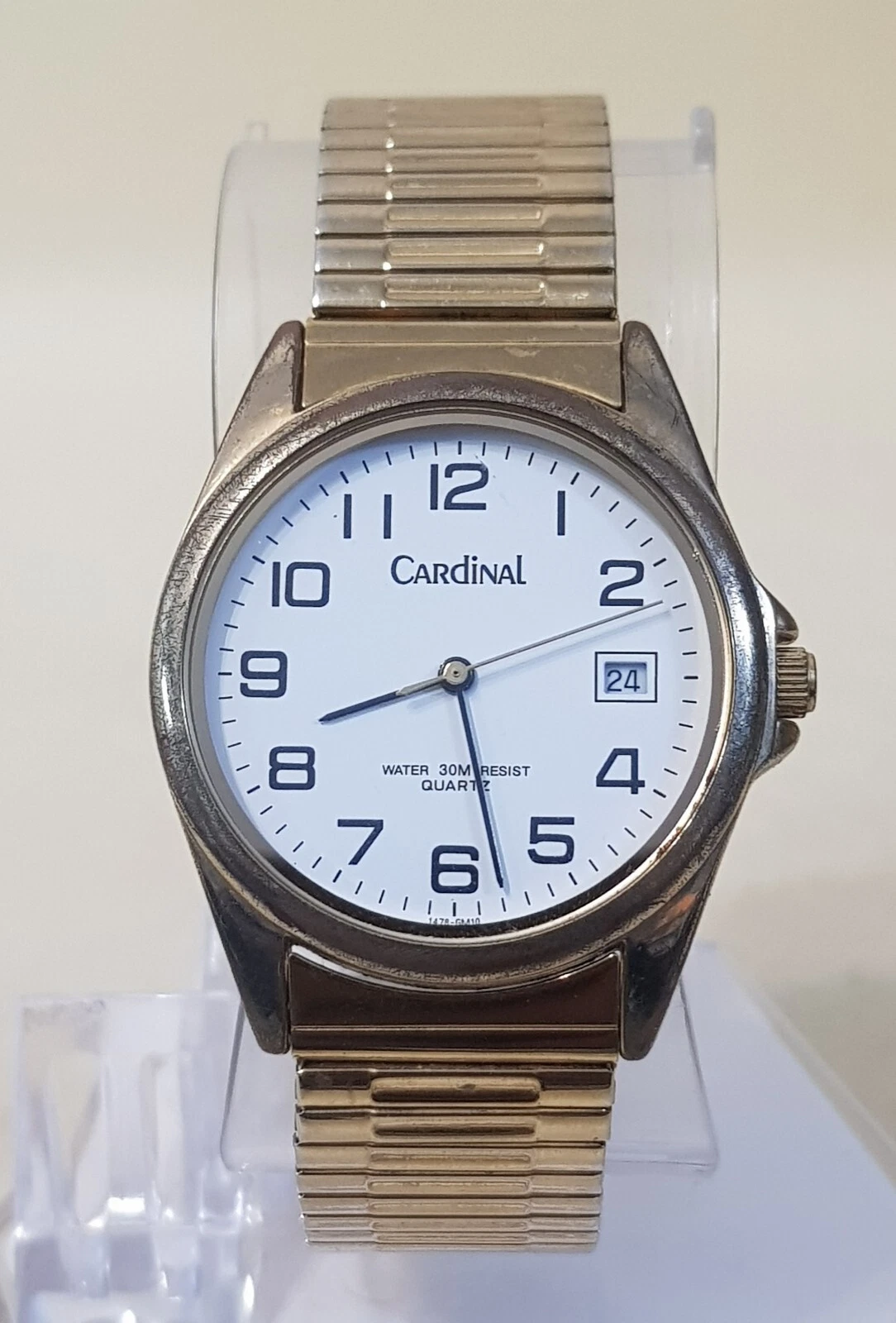 Cardinal Gold-Tone White Dial Date Watch W/ Expansion Band...NEW BATTERY