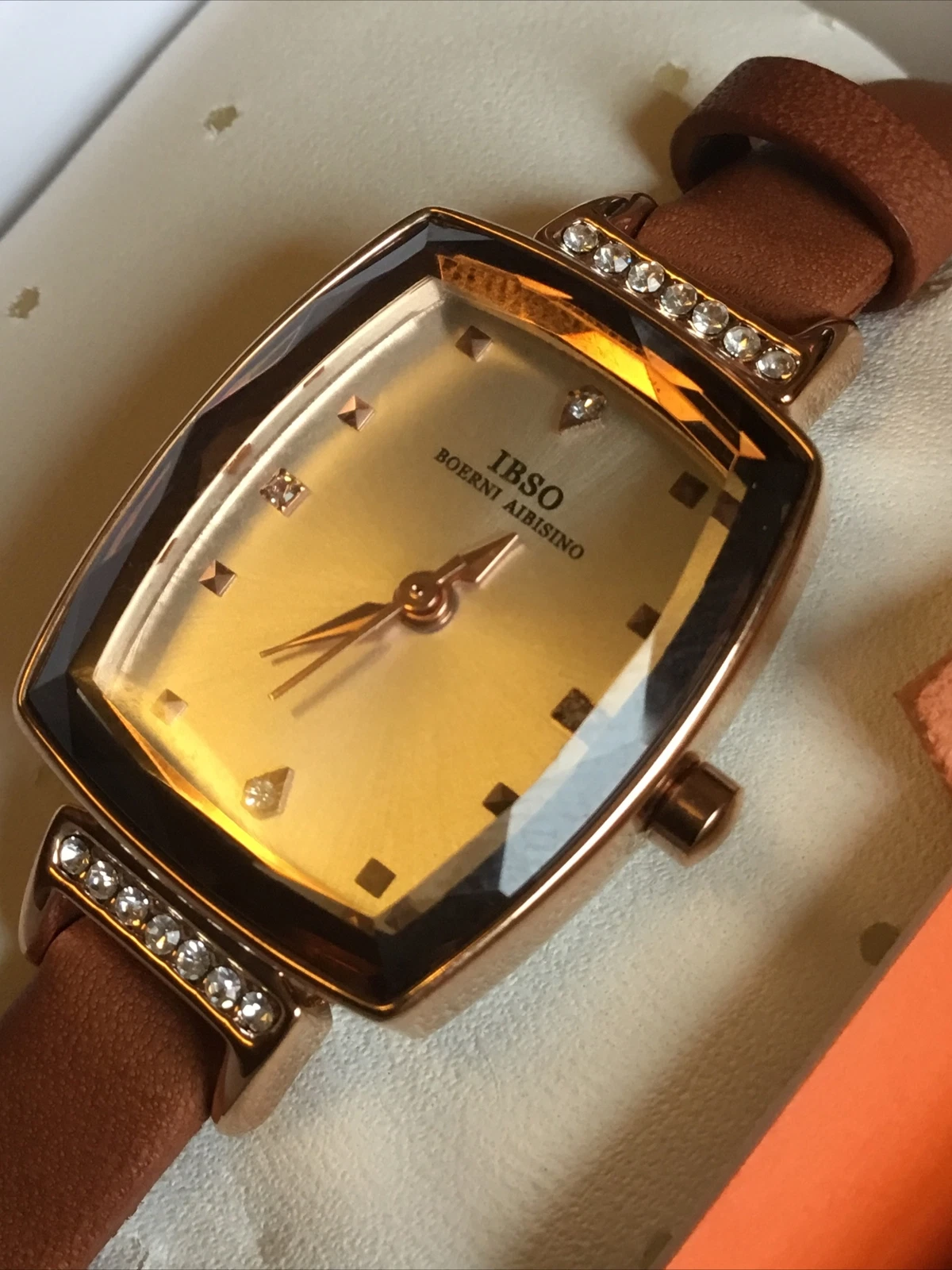 IBSO Boerni Aibisino Female Watch Leather Strap Gold Case  Fashion Wristwatch