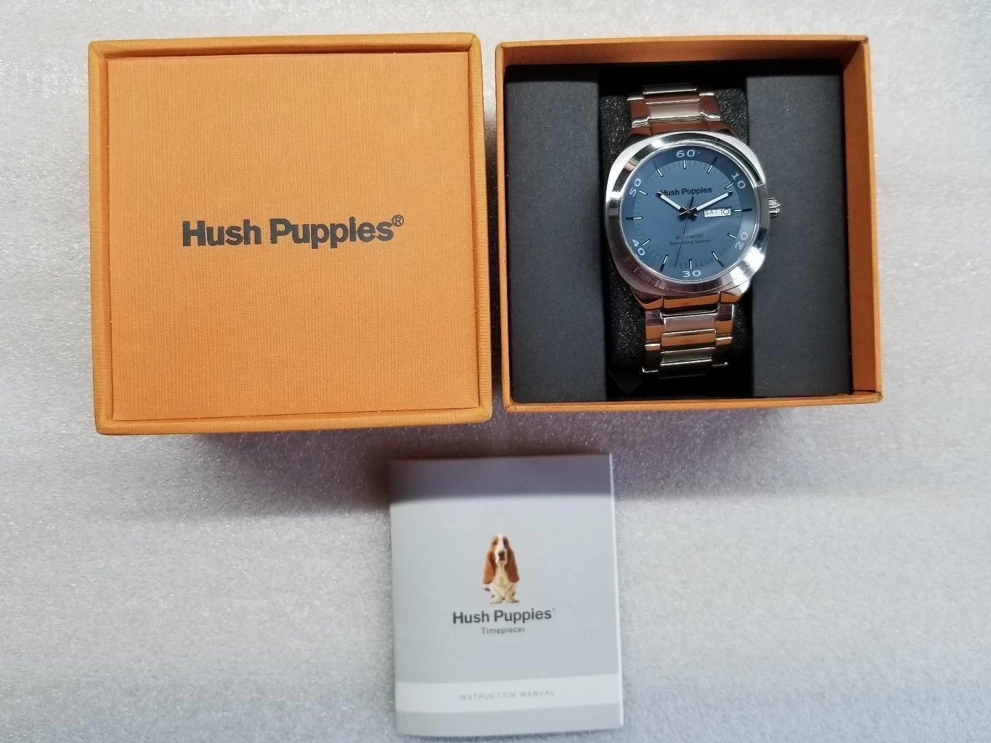 HUSH PUPPIES AUTOMATIC NAVY DIAL DAY/DATE ST.STEEL MEN'S WATCH HP.8581M.1503 NEW