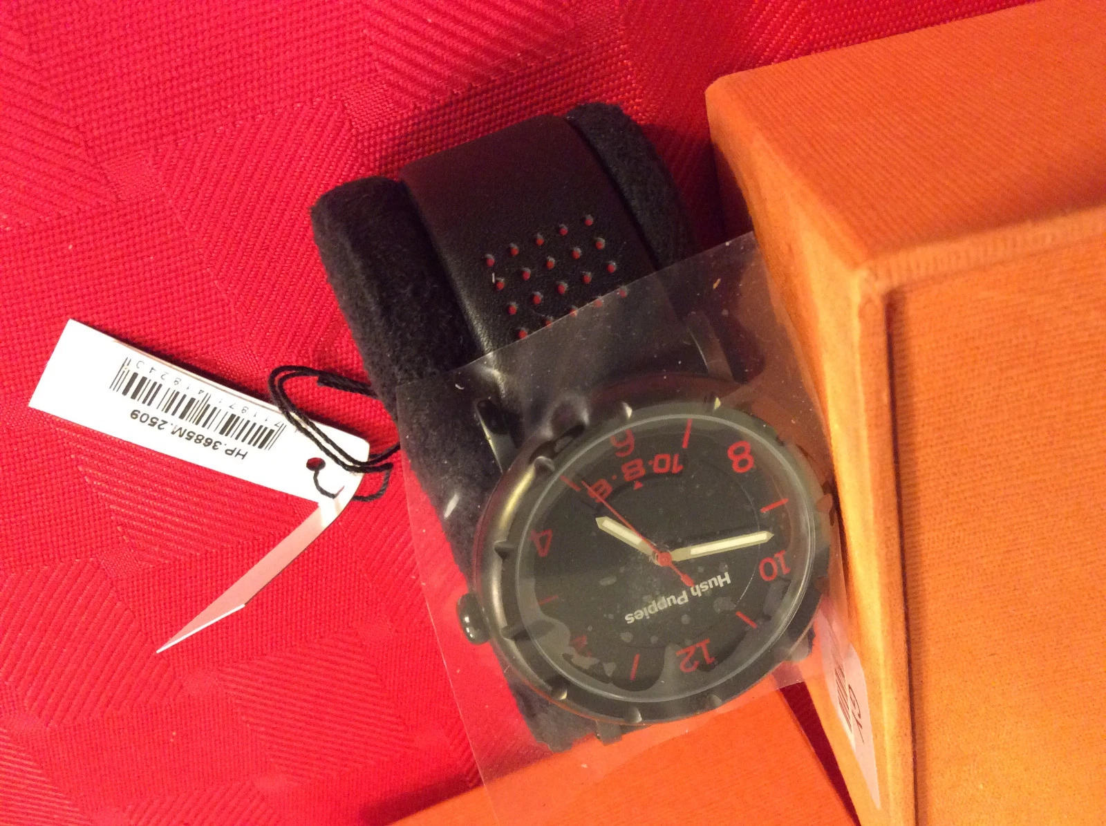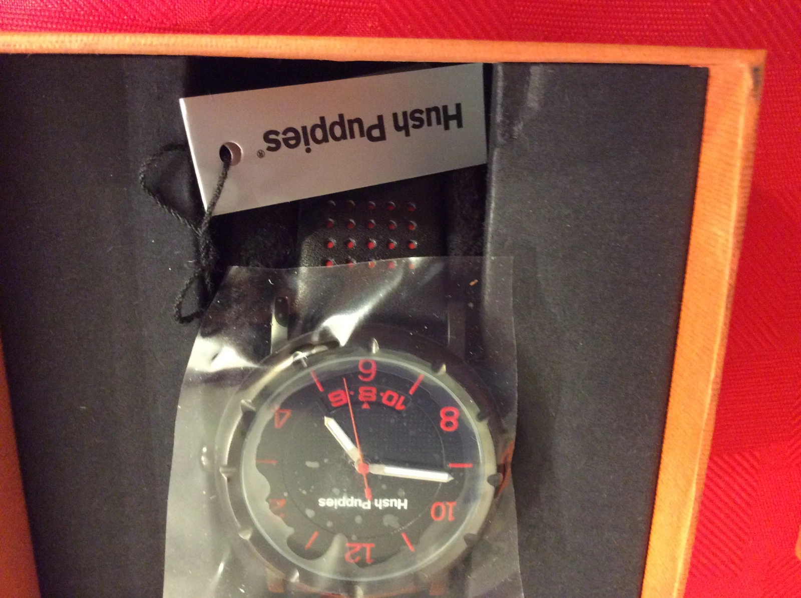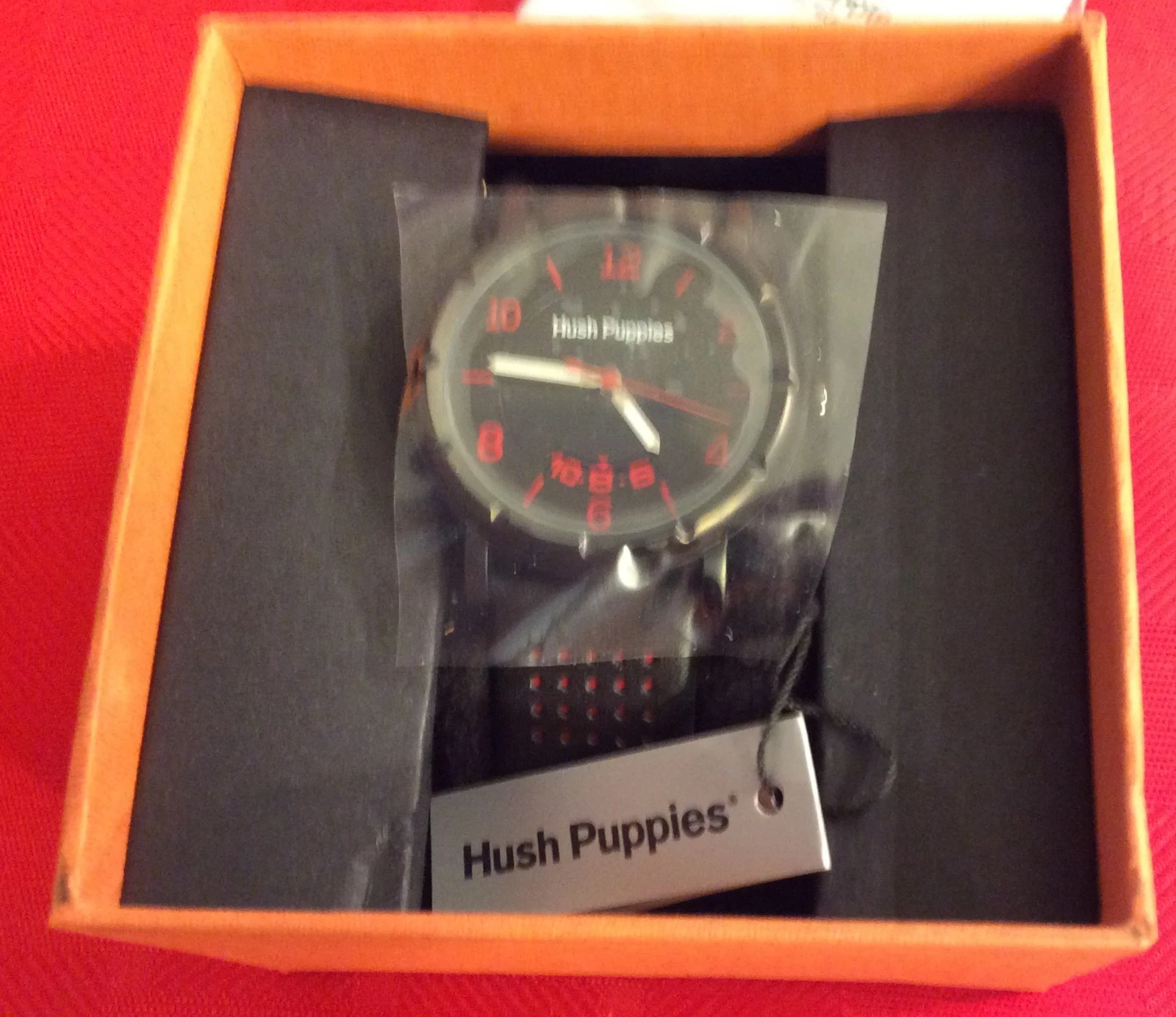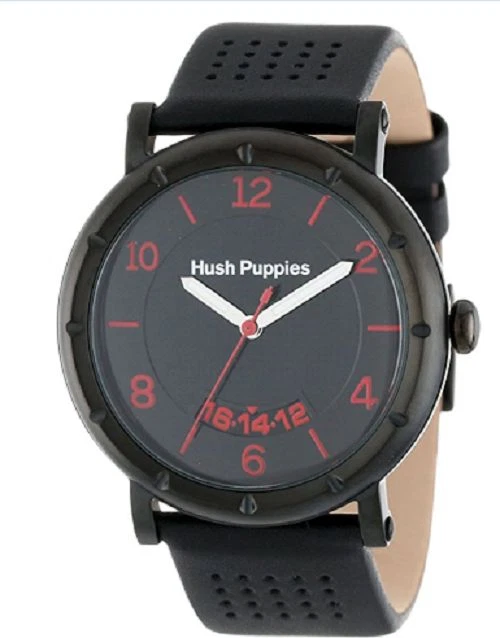 Hush Puppies Men's Orbz Black Ion-Plated Coated Stainless Steel Genuine Leather