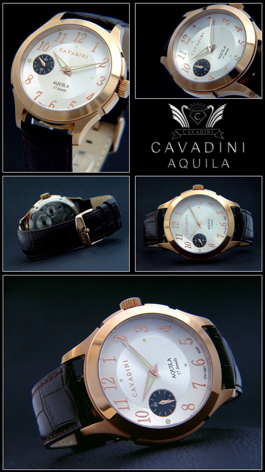 Cavadini Men's Watch With Unitas ETA-6497 Swiss Made Stainless Steel 1 13/16in
