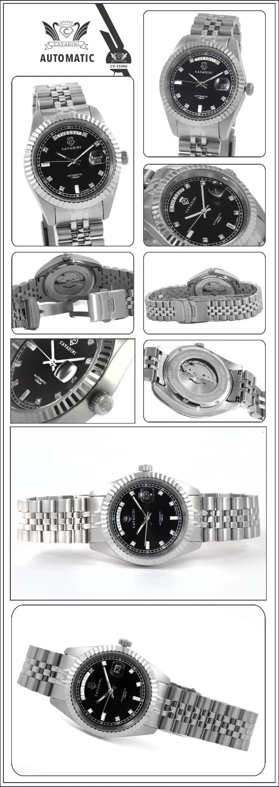 Cavadini Automatic Miyota 8285 Watch Leonardo CV-335NJ Stainless Steel Black