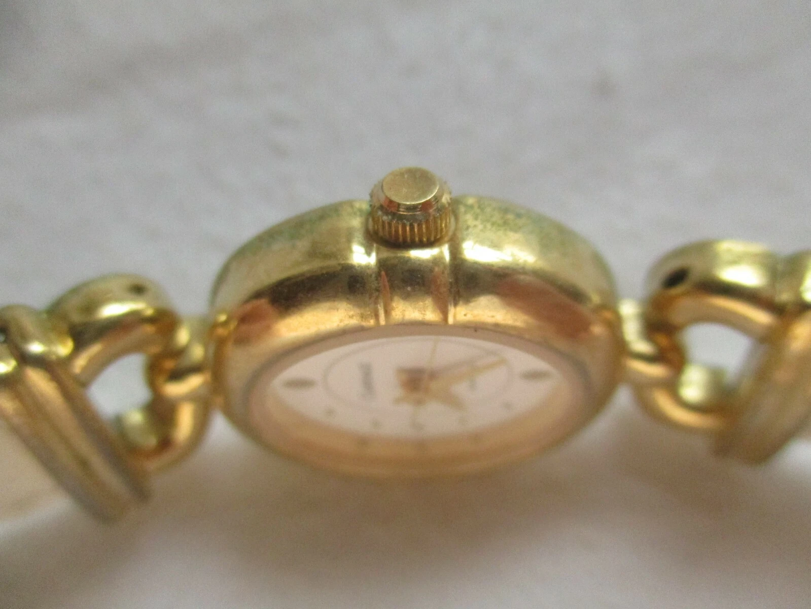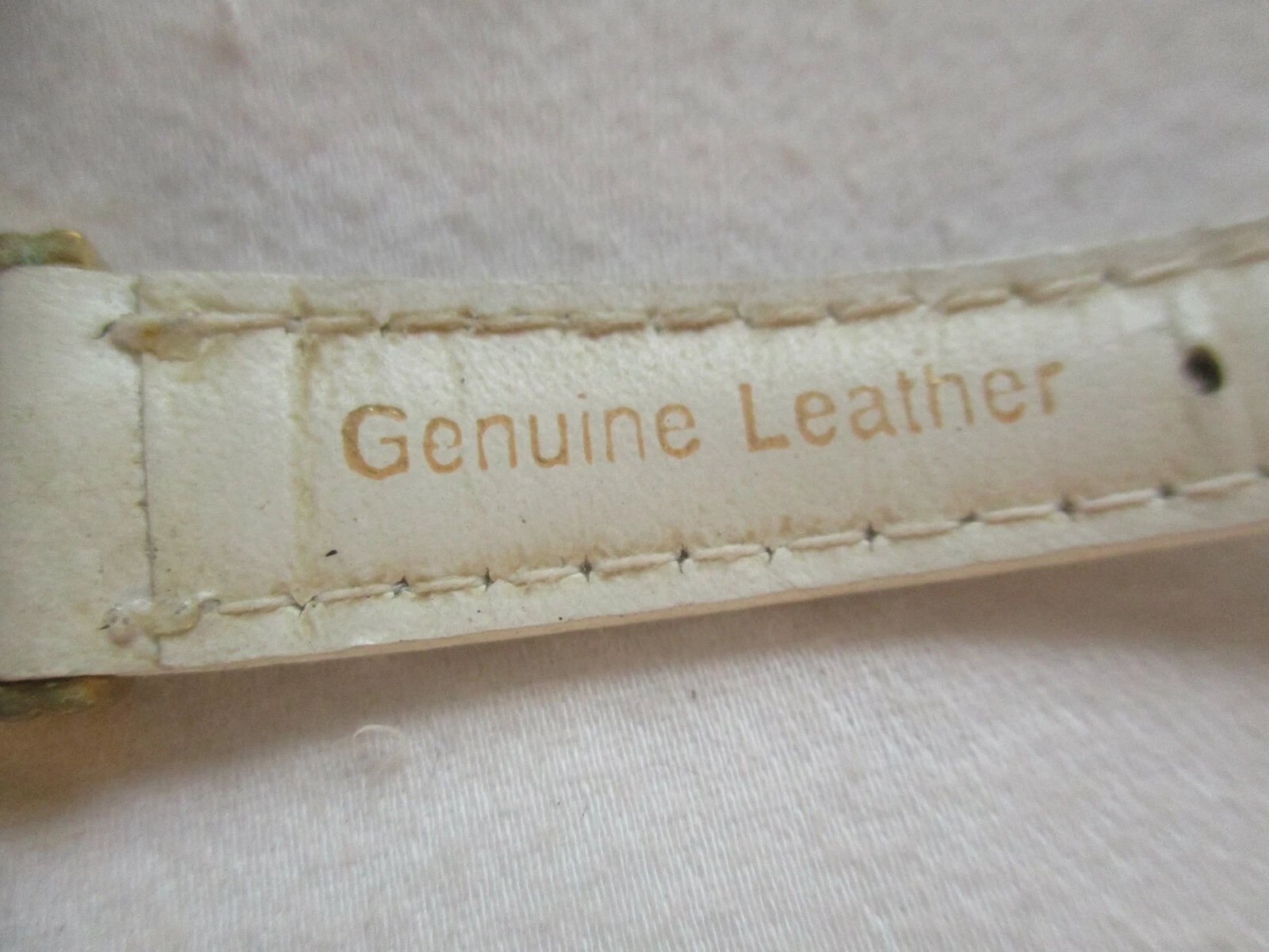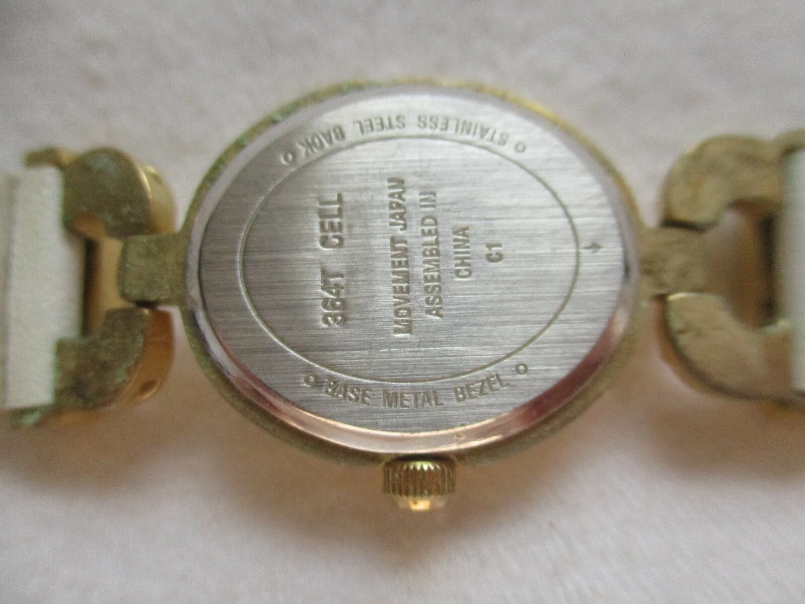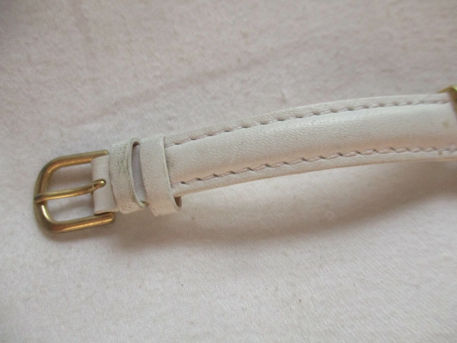 Carriage Analog Wristwatch White Buckle Band Oval Shaped Face Gold Tone