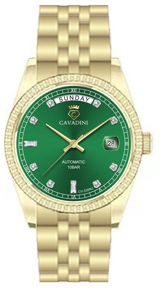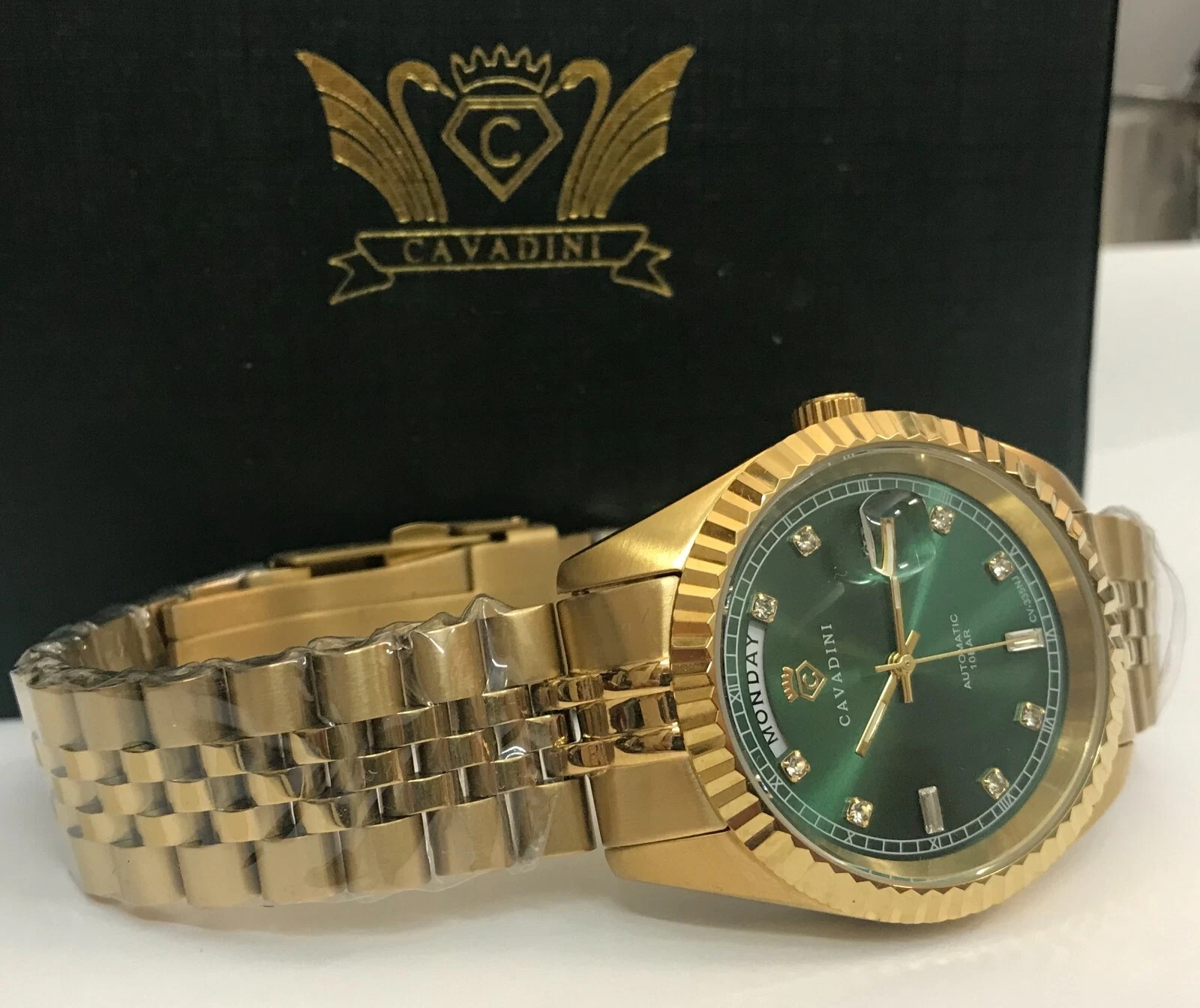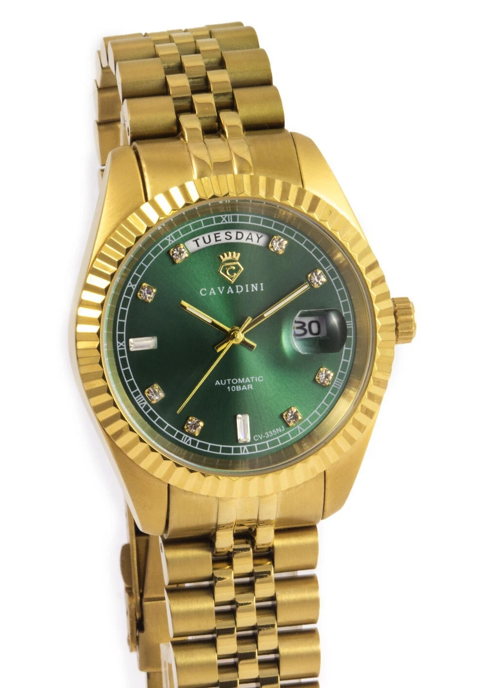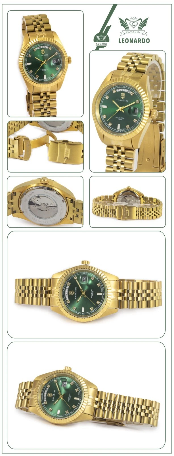 Cavadini Automatic Miyota 8285 Men's Watch Leonardo CV-335NJ Steel Gold-Green