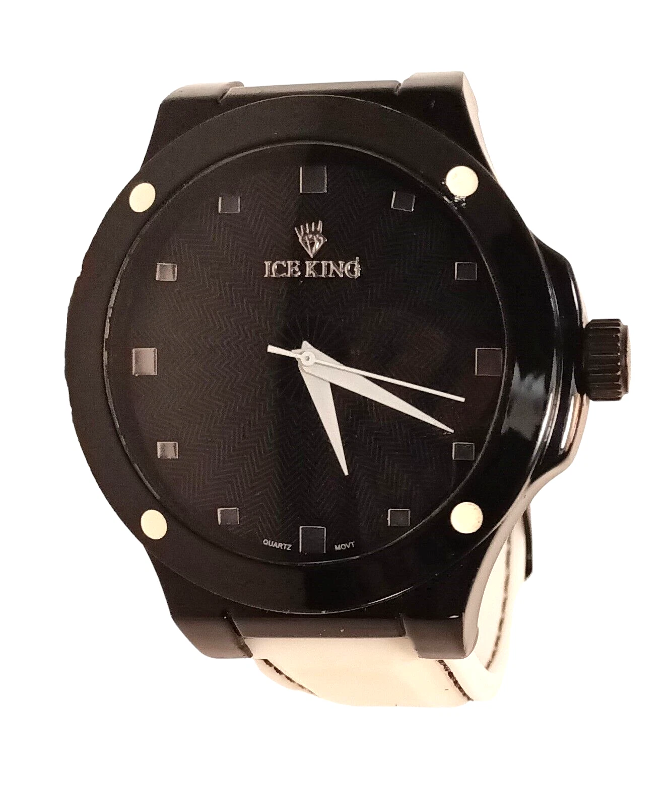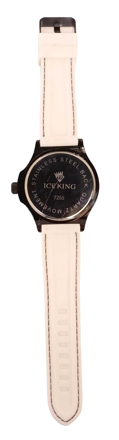 XL Ice King Mens Quartz Watch Black Case/White Silicone Band 7255 *Needs Battery