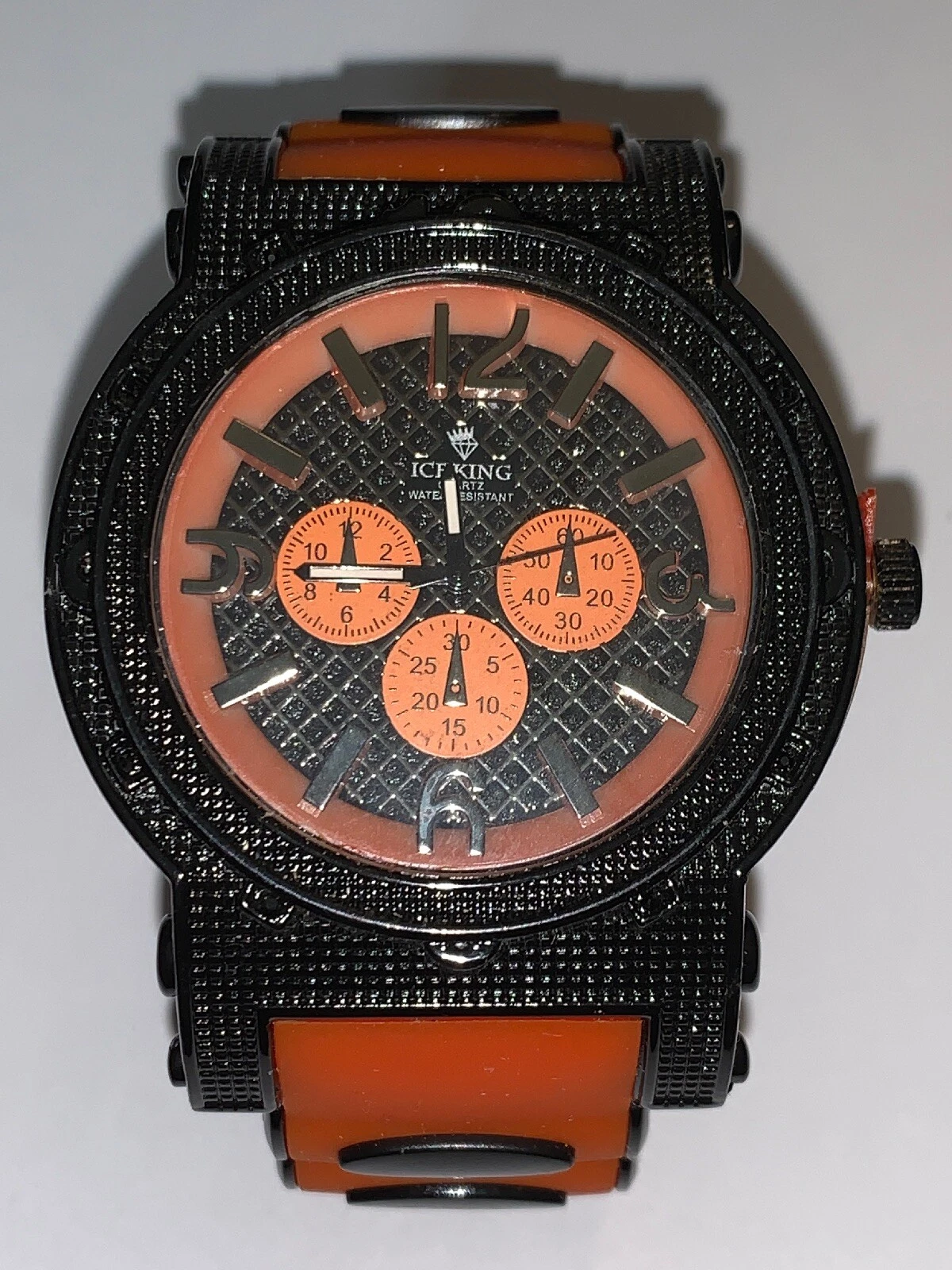 Ice King Quartz Mens Fashion Watch. New Battery. Orange Silicone Band.