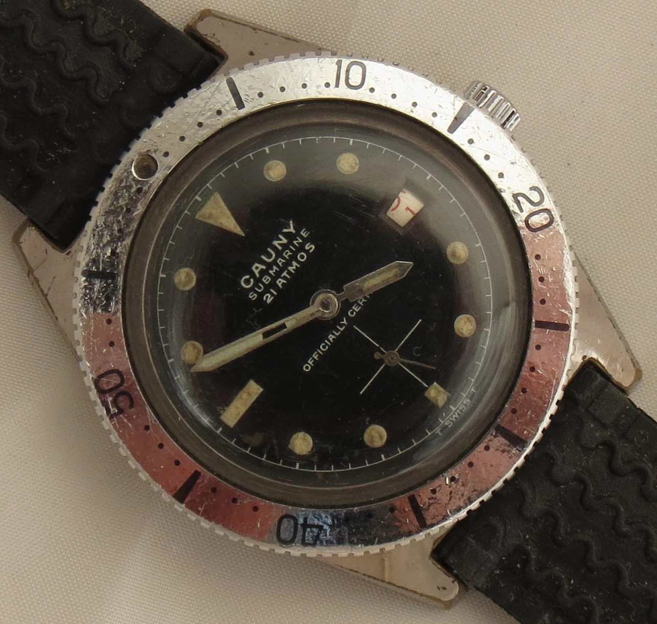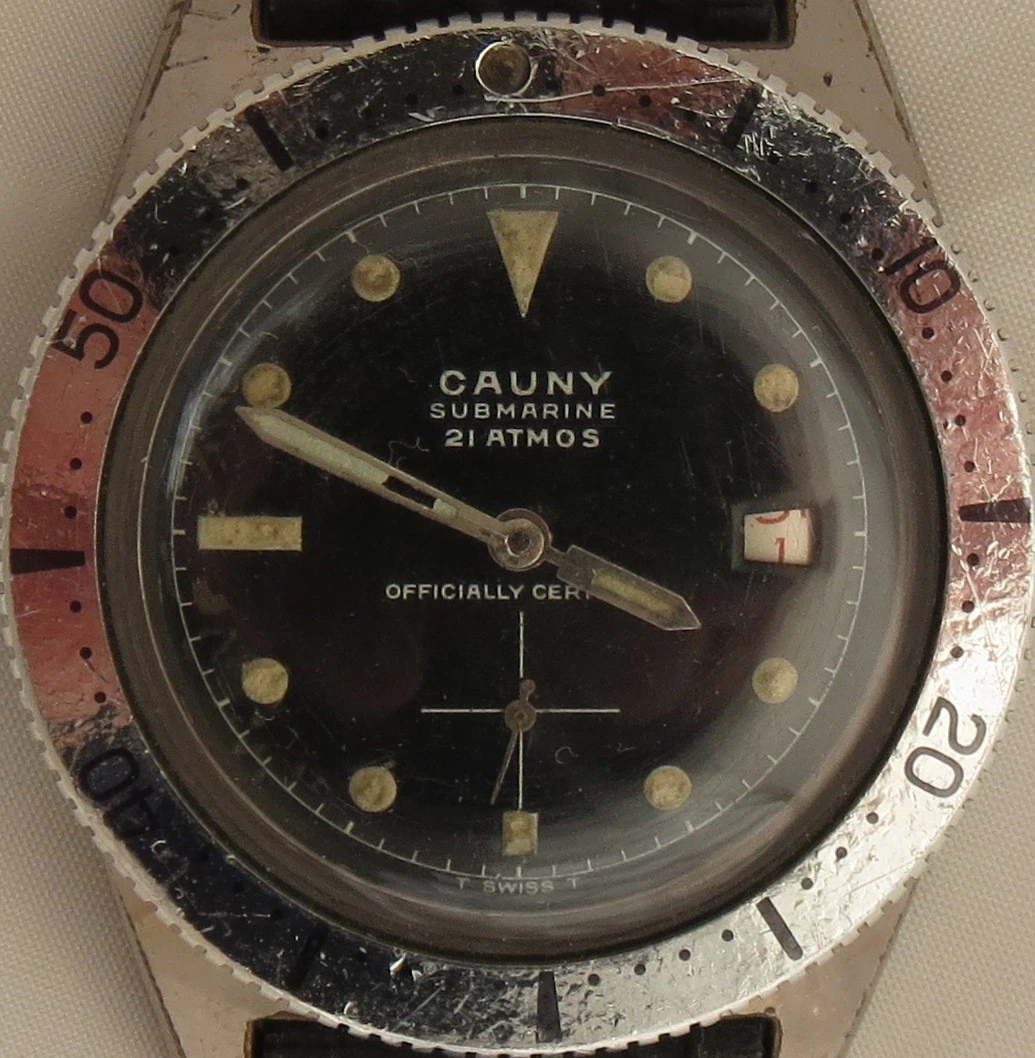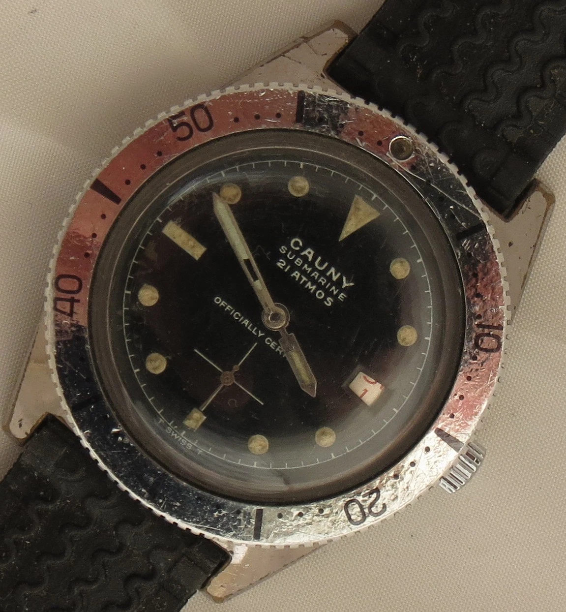 Cauny Submarine Diver mens wristwatch nickel chromiun case 37 mm. in diameter