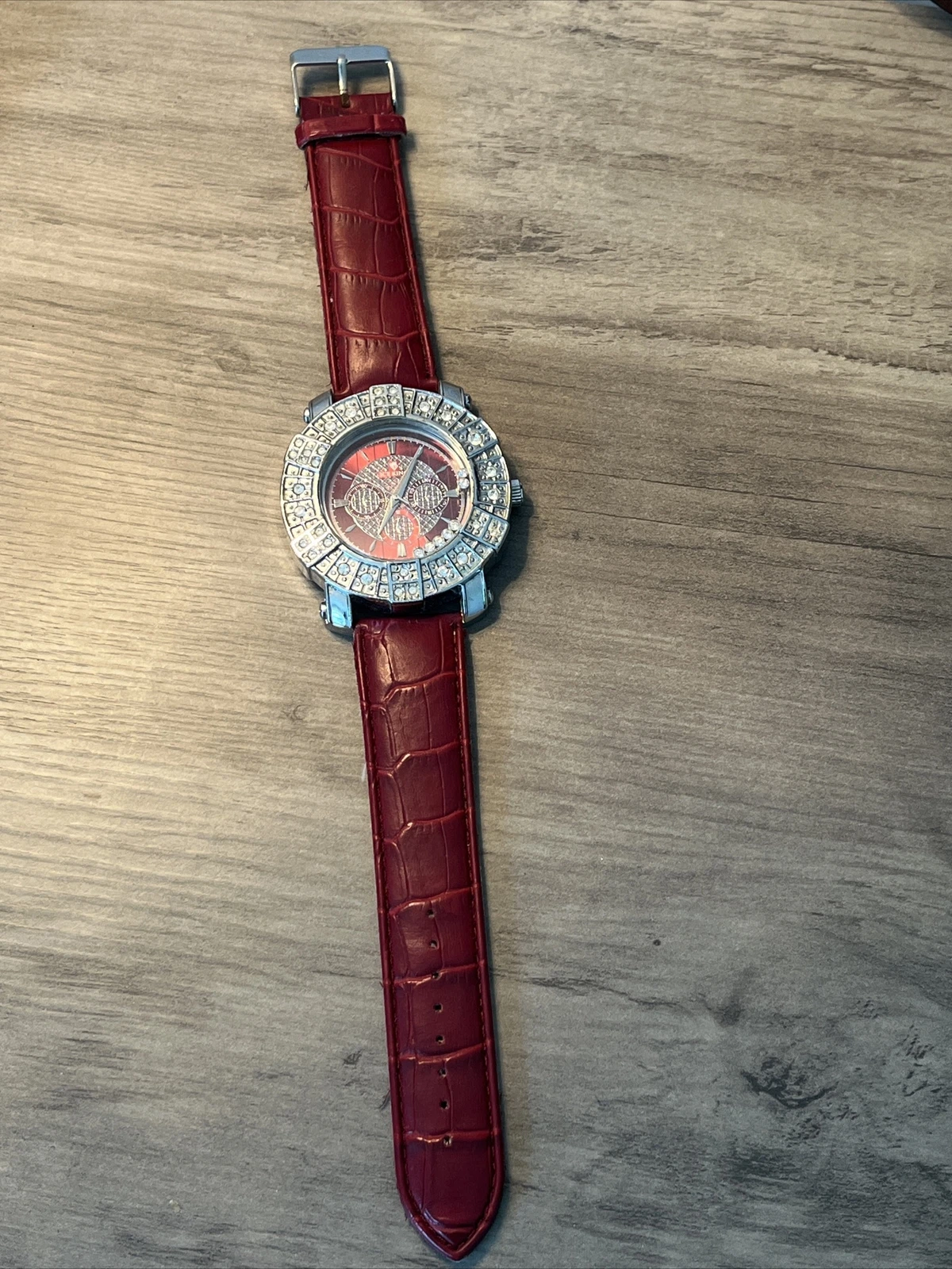 Ice King Men's Red Leather Rhinestone Watch