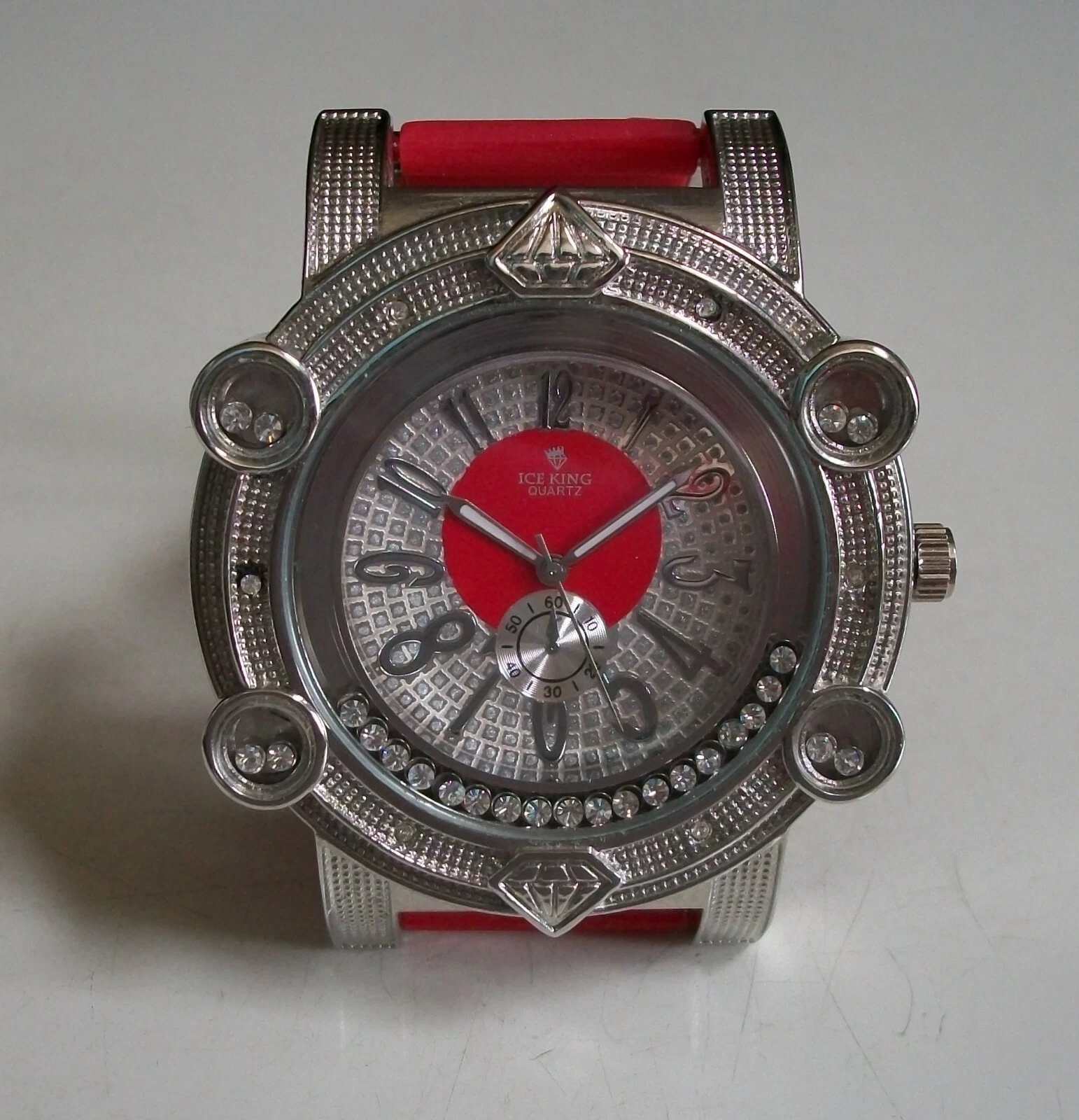 Men's Stone Red Silicone Band Silver Finish Dressy Casual Fashion Hip Hop Watch