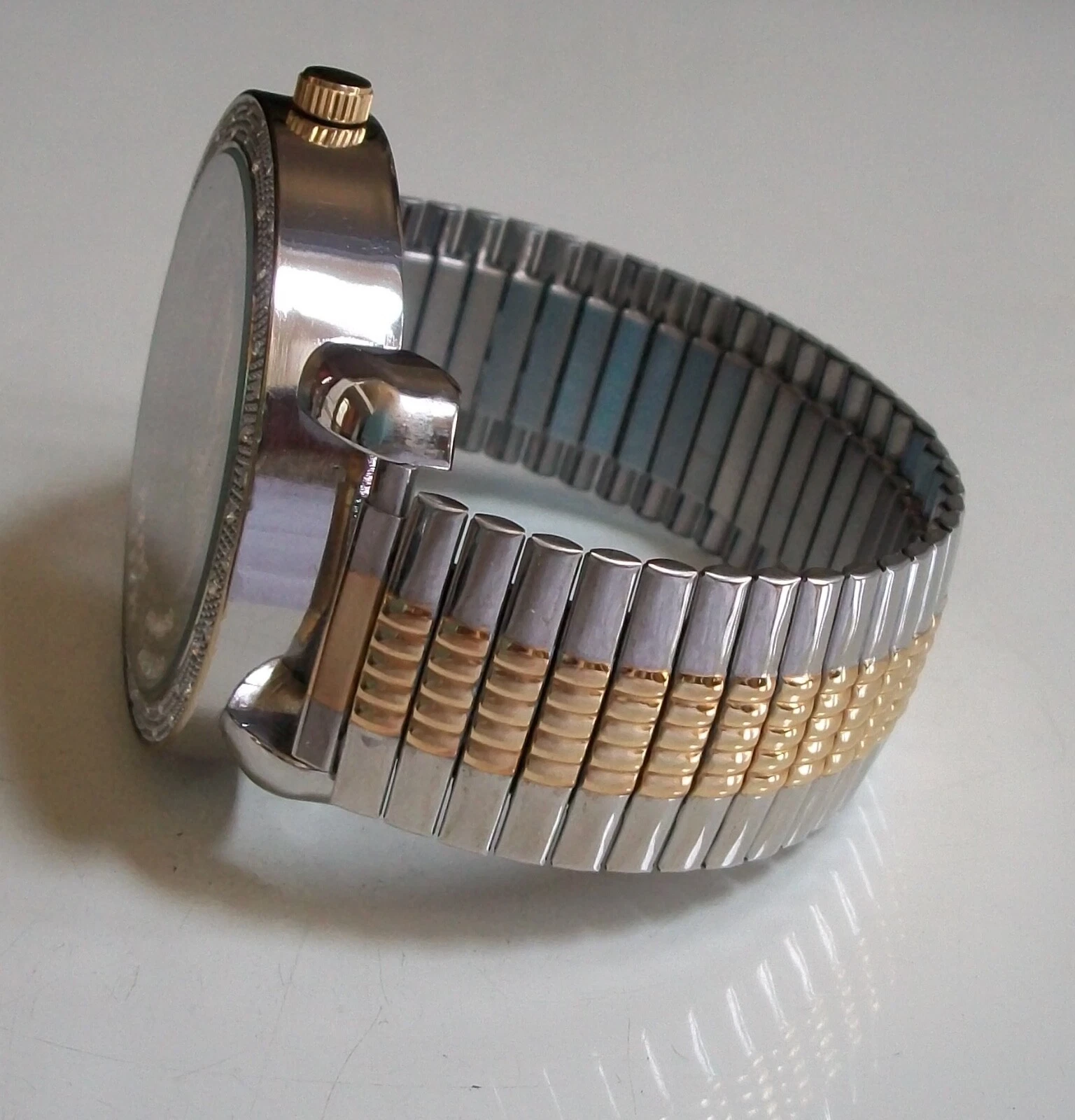 Men floating stone stretch band Gold & Silver finish fashion Watch