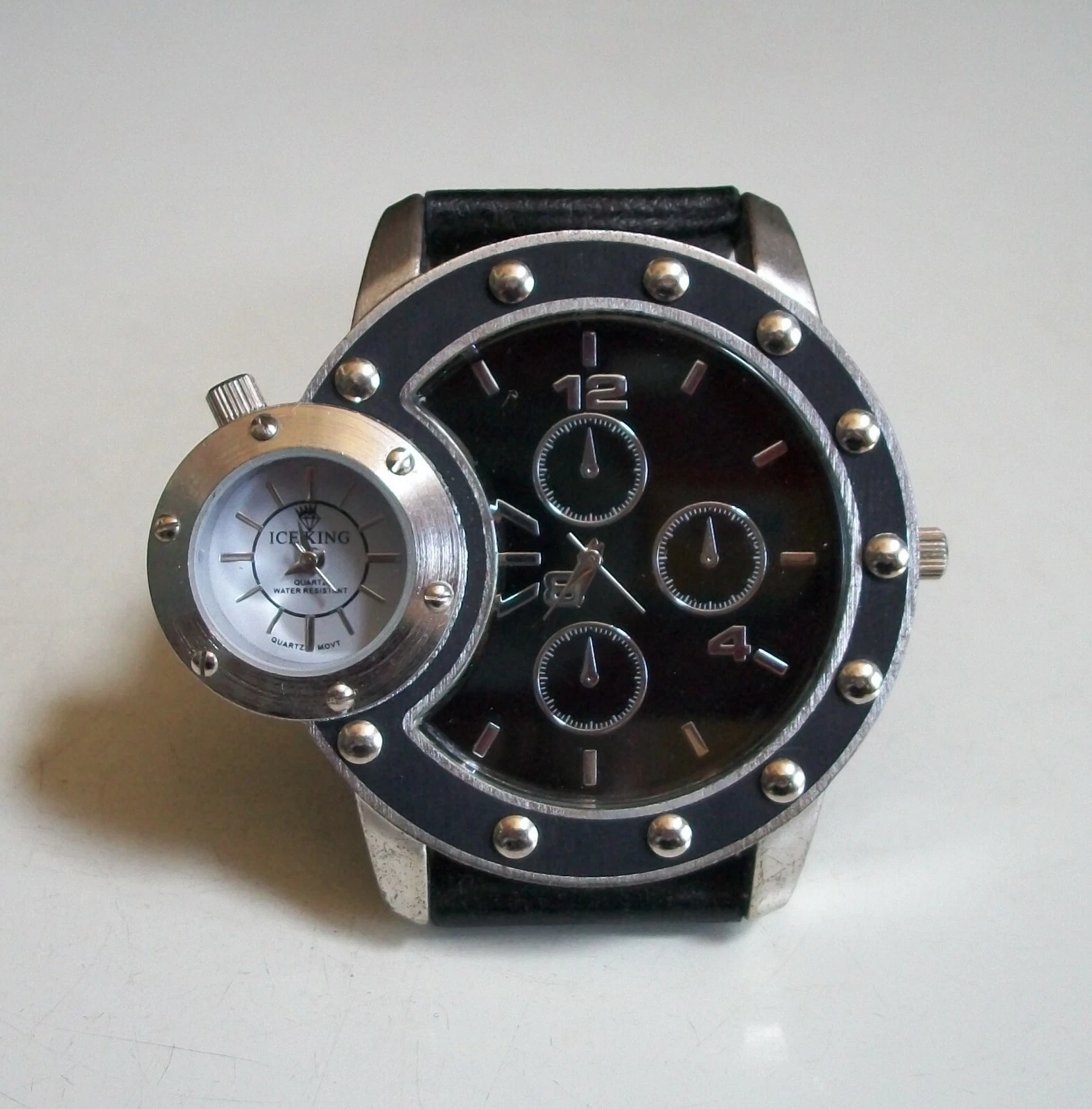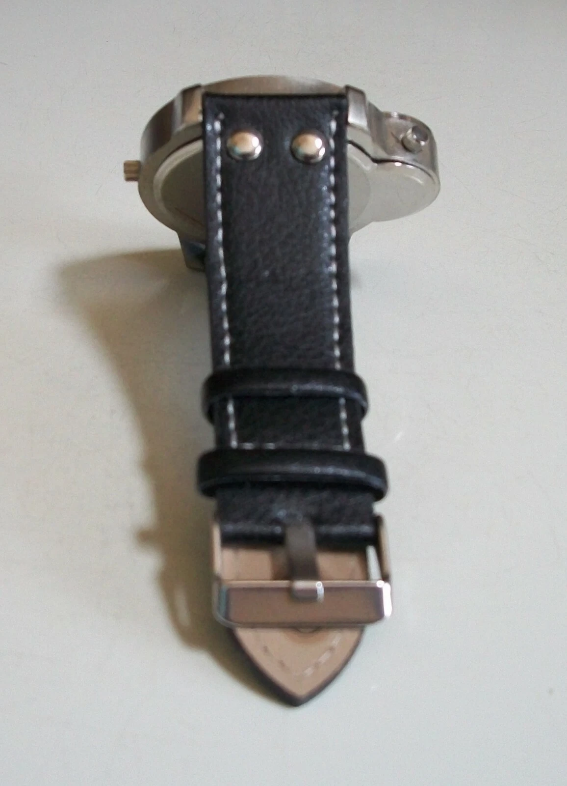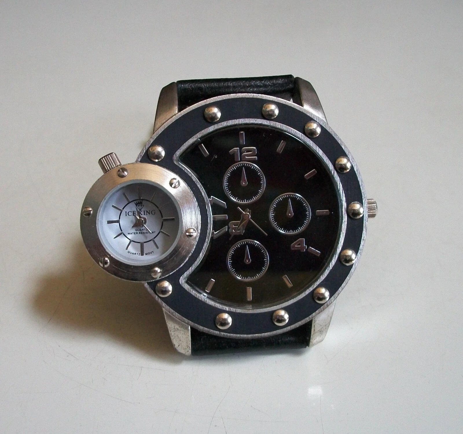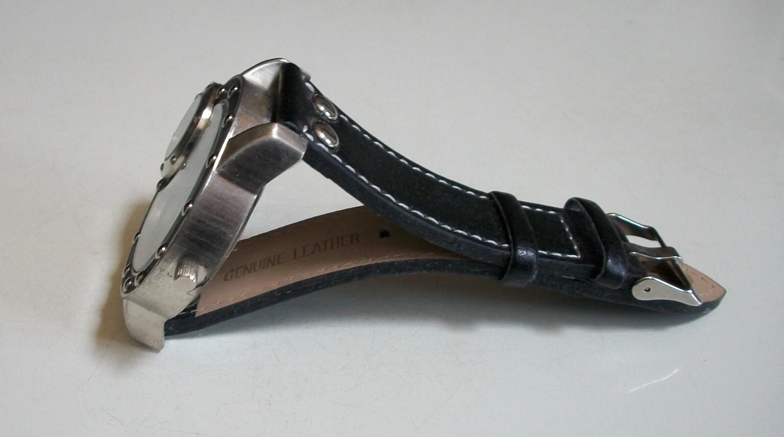 Men's Silver Finish Fashion 2 Time Zone (Dual Time) Leather Band Casual Watch