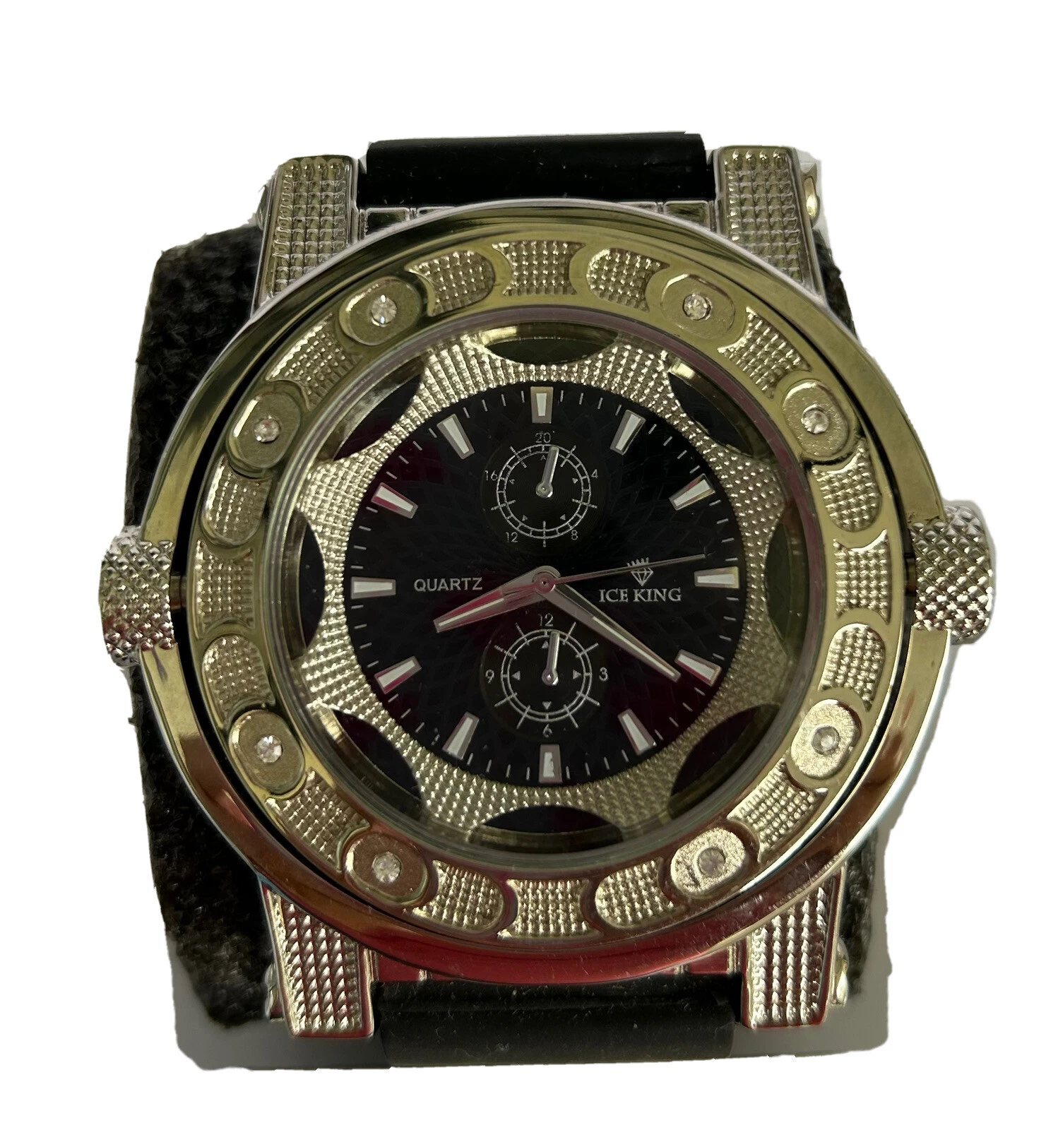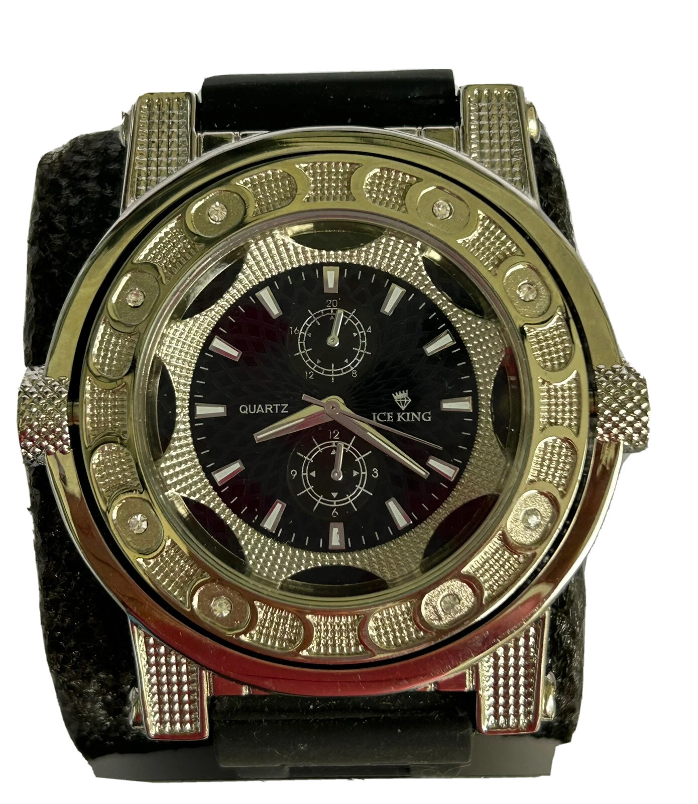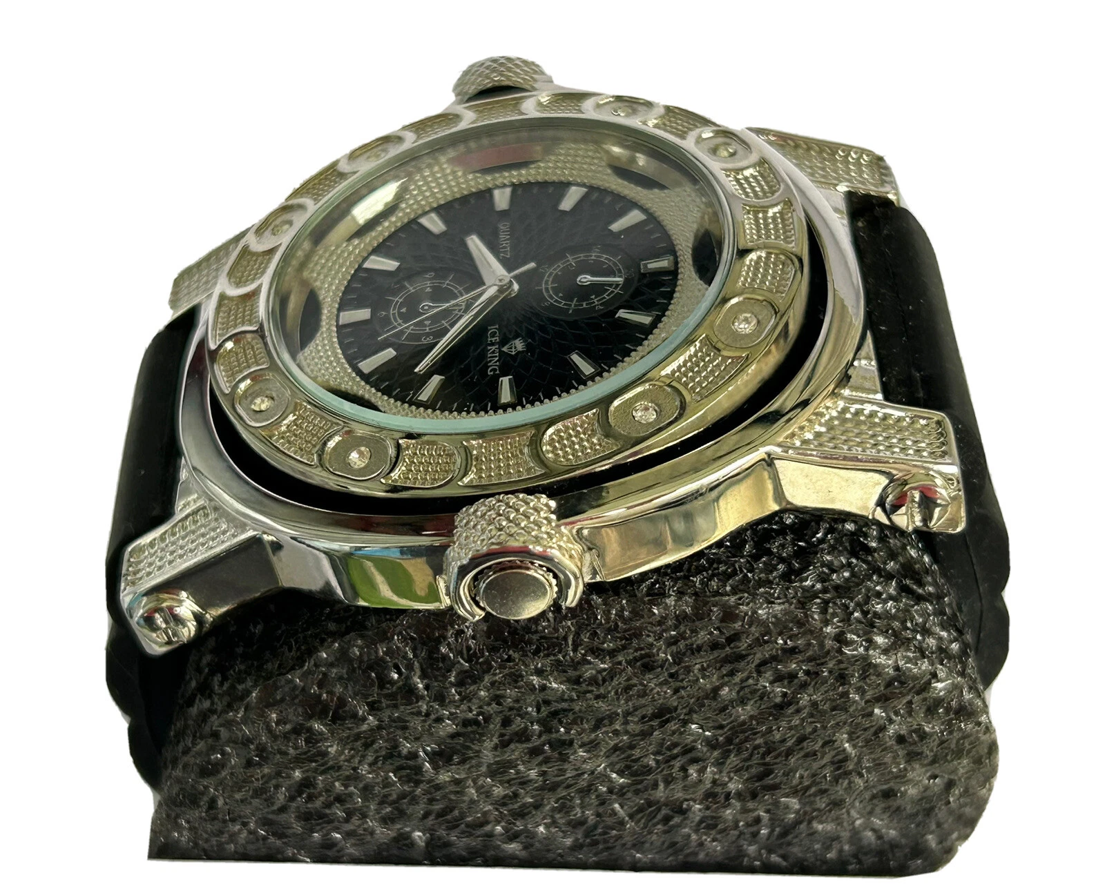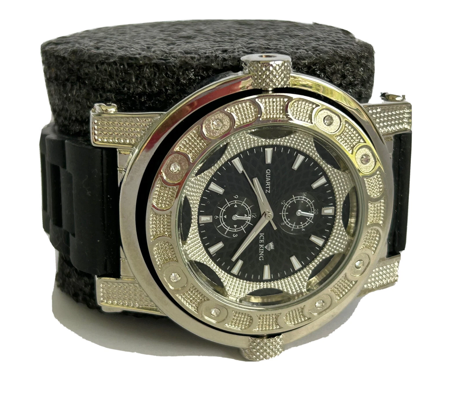 Ice King Men’s Flip Wristwatch Bracelet Black Rubber Band Quartz Big Face Watch