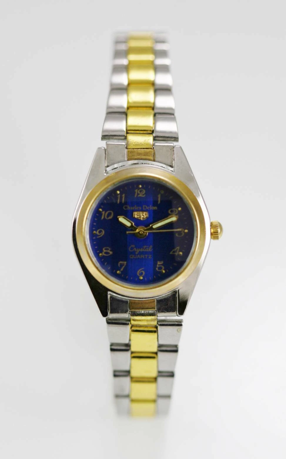 Charles Delon Watch Womens Gold Silver Stainless Water Resis Blue Battery Quartz