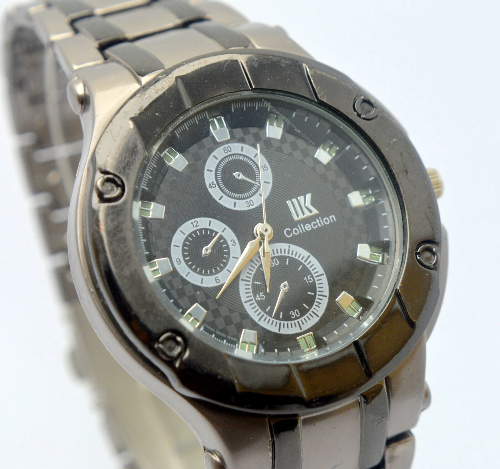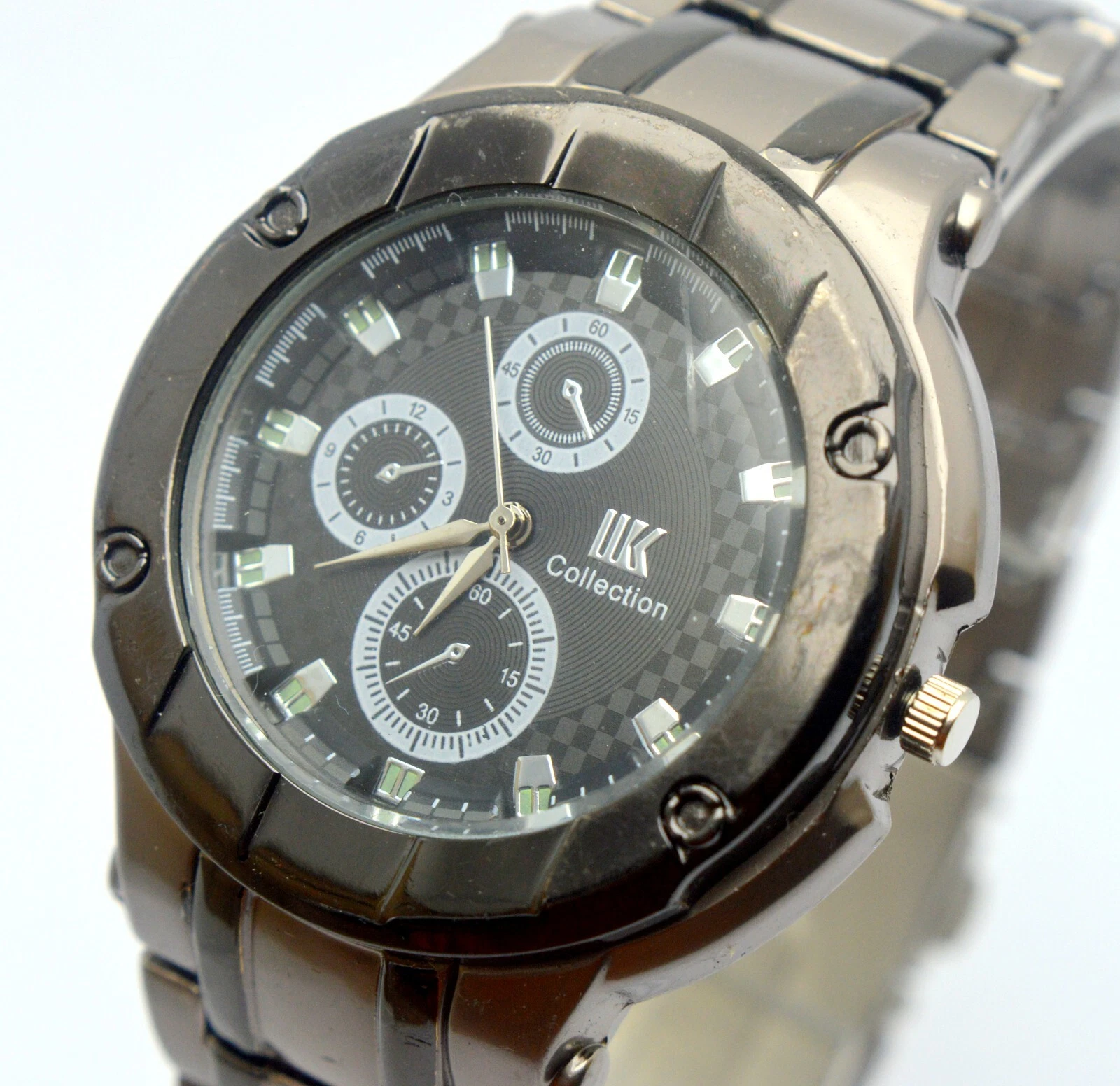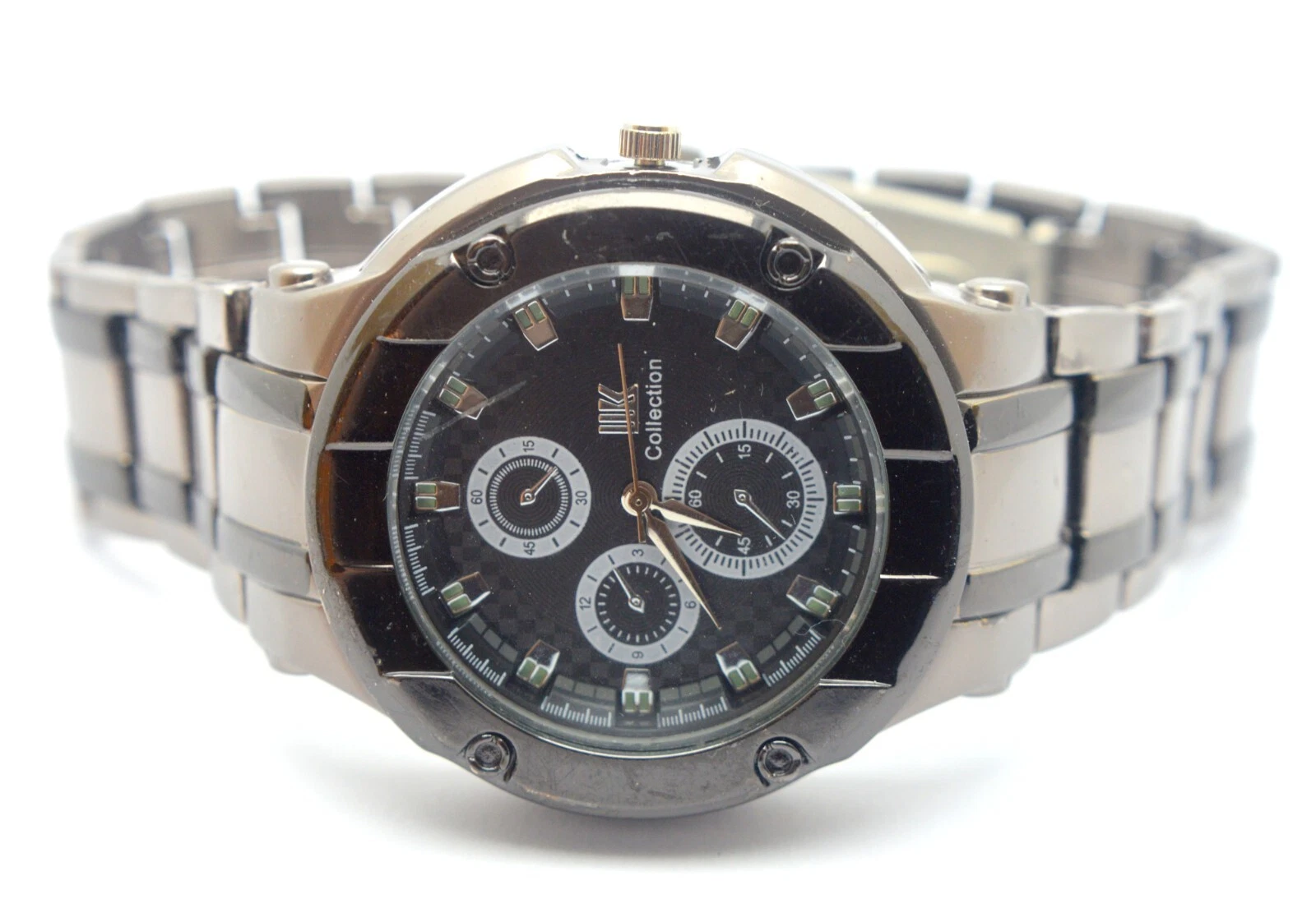 MEN'S IIK COLLECTION BRANDED LARGE BLACK DIAL QUARTZ WATCH