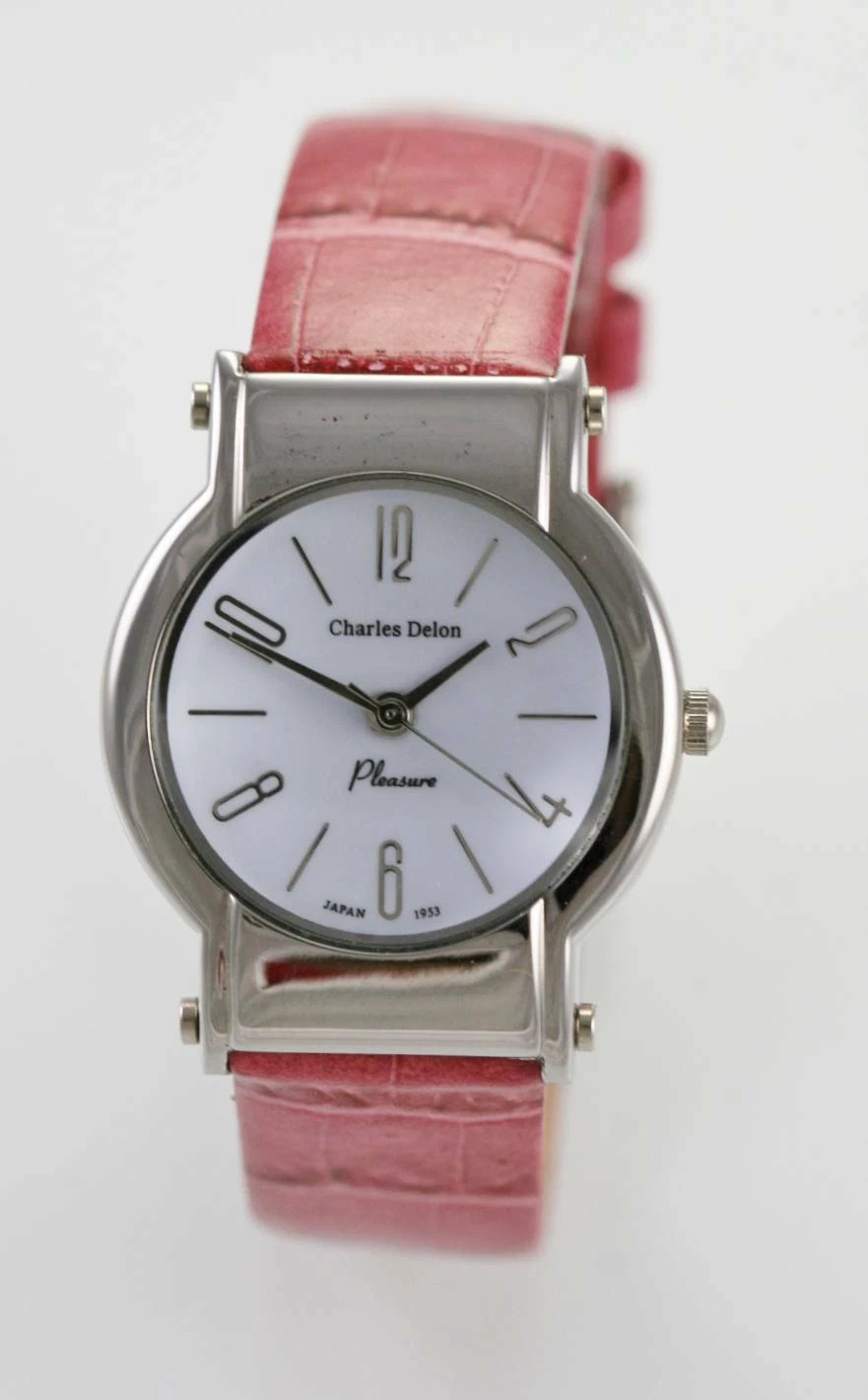 Charles Delon Watch Womens Pink Leather Stainless Steel Silver Battery Quartz