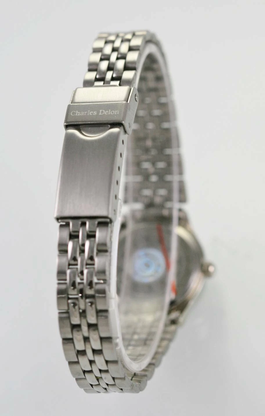 Charles Delon Watch Womens Black Stainless Silver Battery Water Resist Quartz