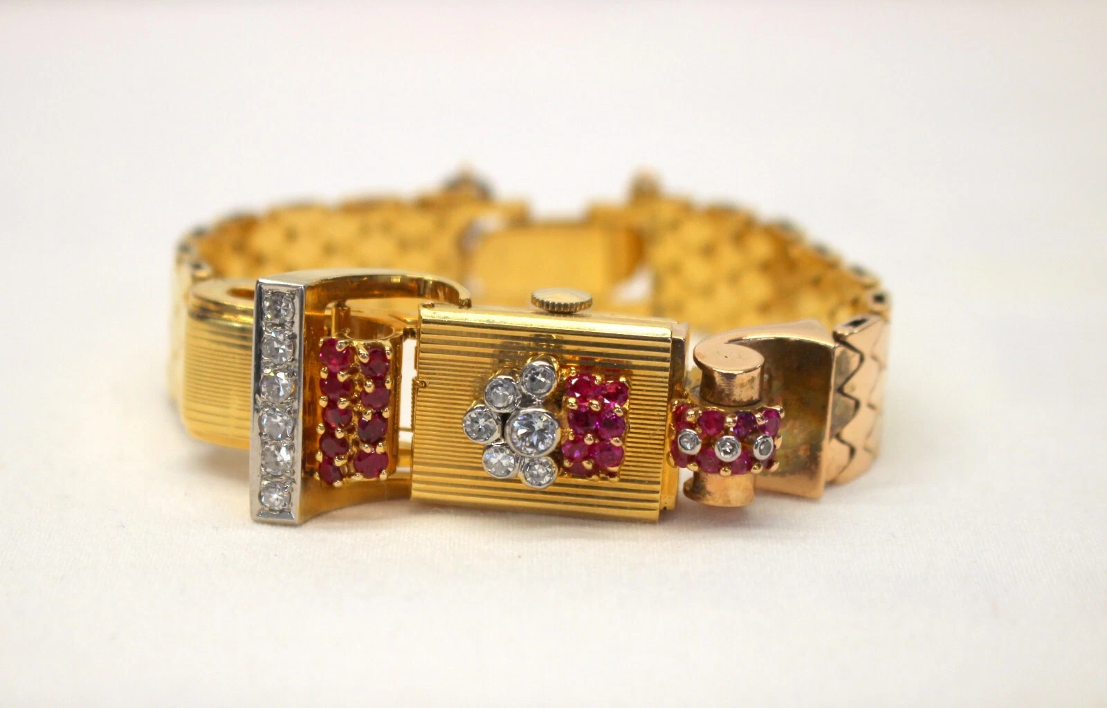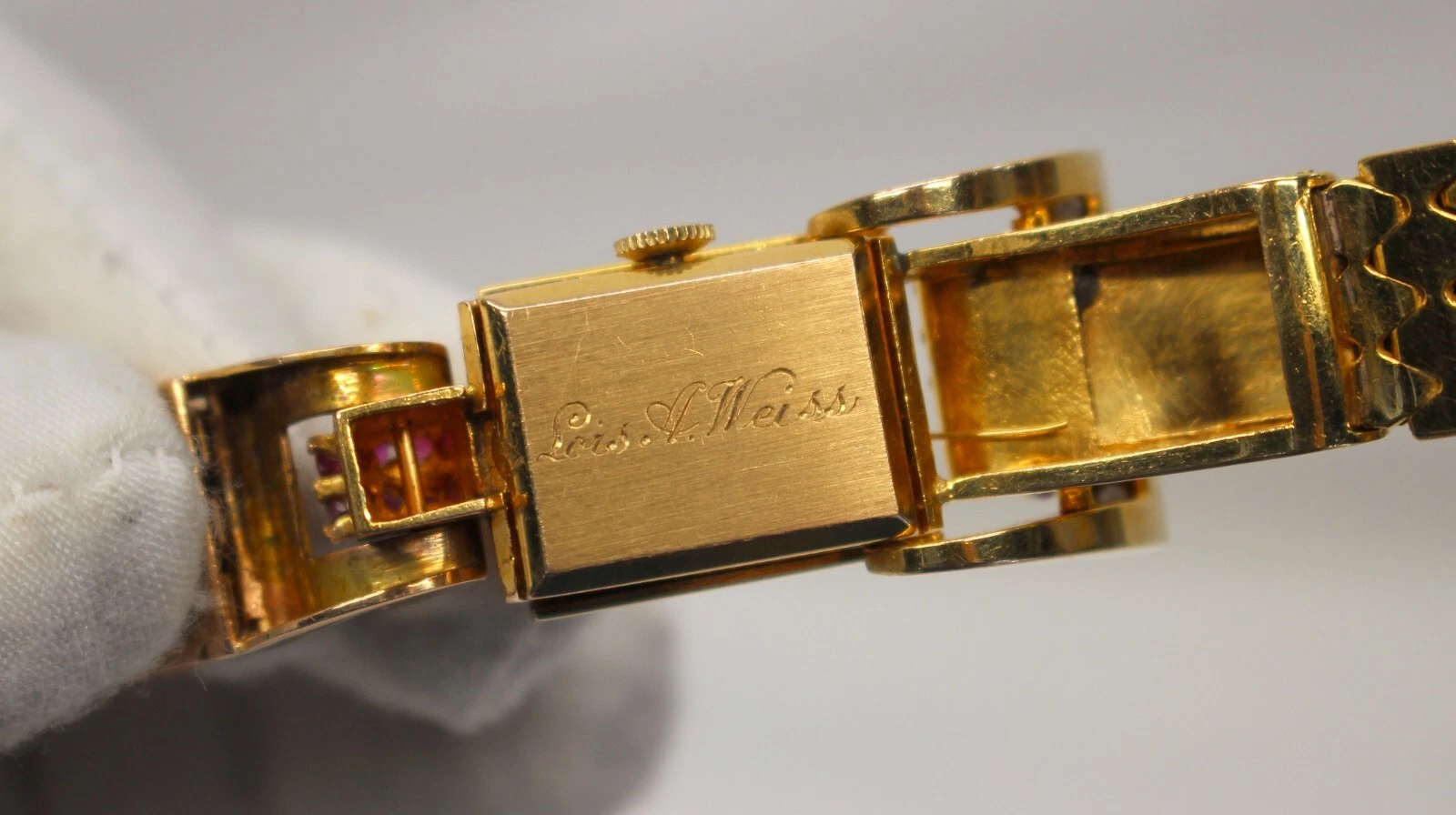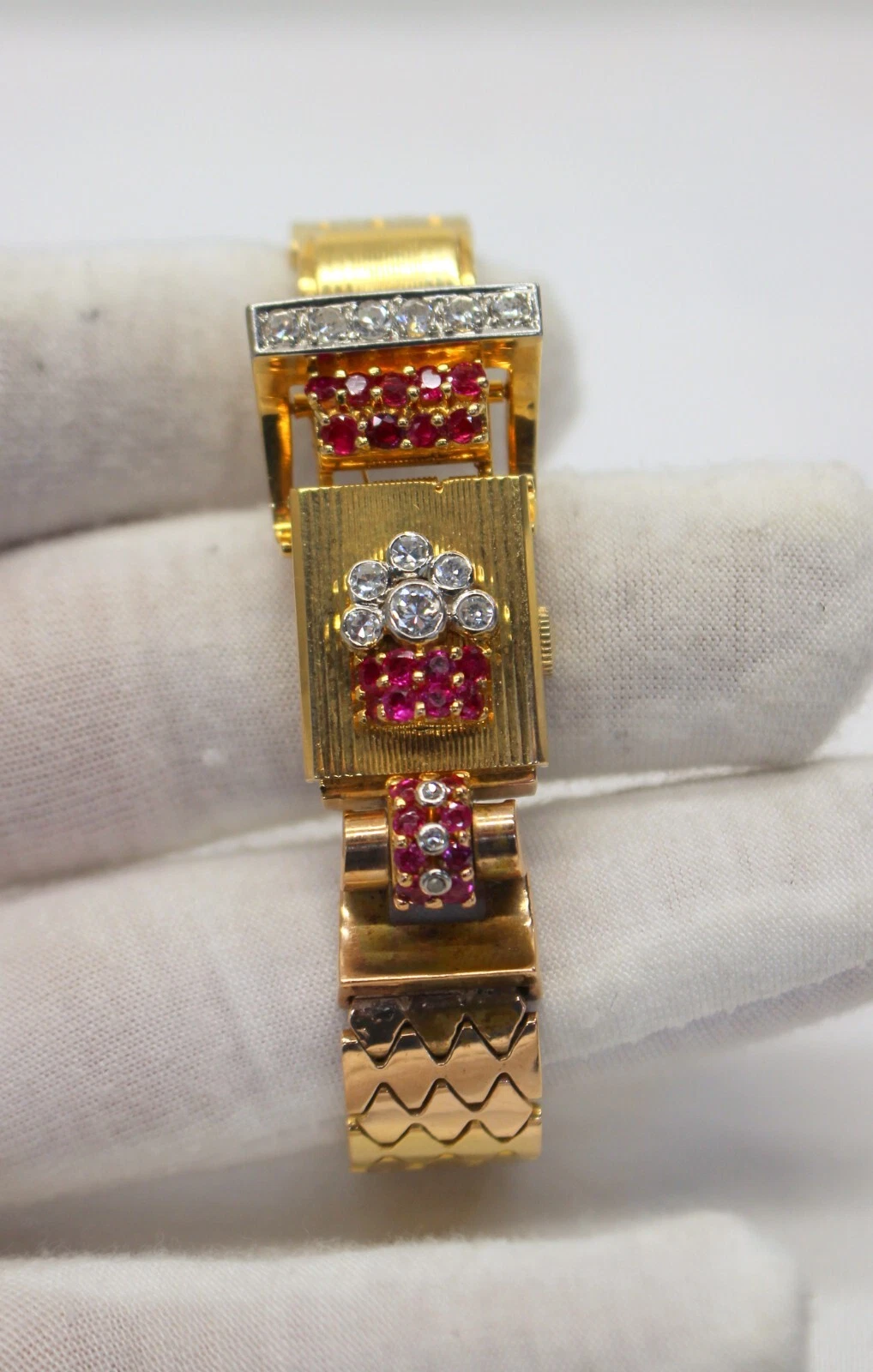 Ladies CHALET 14K Yellow Gold Watch HINGED COVER w/ RUBY & DIAMOND Runs LUXURY