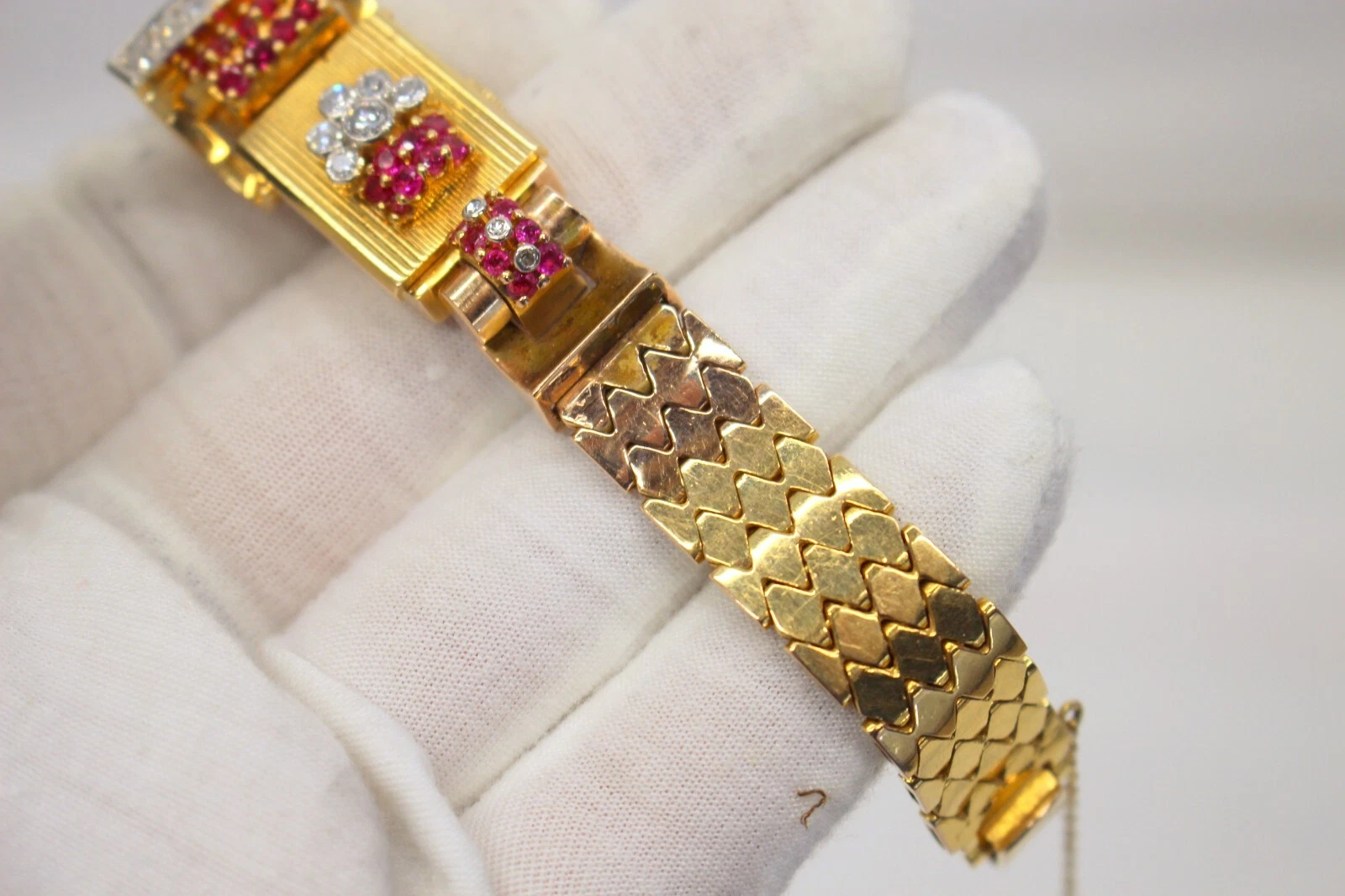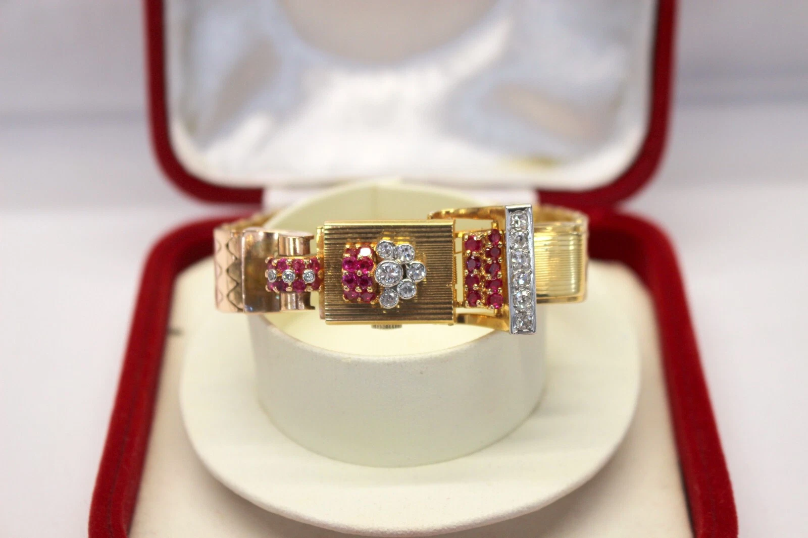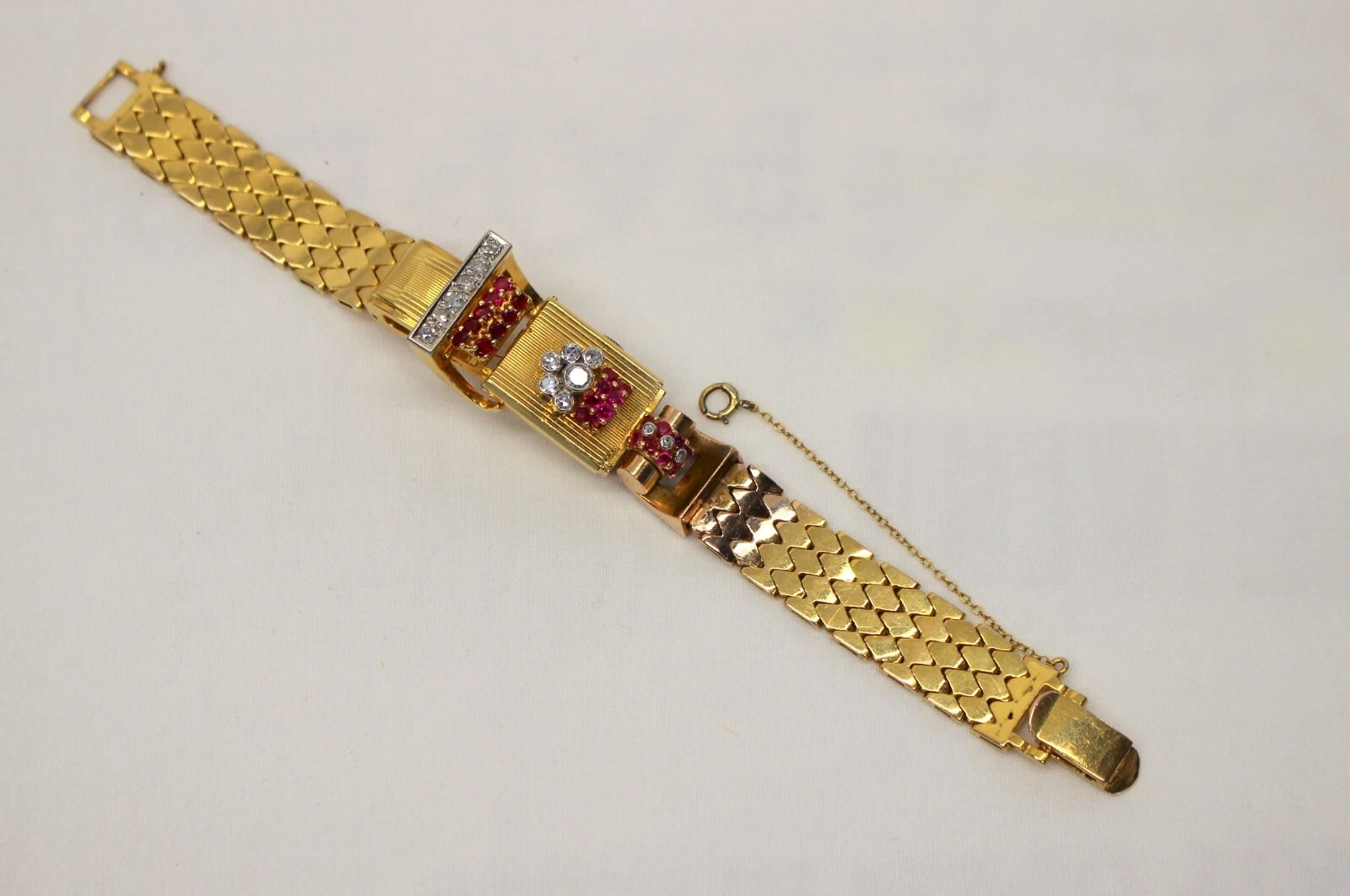 Ladies CHALET 14K Yellow Gold Watch HINGED COVER w/ RUBY & DIAMOND Runs LUXURY