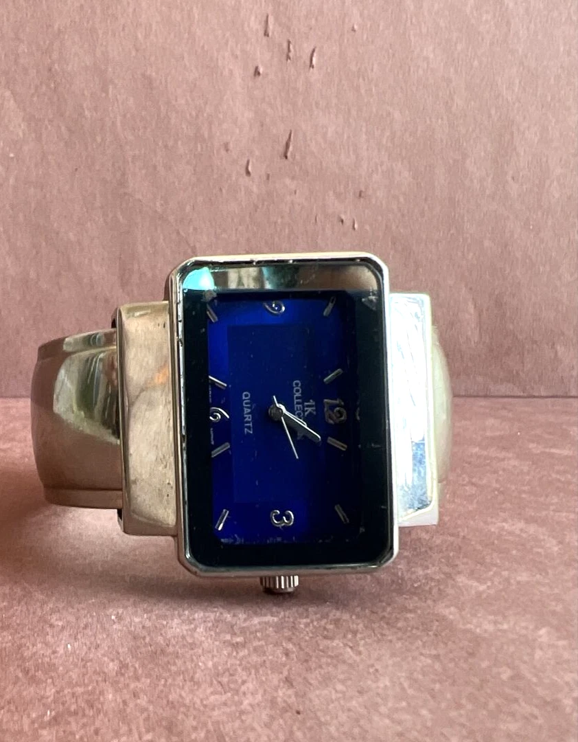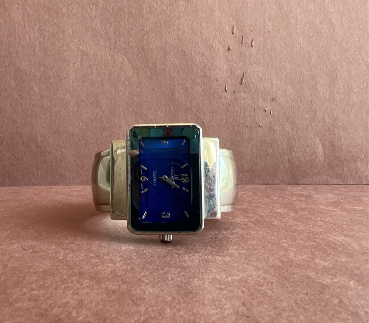 VINTAGE IK Collection Quartz Silver Tone Bracelet Watch With Blue Face