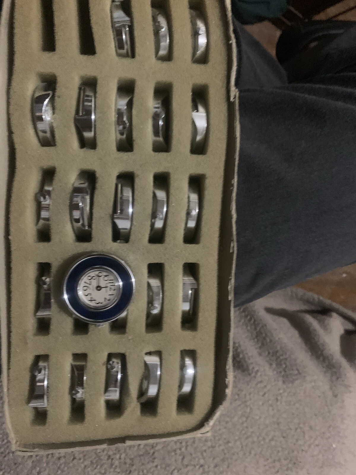 Lucerne Mint NOS Unused 1970s Round  Blue & Silver Windup Watch From Factory Box