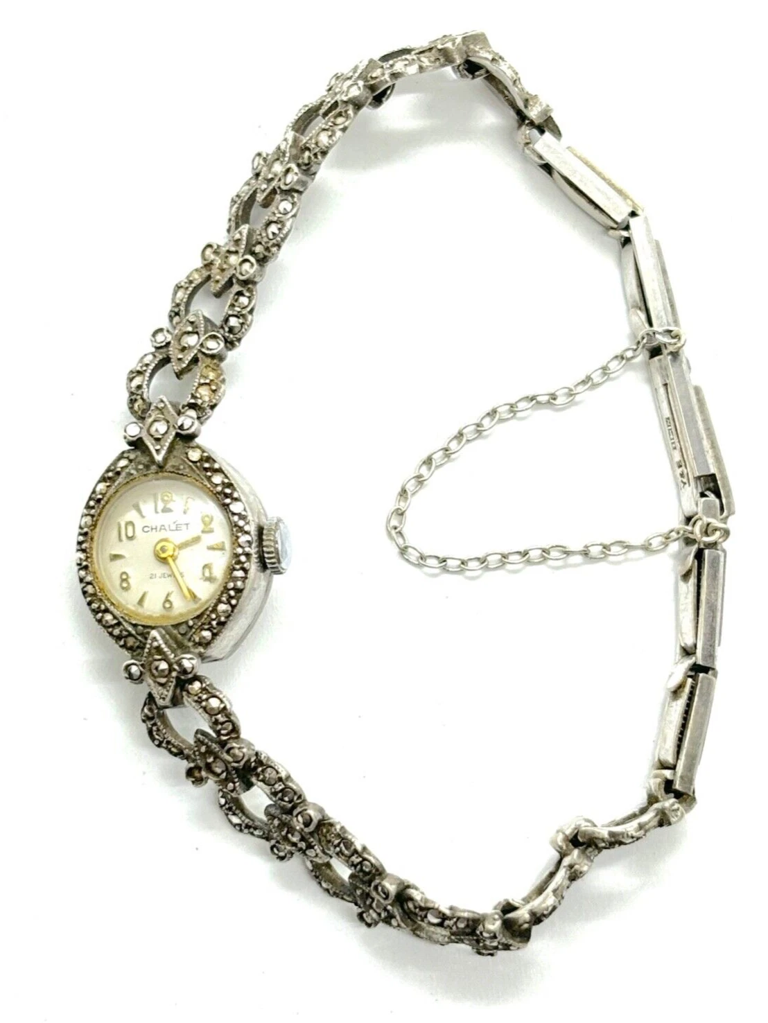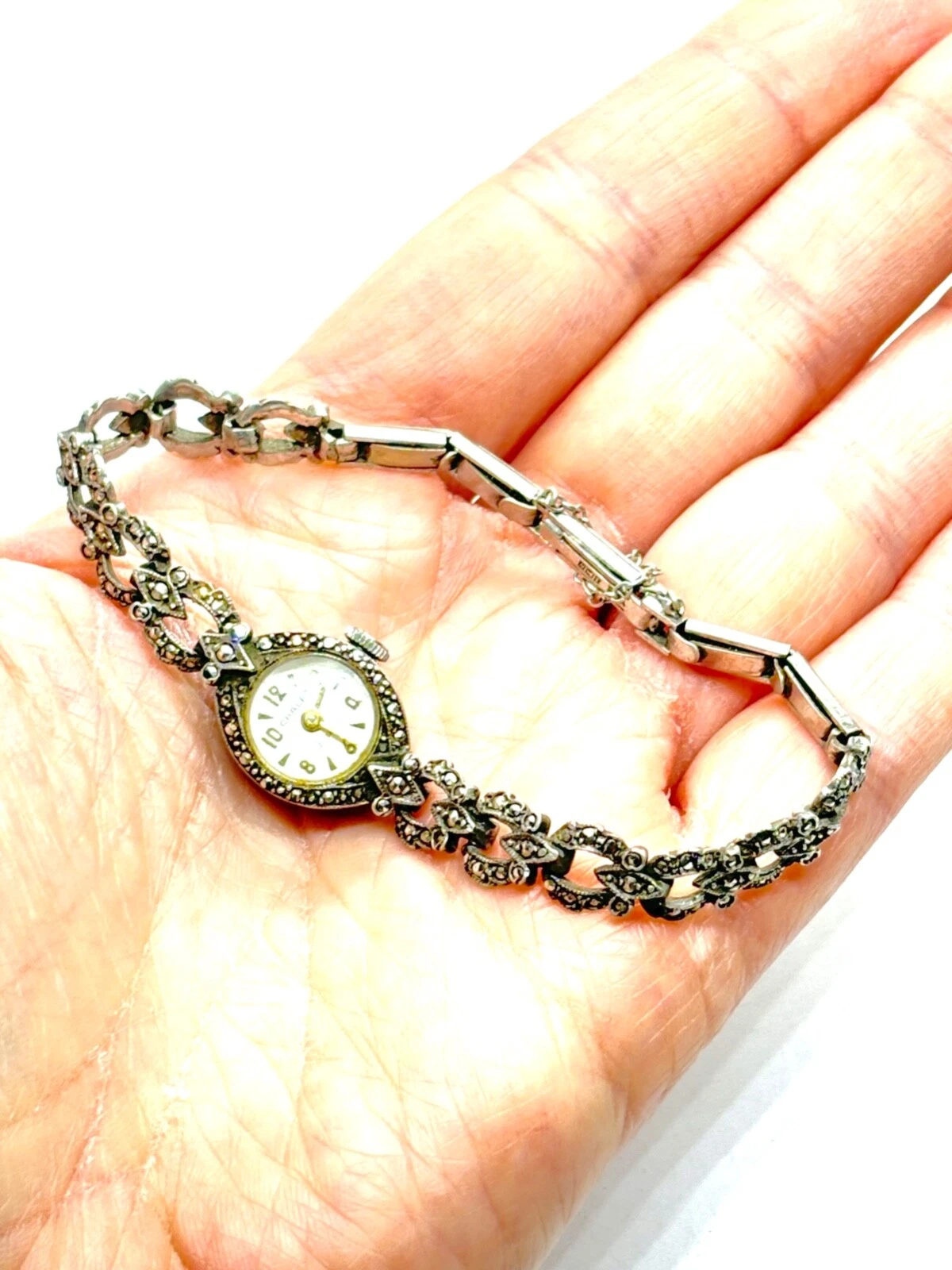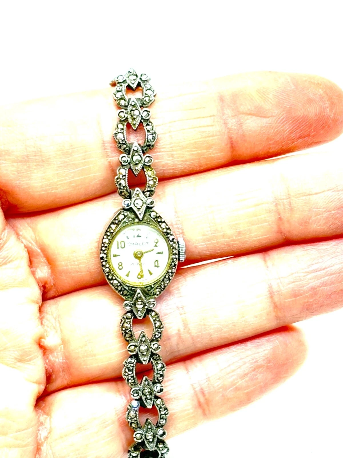 Vintage 1965 Sterling Silver Chalet Marcasite Ladies Manual Watch - Working