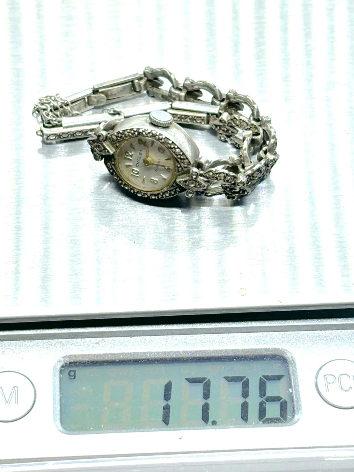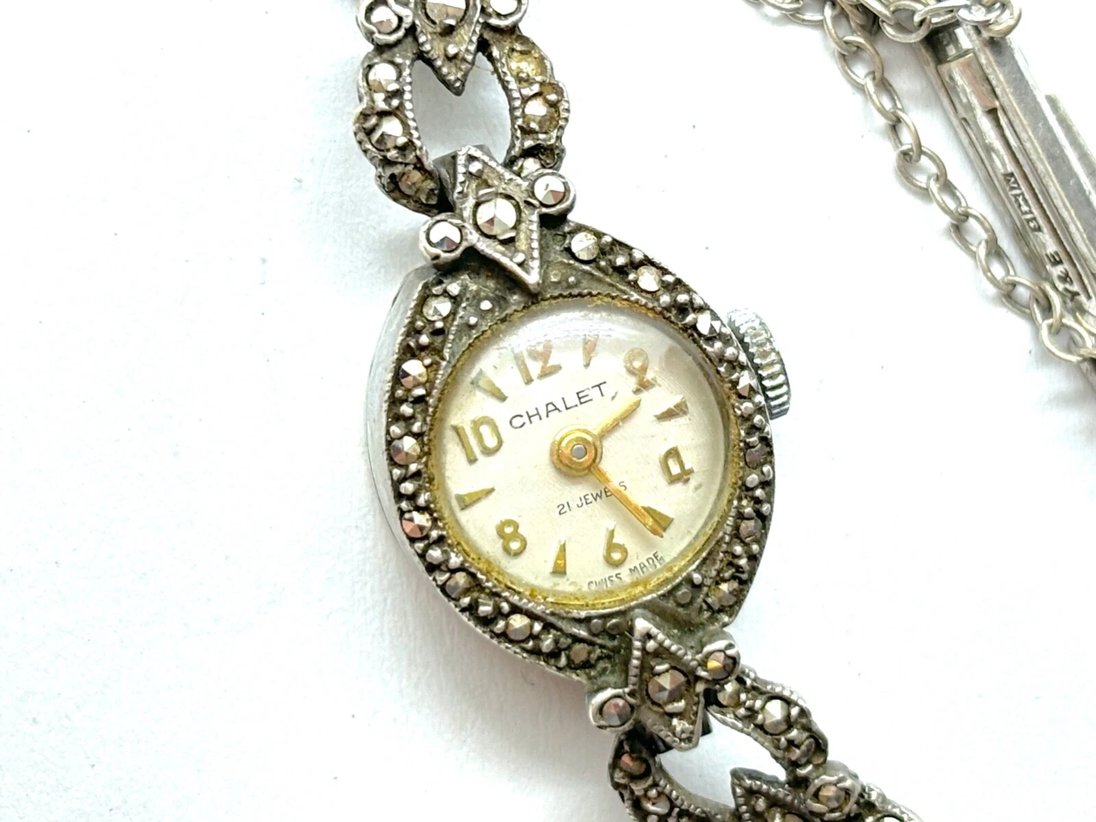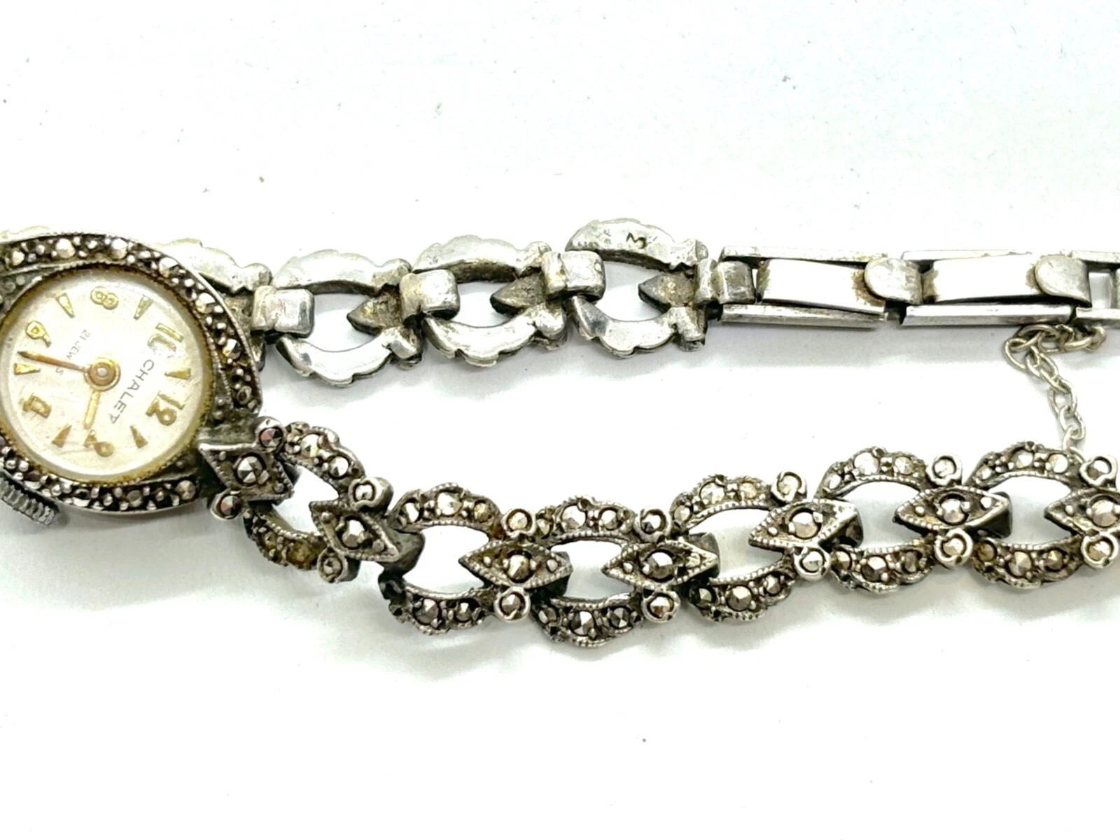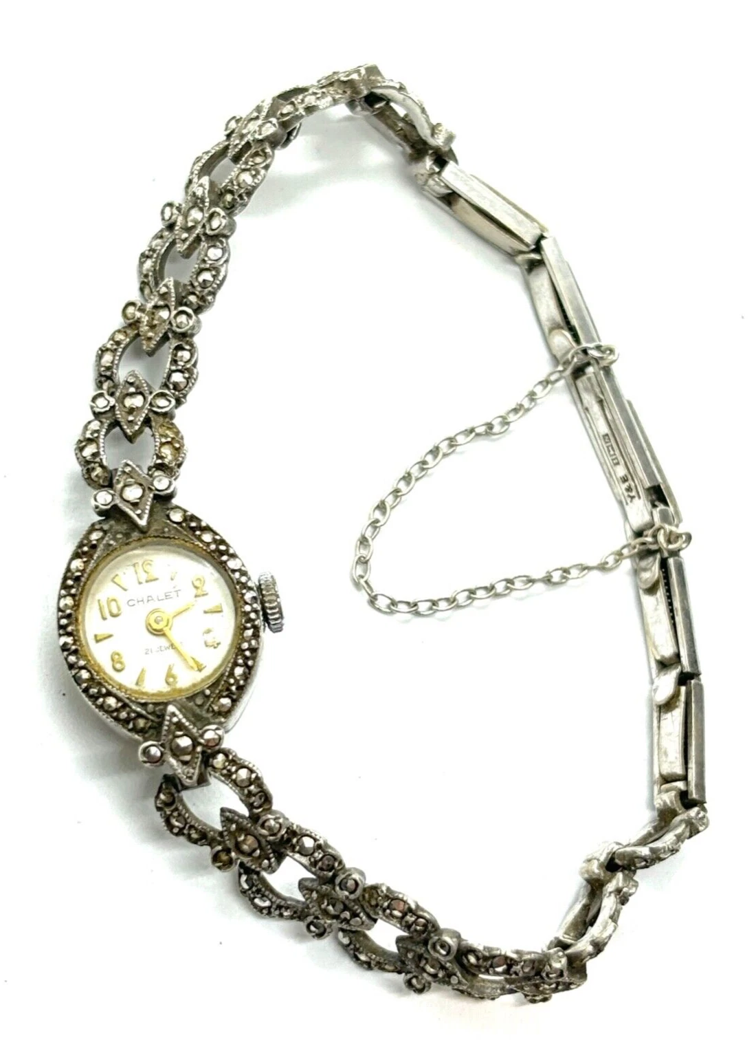 Vintage 1965 Sterling Silver Chalet Marcasite Ladies Manual Watch - Working