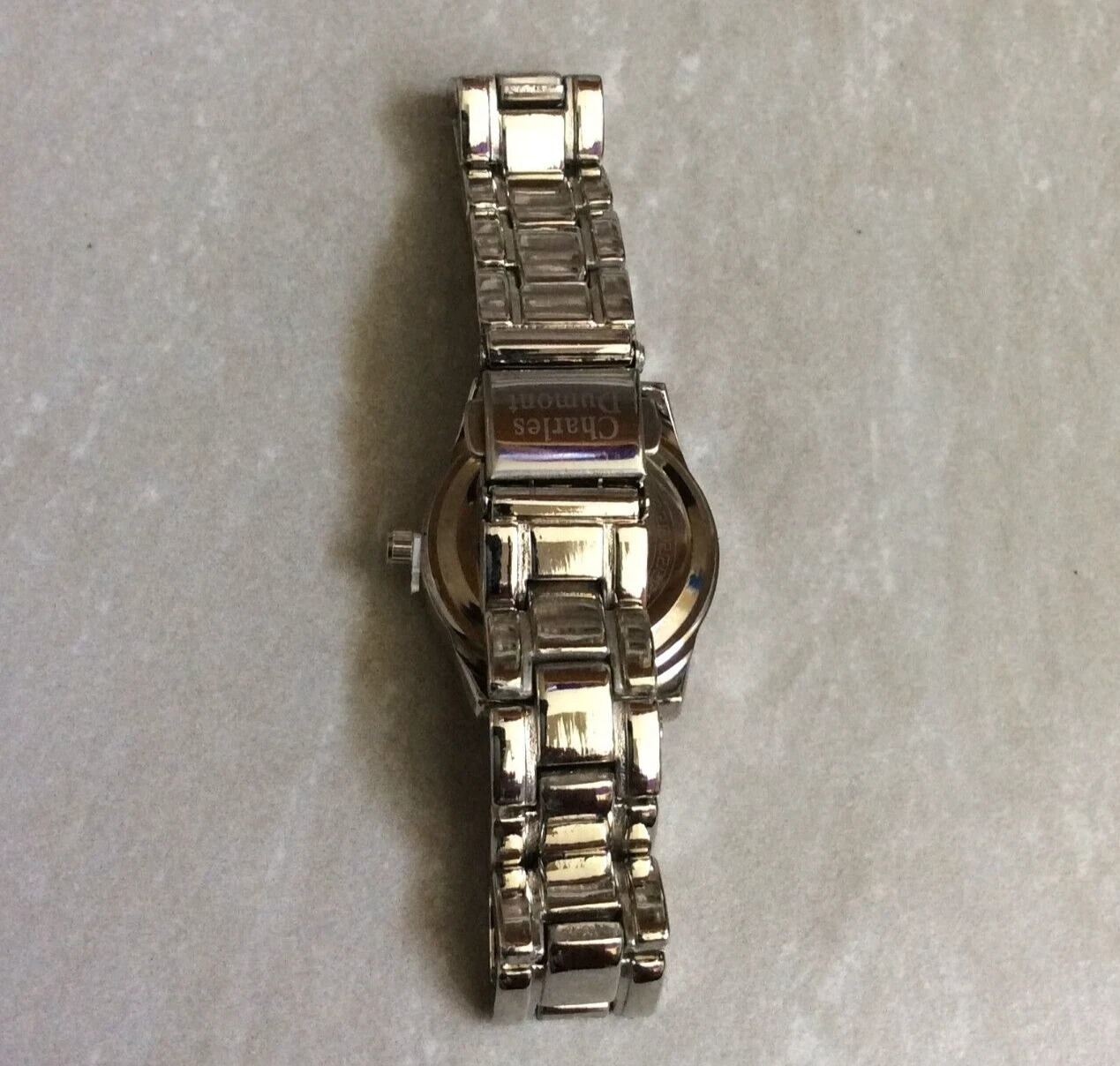 Charles Dumont Paris Women's Watch Round Black Dial on Silver Linked Band New!