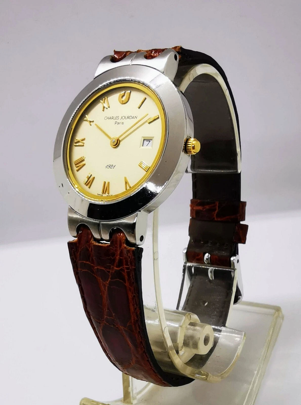 #2 Charles Jourdan Elegant Stainless Steel Date mens Quartz Watch