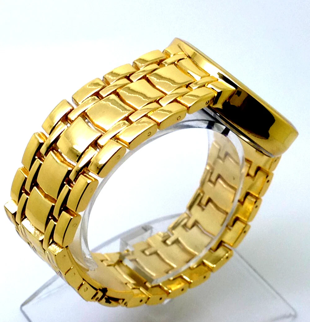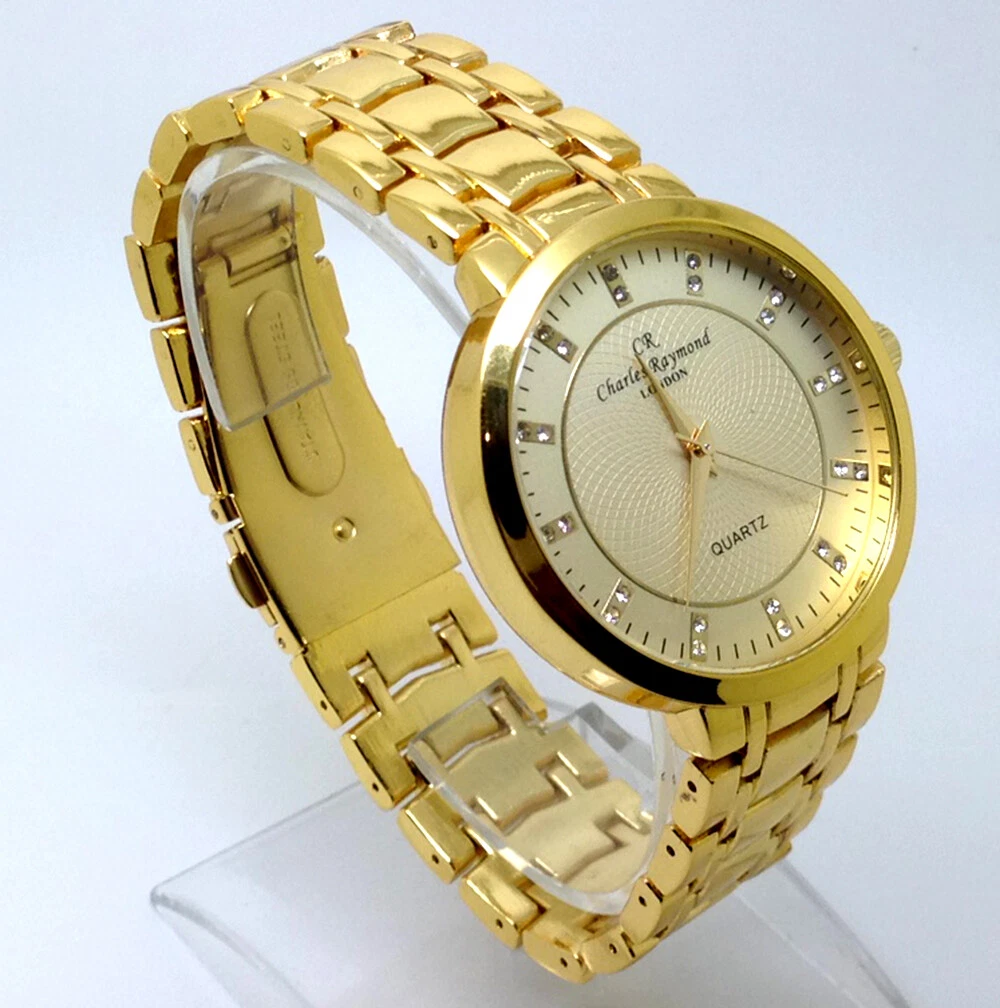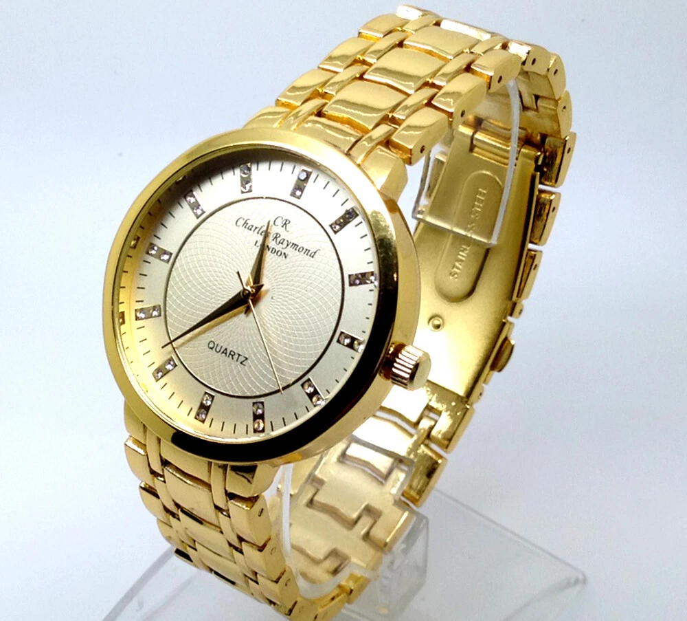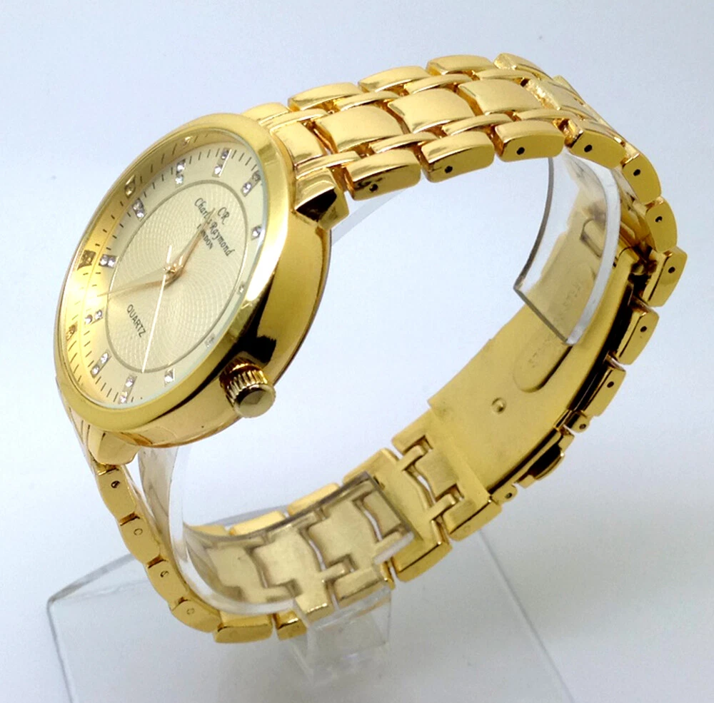 x103A Men's New Fashion Slim Wrist Watch Gold Strap Diamante Crystal Shiny Dial