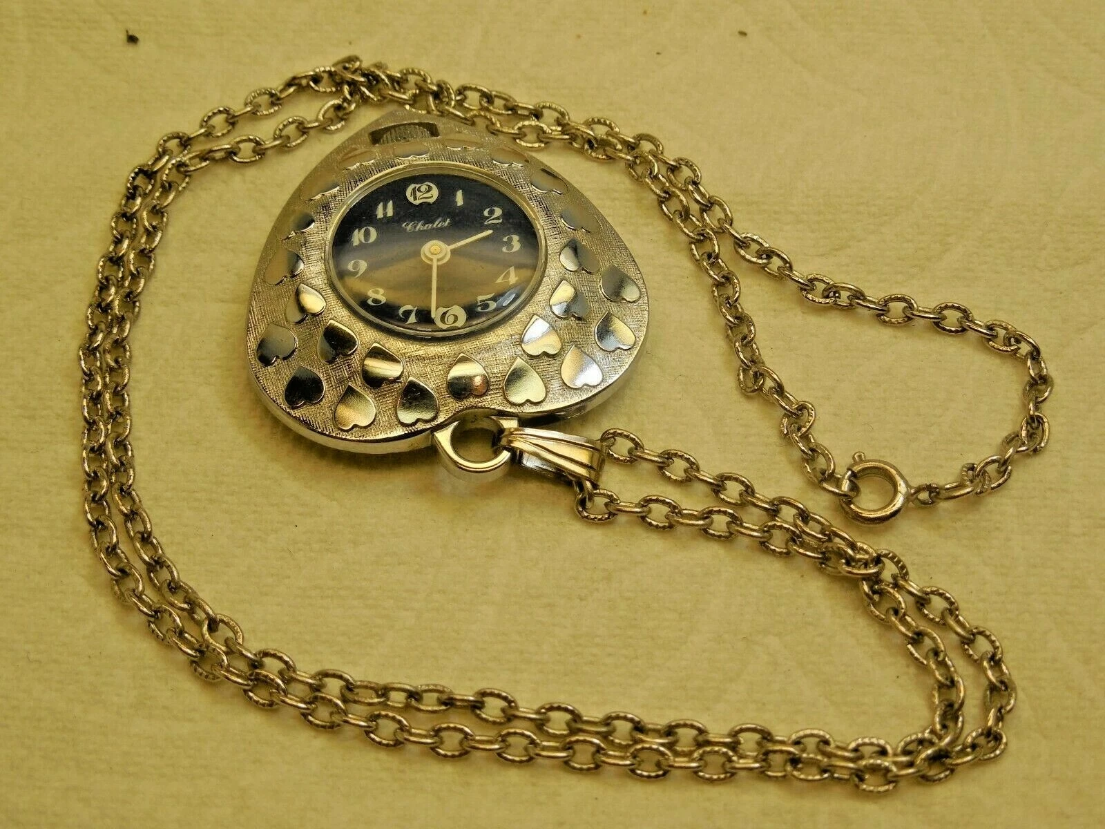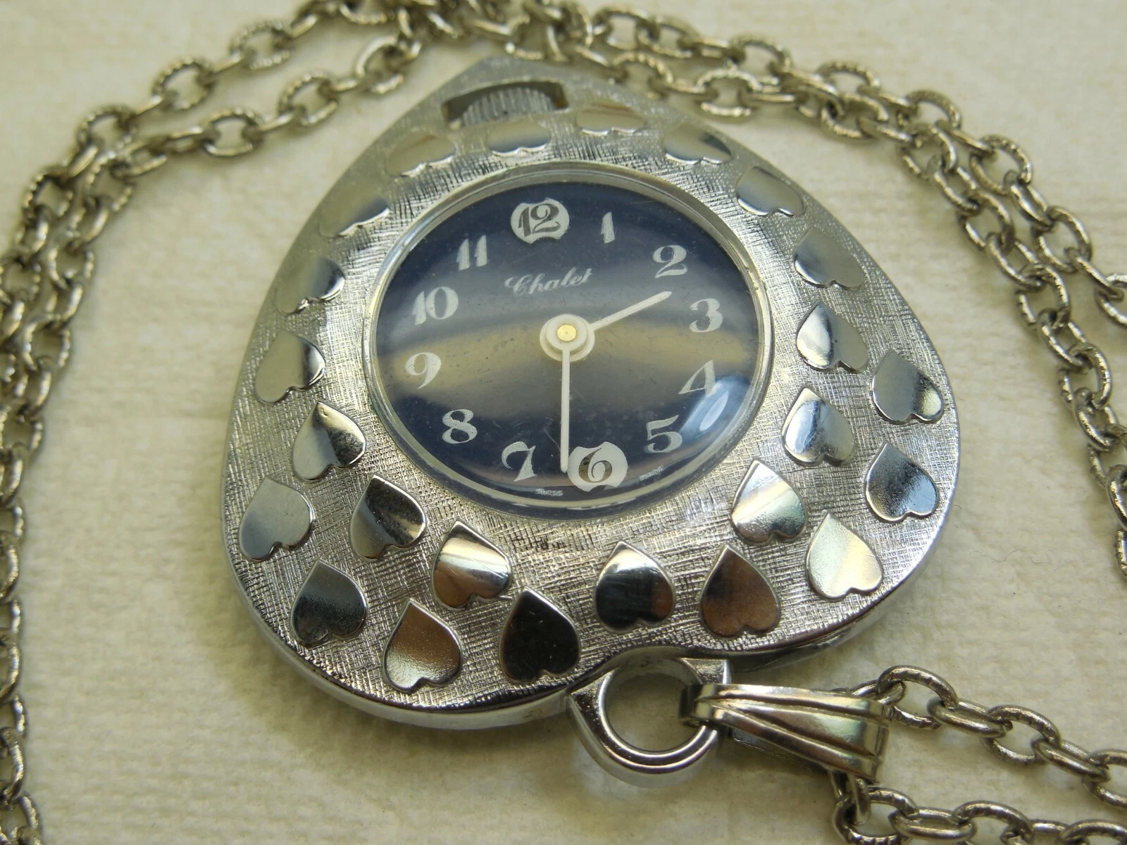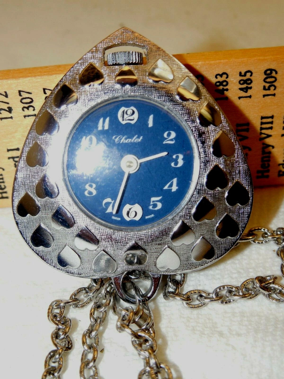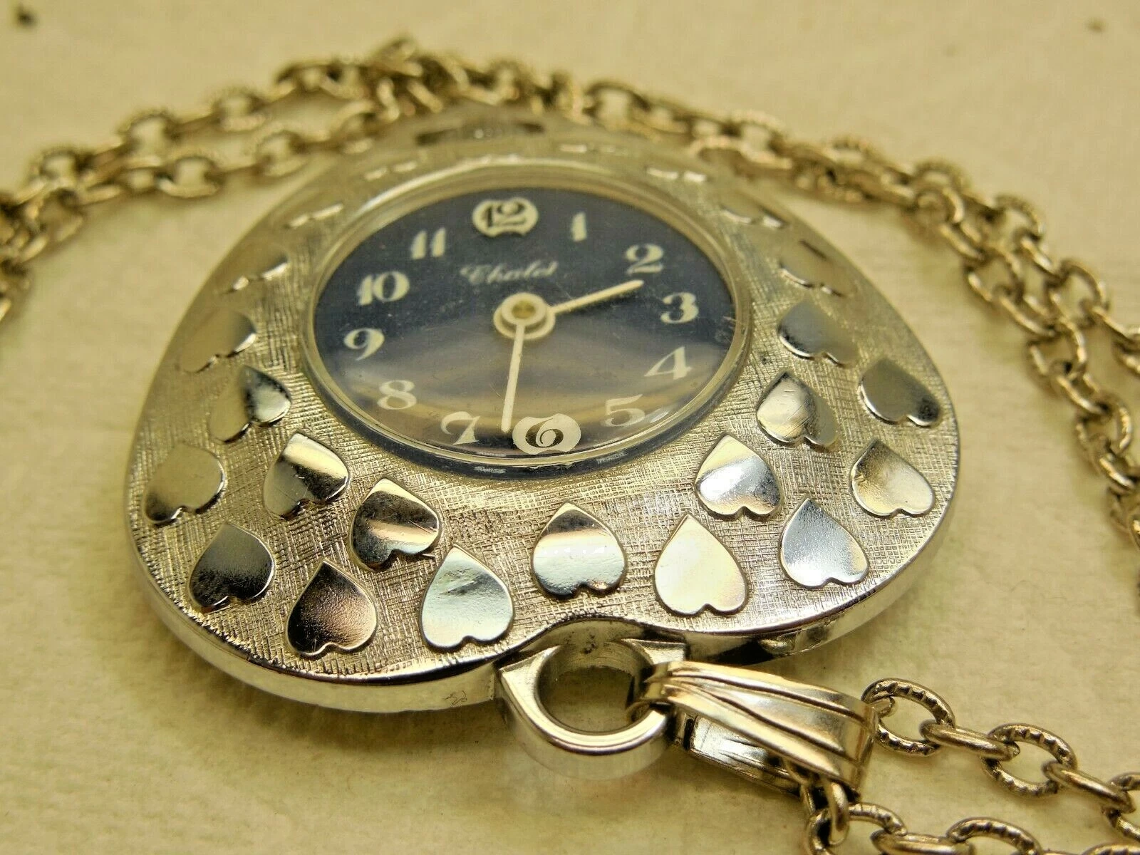 Vintage Swiss Made Chalet Wind Up Necklace Pendant Watch,HEART DESIGN, BLUE DIAL