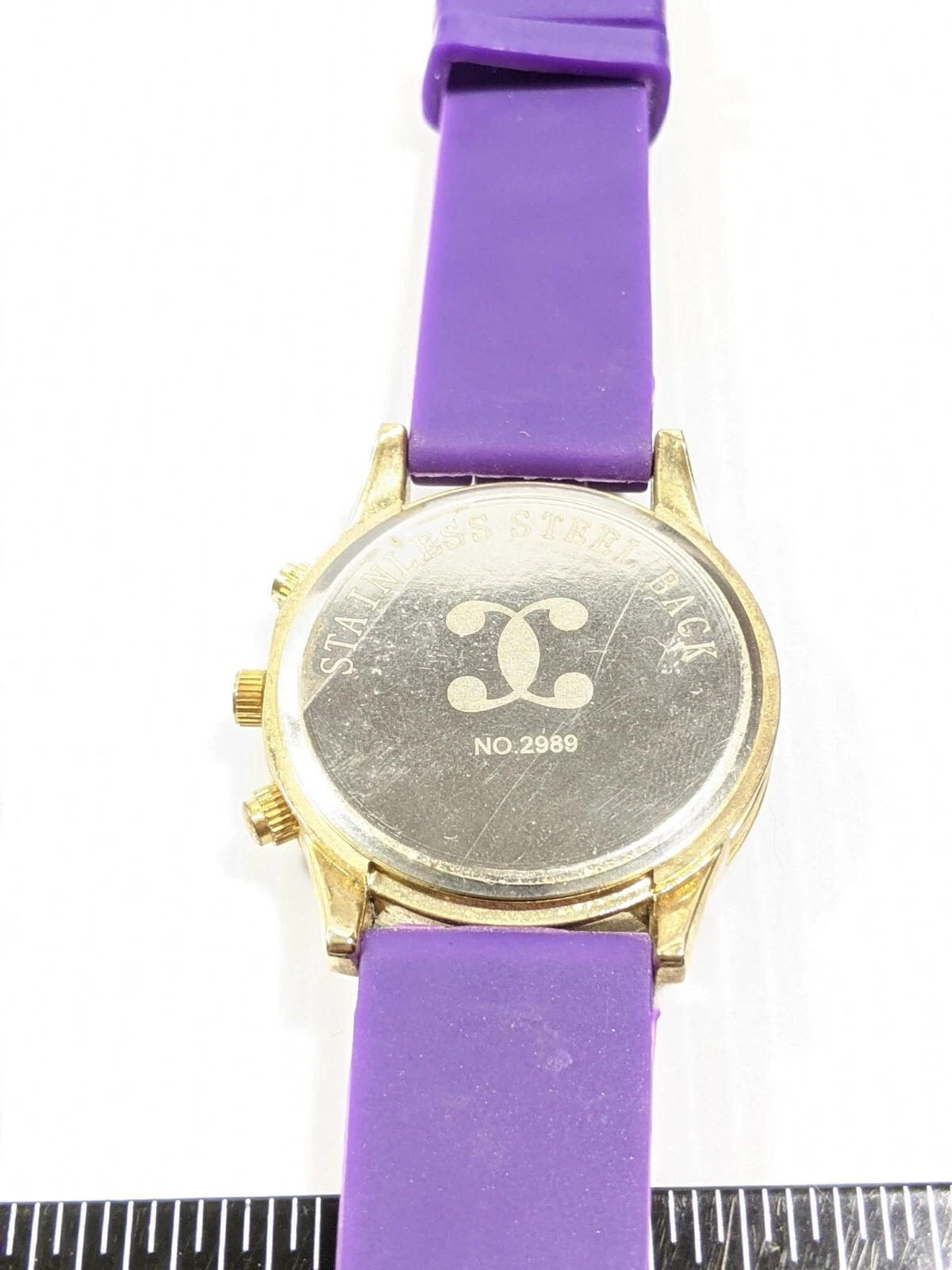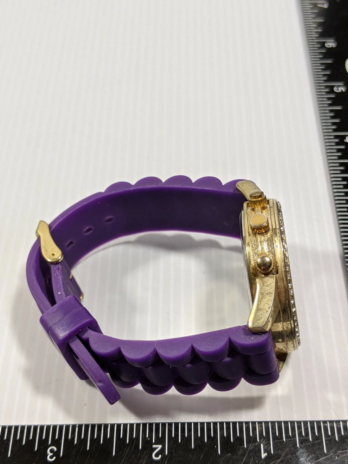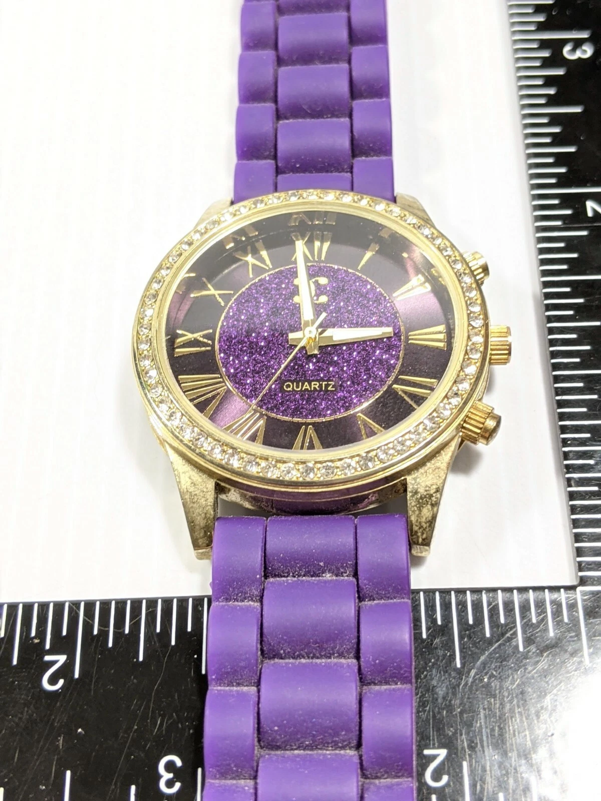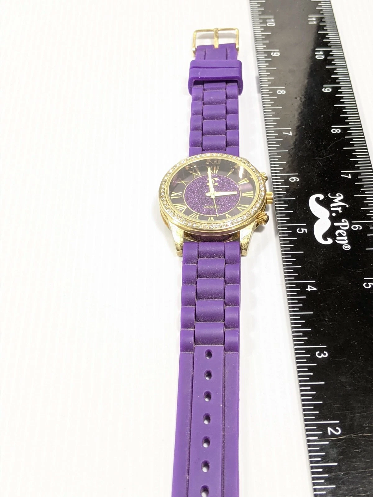 Charming Charlie Silver Tone Crystal Bezel Purple Rubber Band Watch 9 Inch