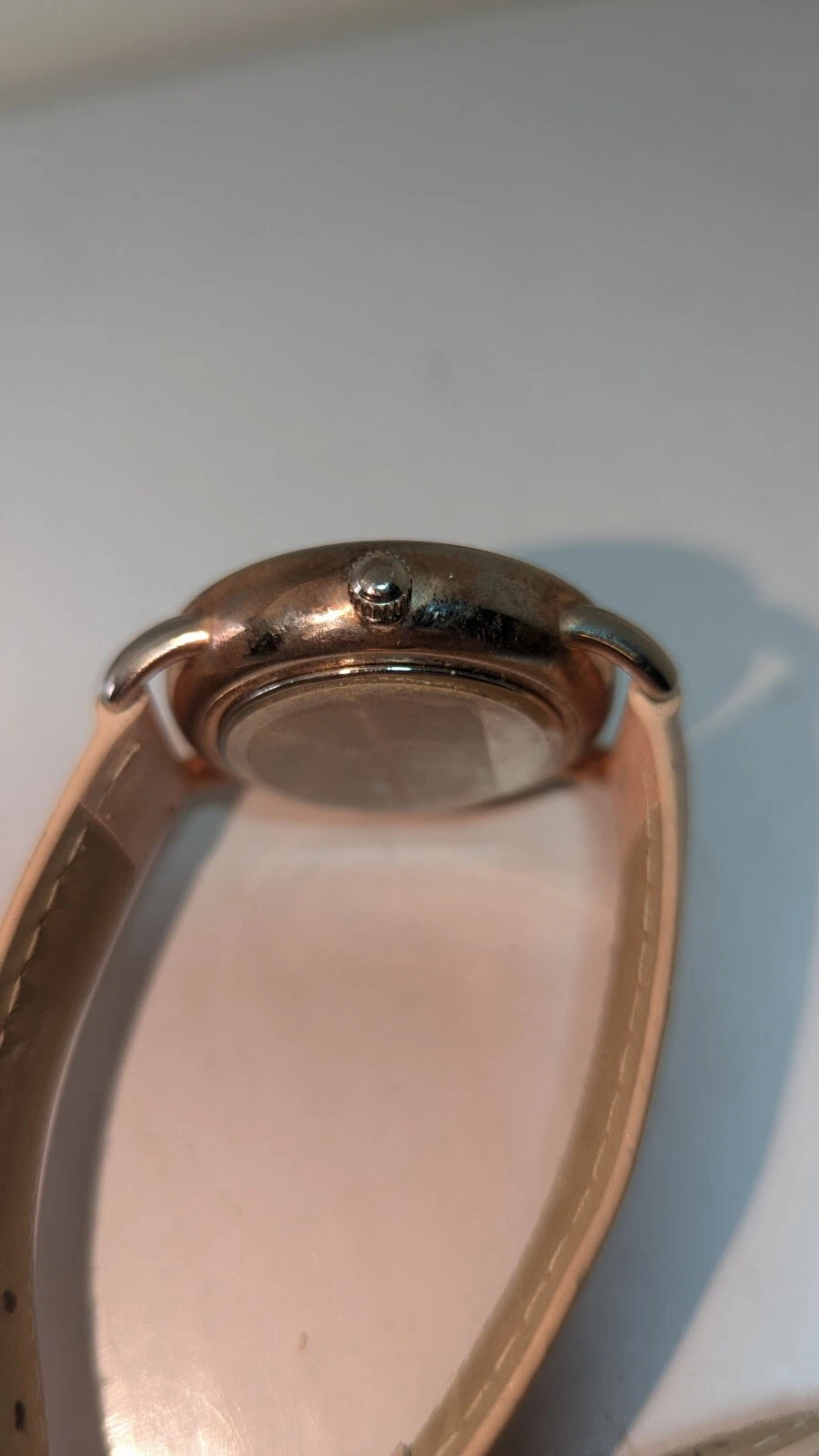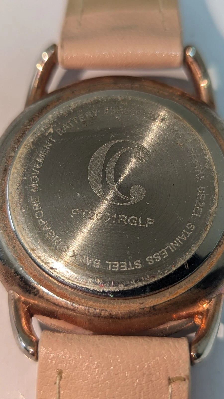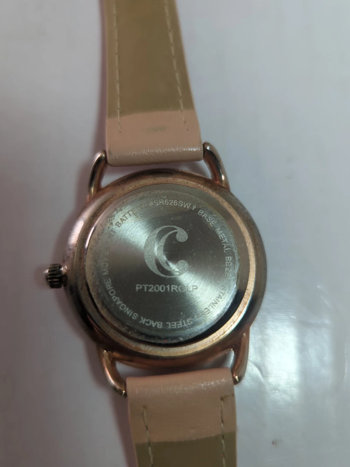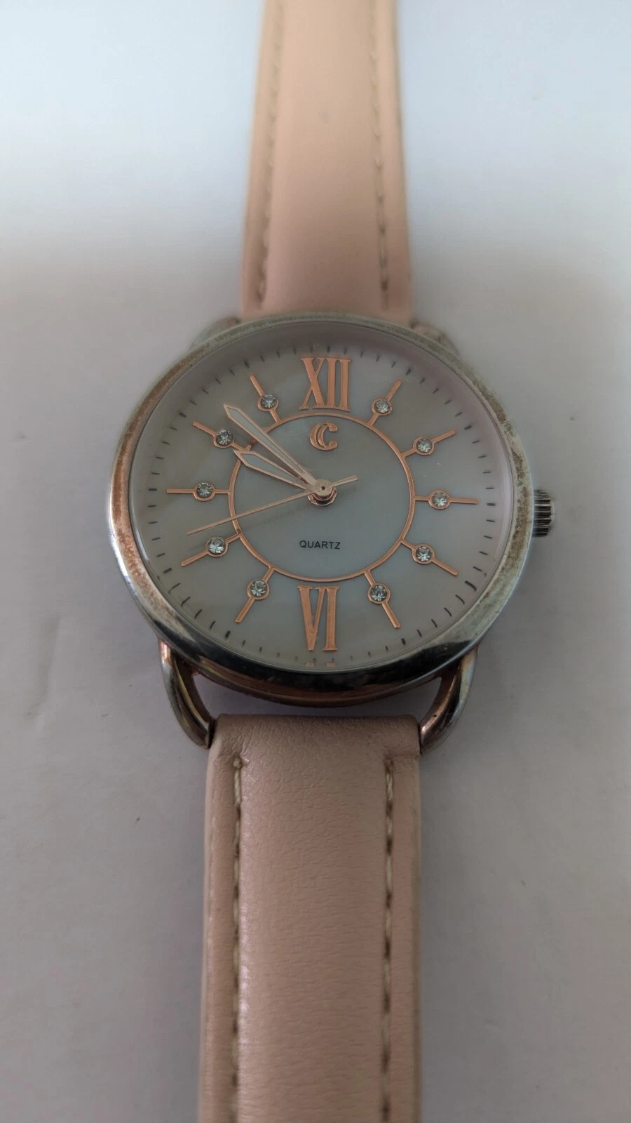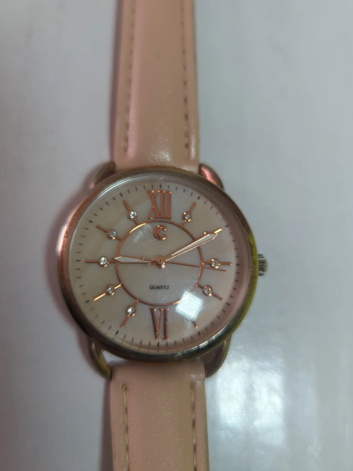Charming Charlie Gold Tone Pearl Dial Pink Band Women’s Quartz Watch New Battery