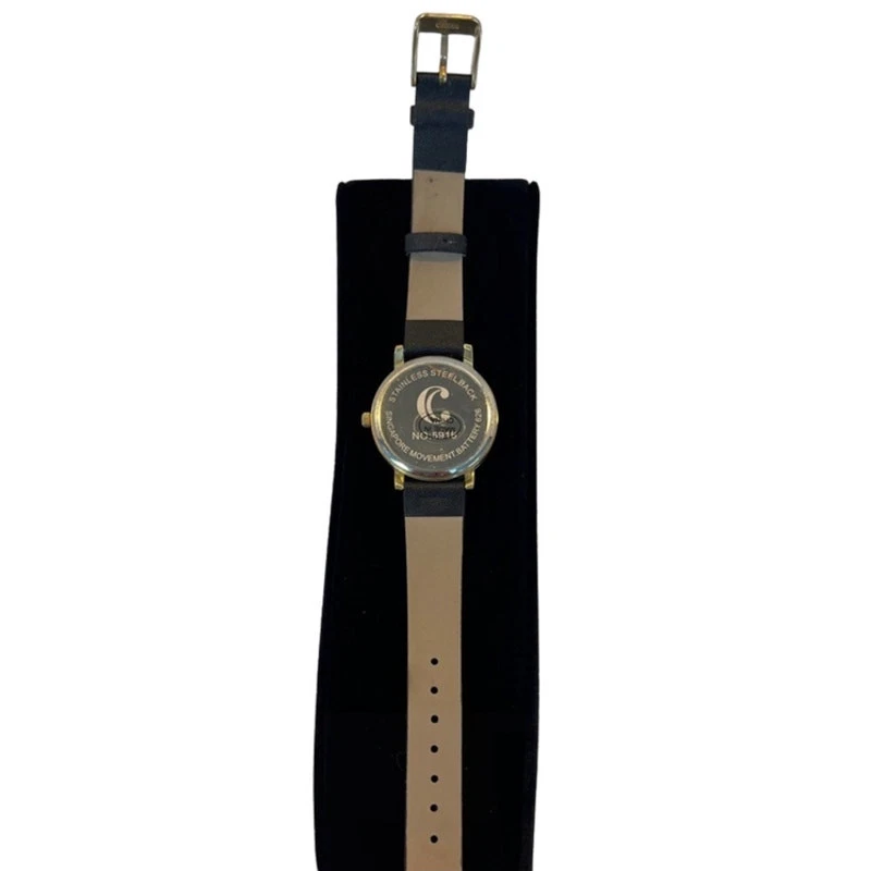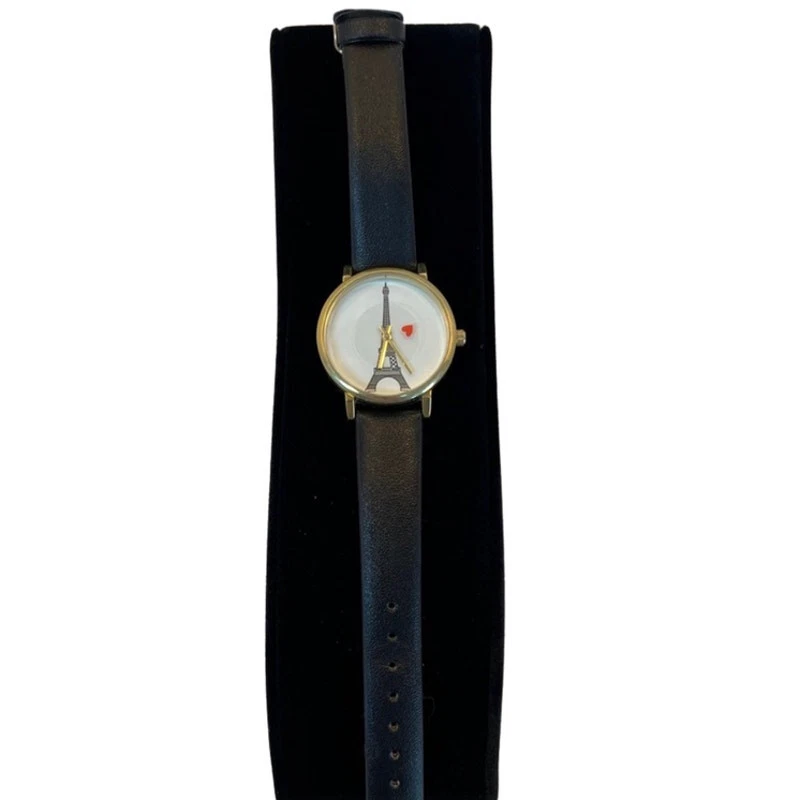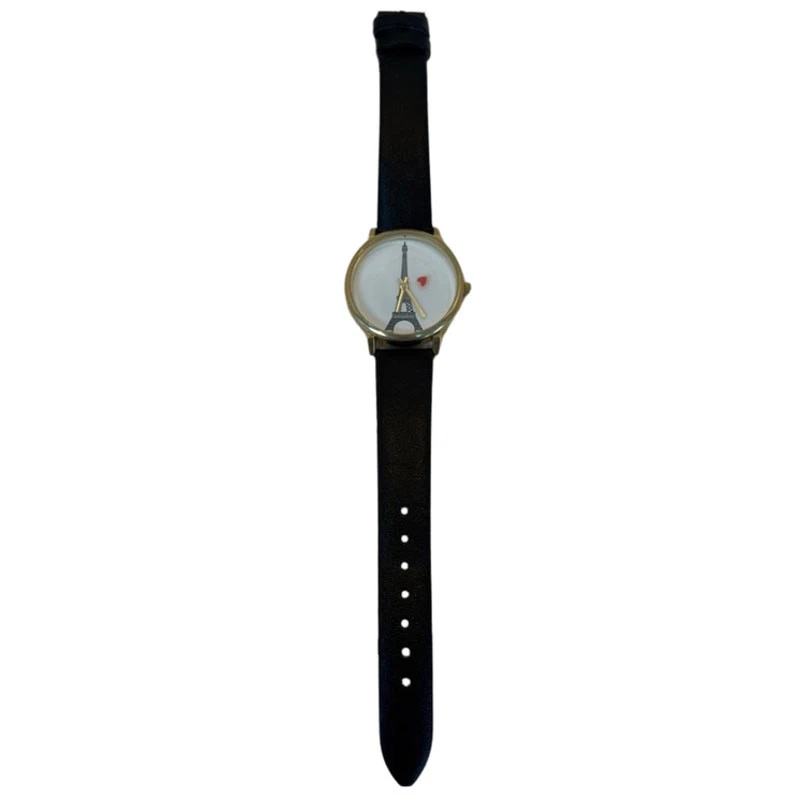 Paris Eiffel Tower Black Buckle Strap Rotating Heart Second Hand Gold Tone Heart
