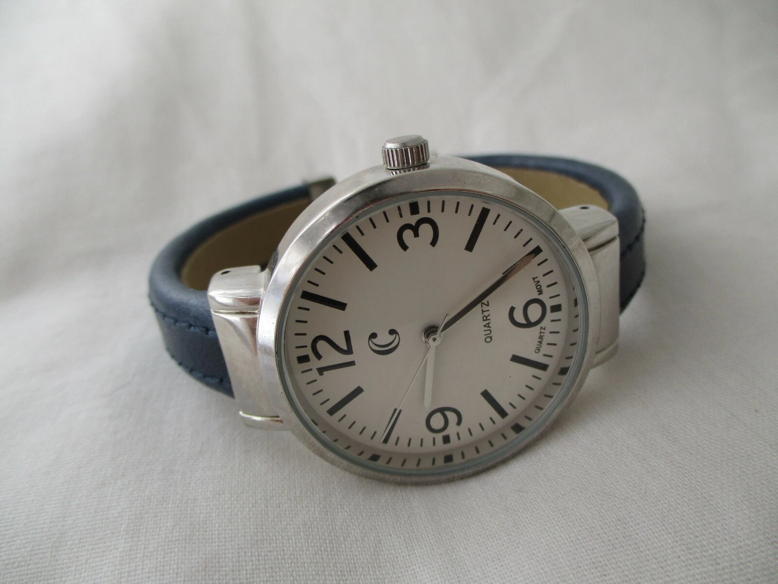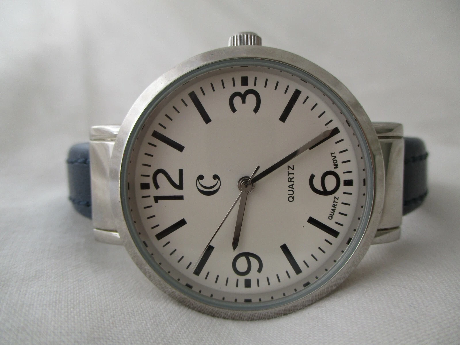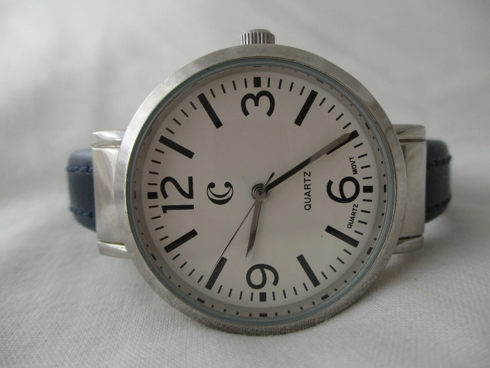 Charming Charlie Cuff Watch, White Dial, Black Band, Large Numerals