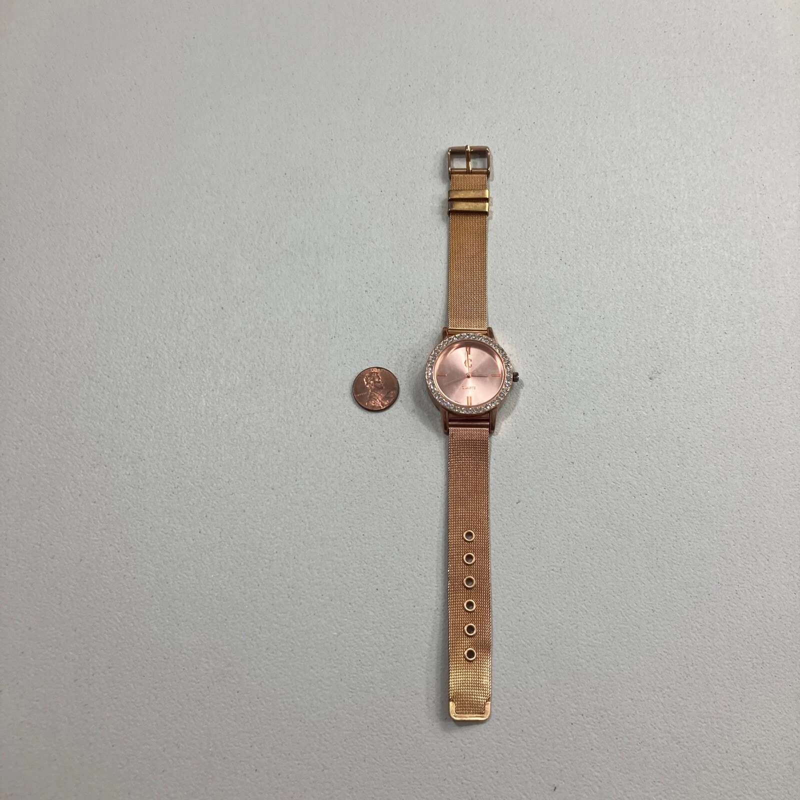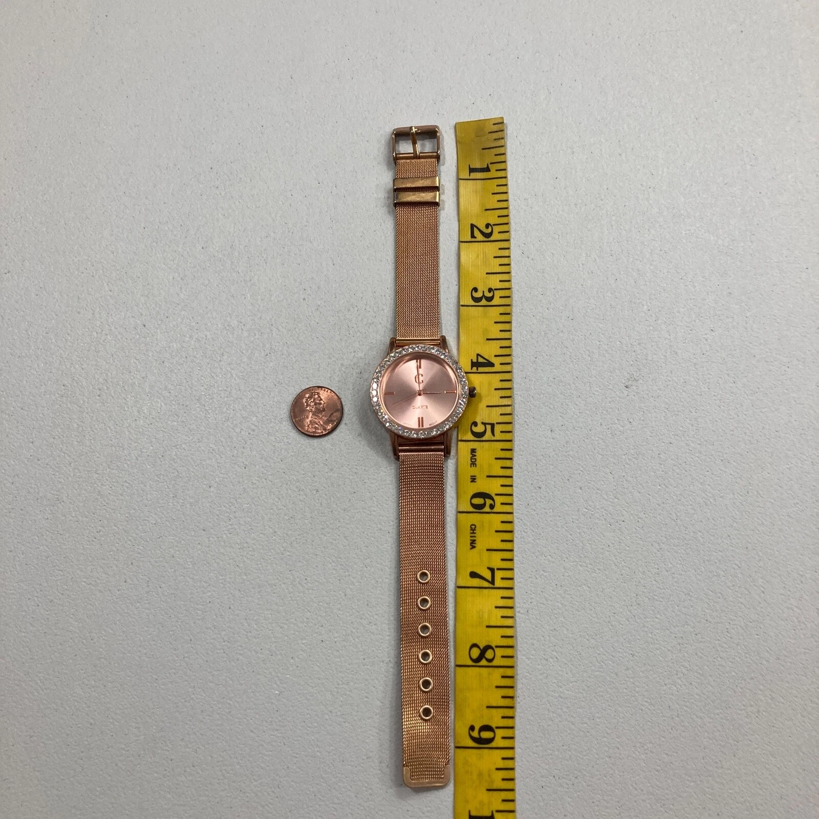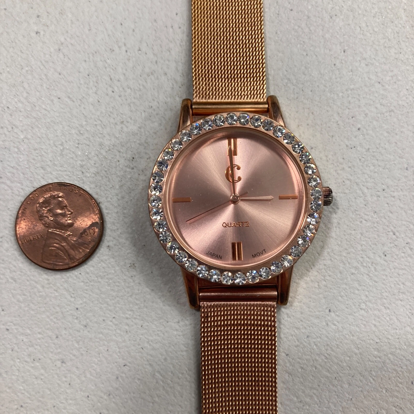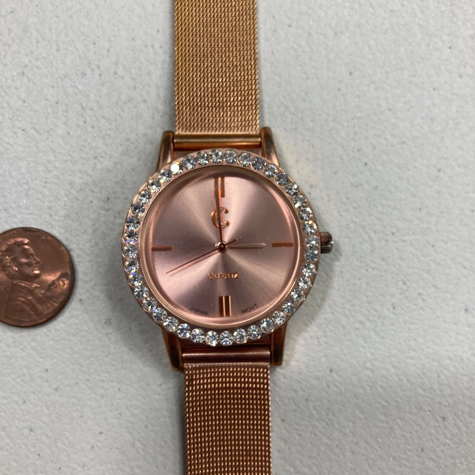 Charming Charlie WOmens Watch Rose Gold Toned Mesh Strap Crystal Bevel