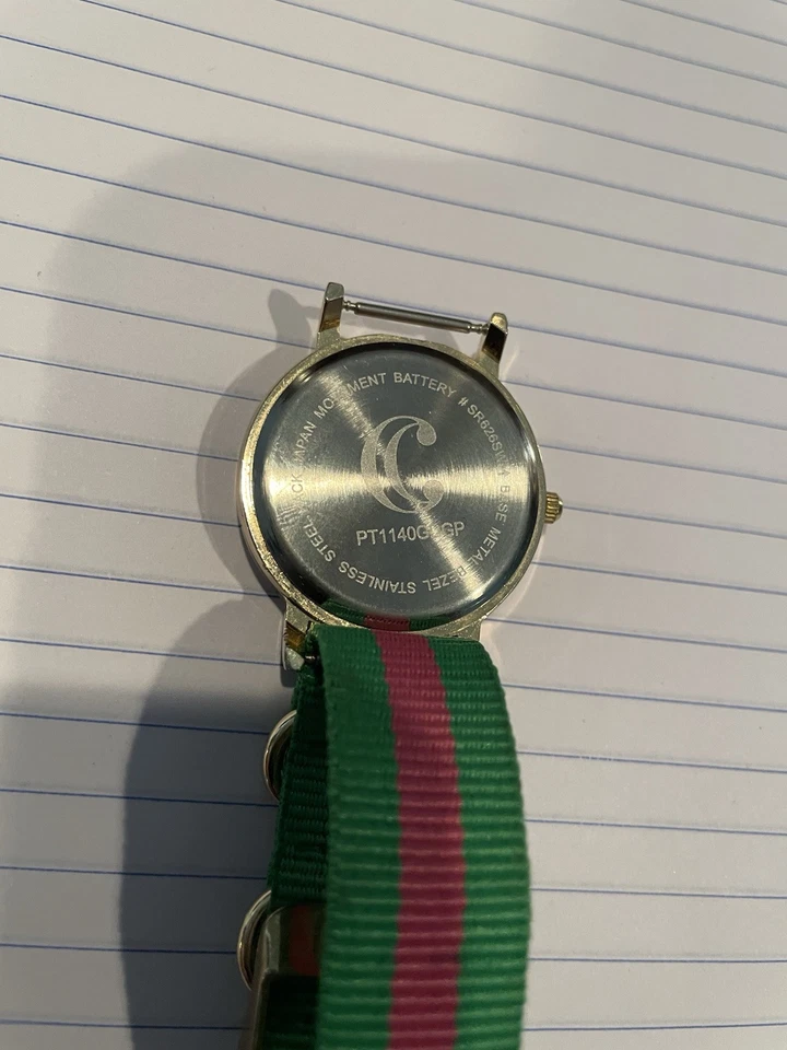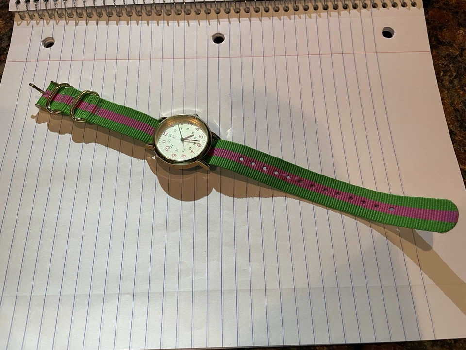 Charming Charlie Watch Pink Green Analog Nylon Band