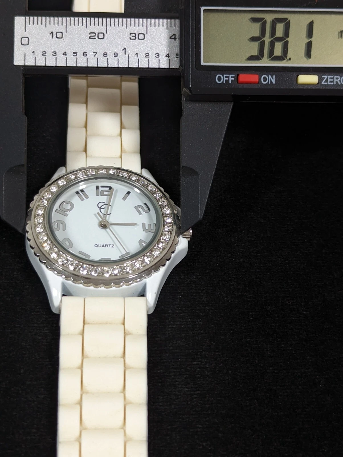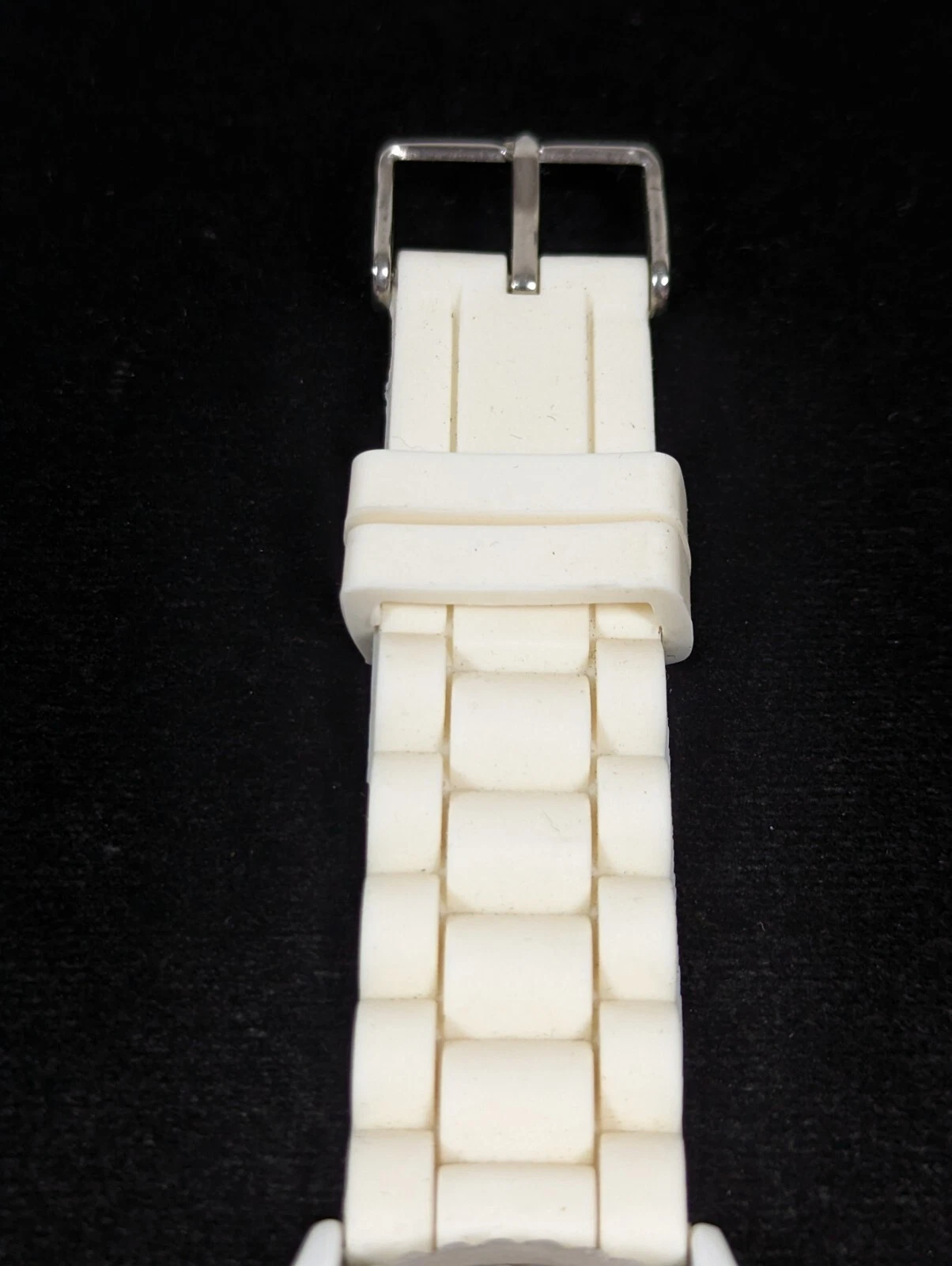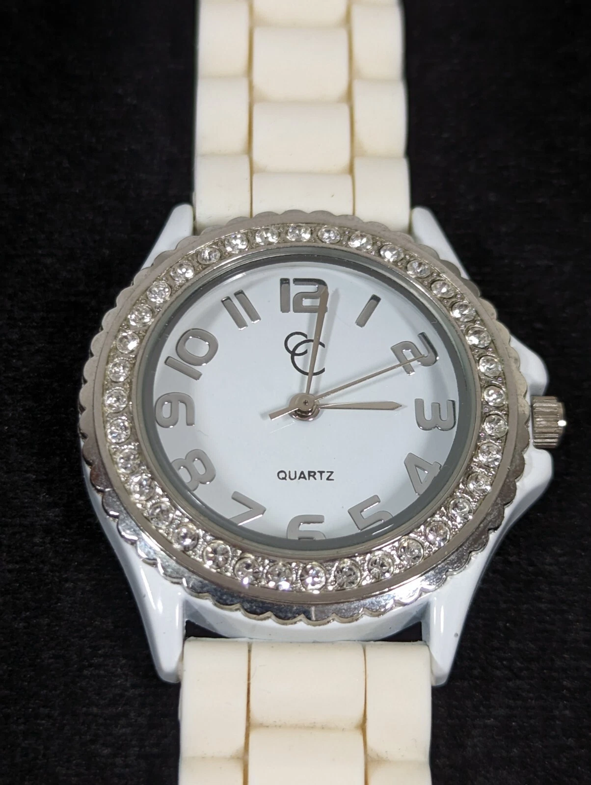 Charming Charlie White Dial Silver Tone Crystal Accent White Silicone Band Watch