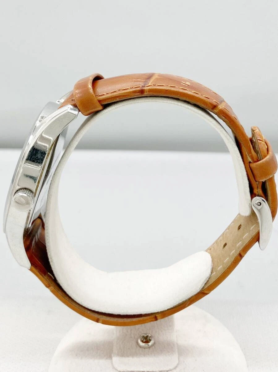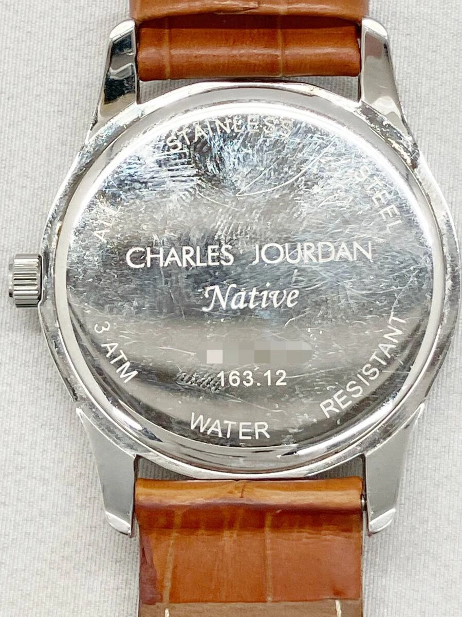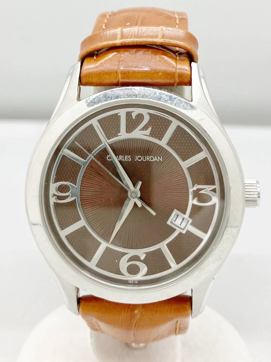 CHARLES JOURDAN 163.12 Brown Dial SS Quartz Used Watch Leather Strap 3ATM