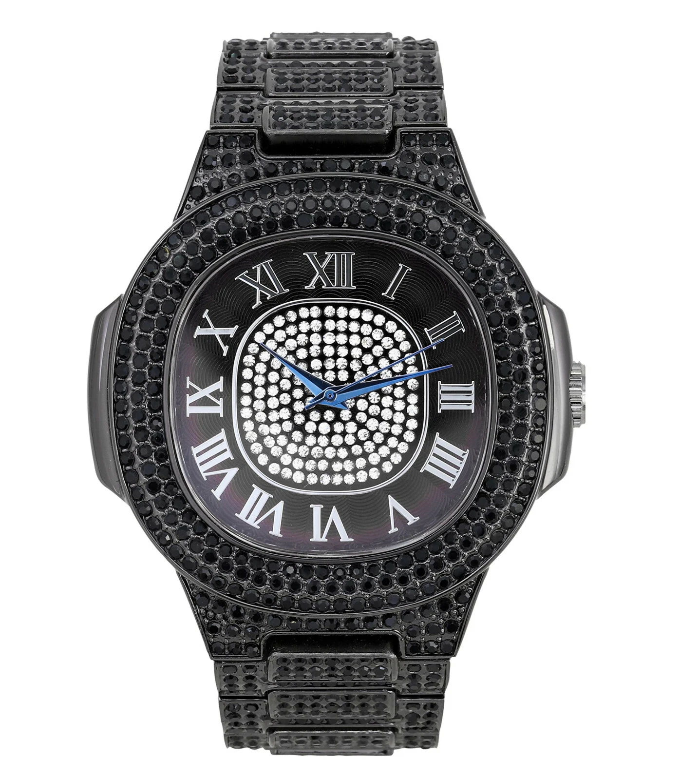 Men's Black Ice Bling Strength on Blast Oblong Designer Timepiece - 8475Color