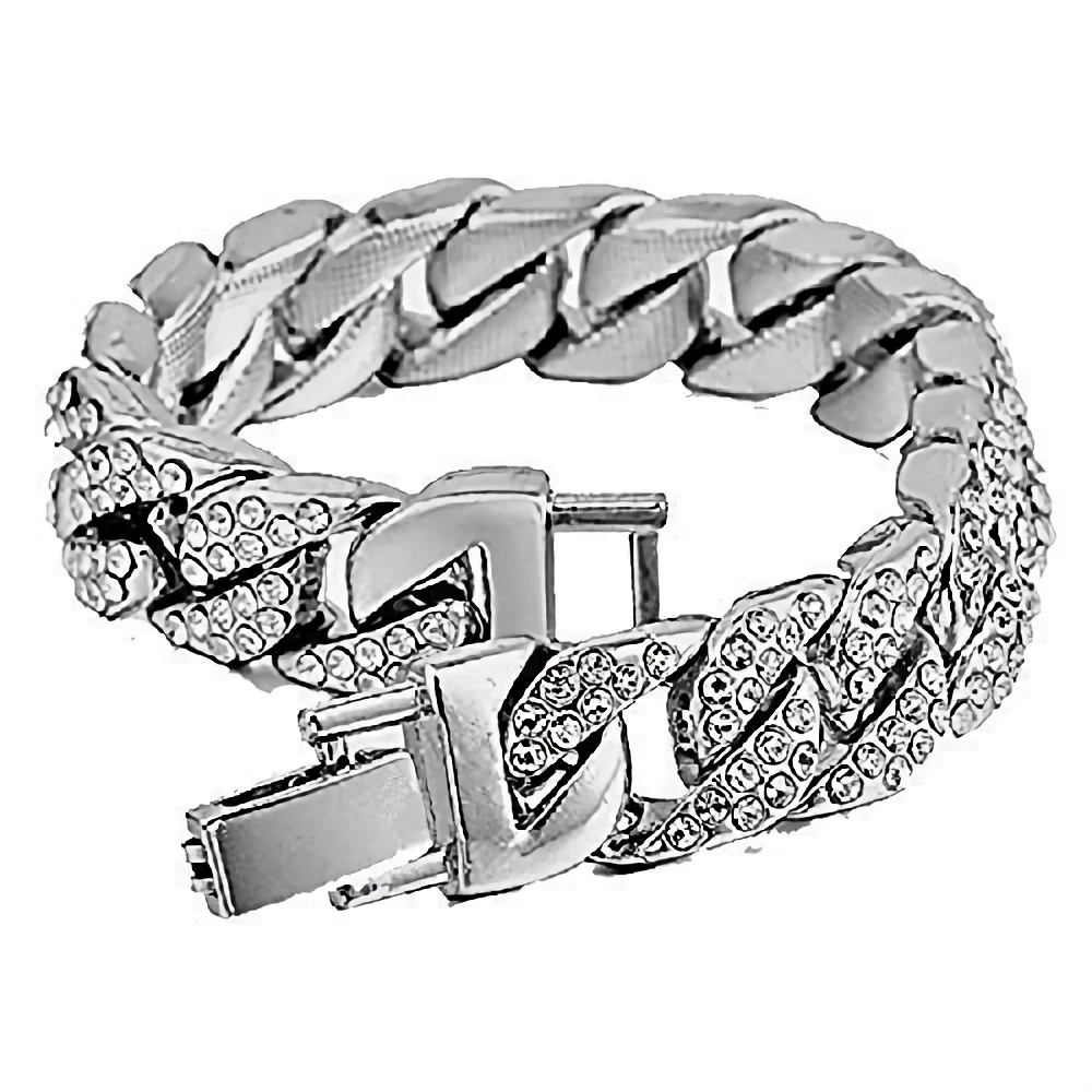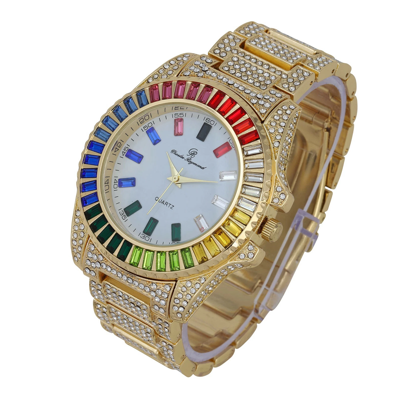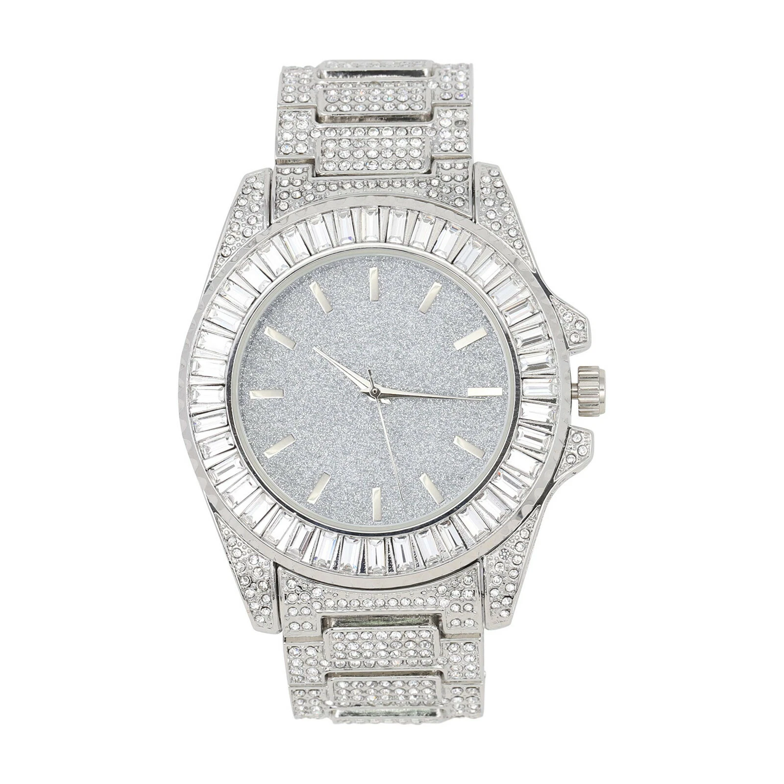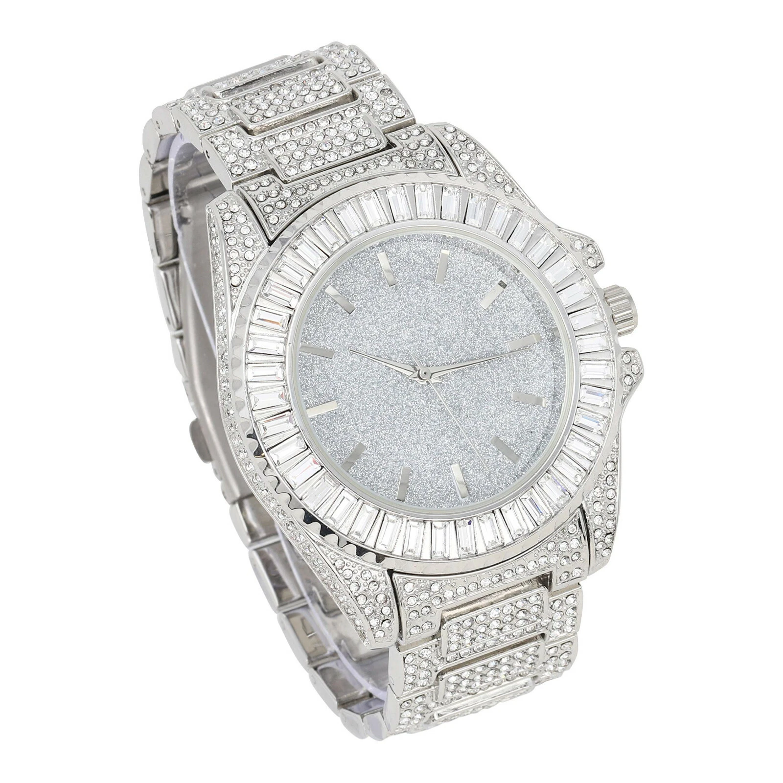 Baguette Cut Diamond Crystal Blinged Mens Watch and Cuban Bracelet - ST10372C