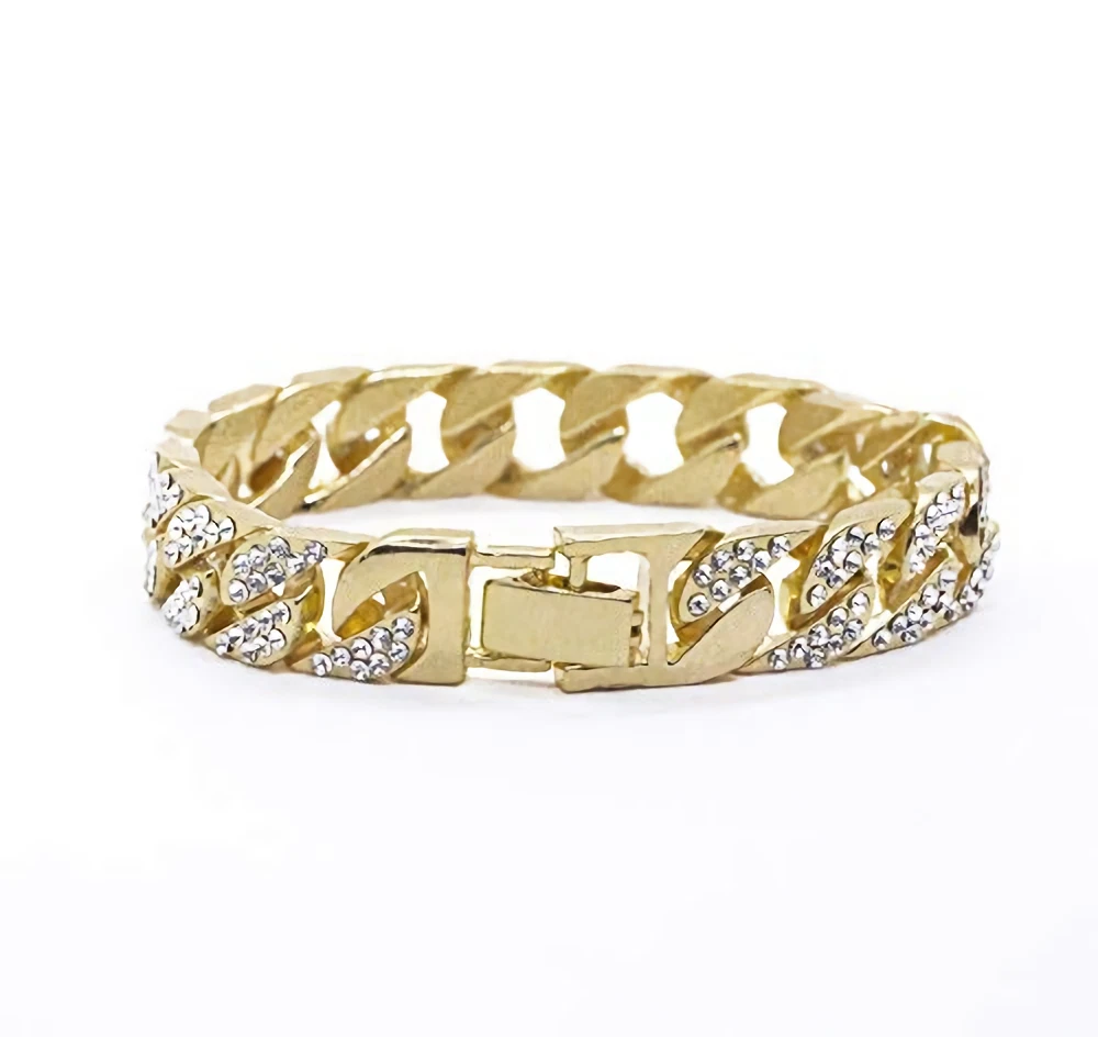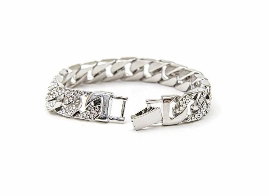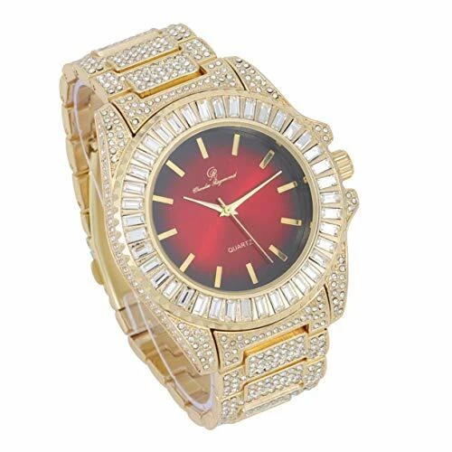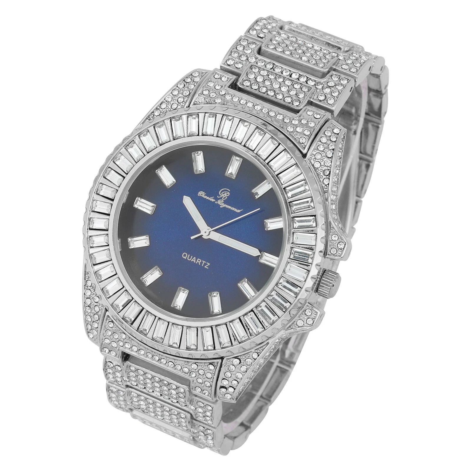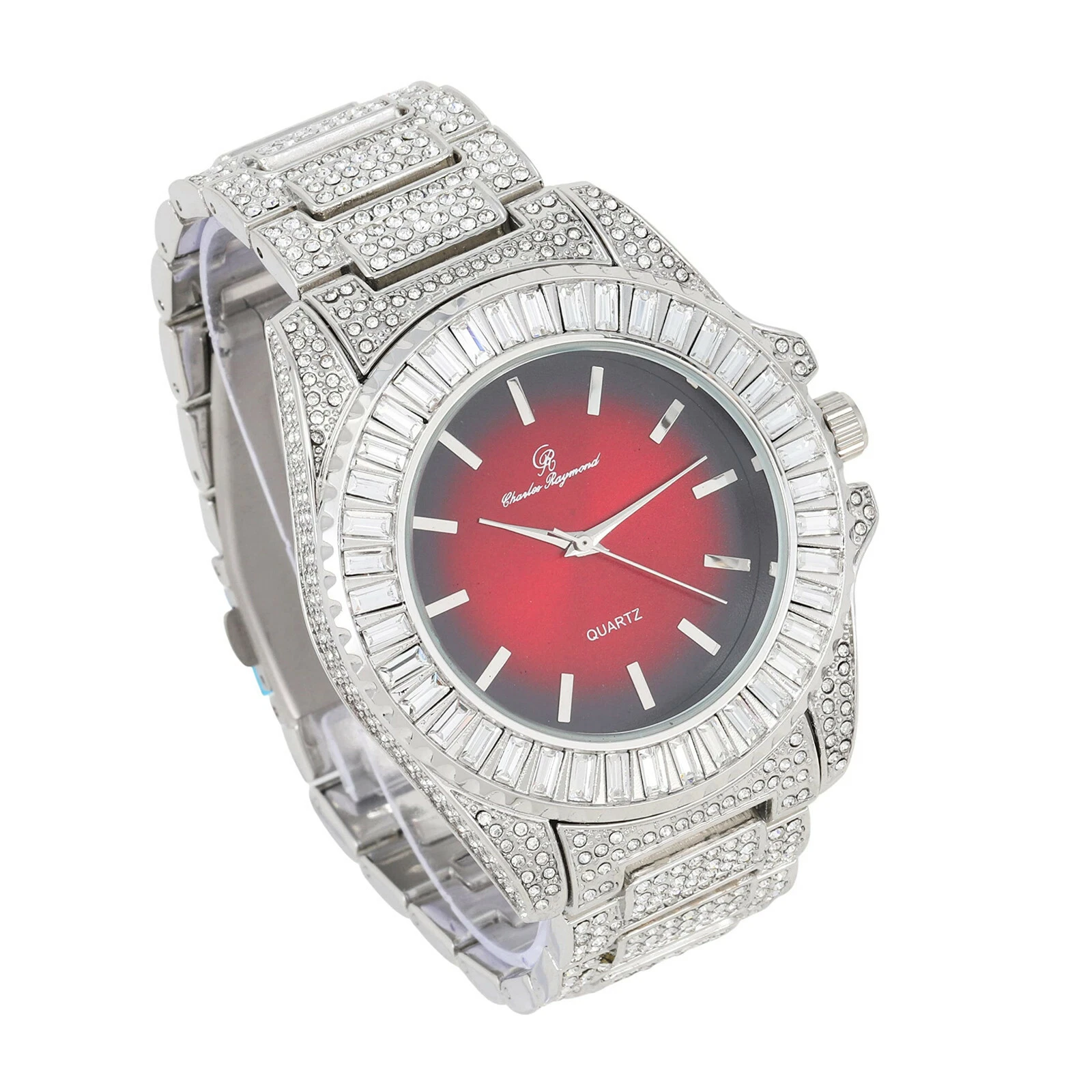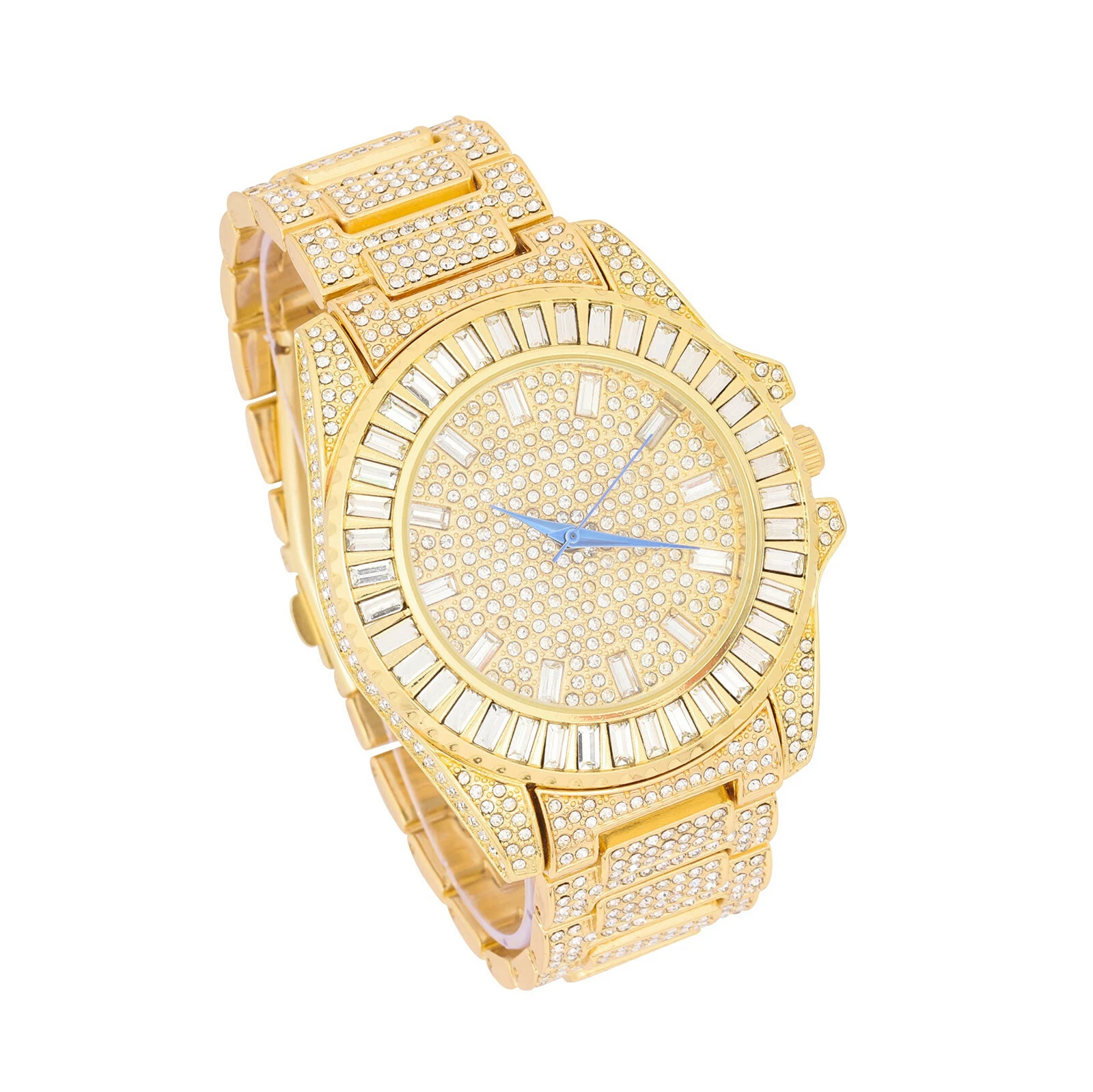 Baguette Cut Diamond Crystal Blinged Mens Watch and Cuban Bracelet - ST10372C