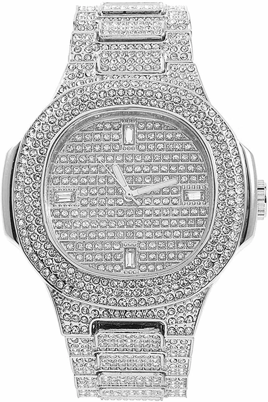 Oblong Case Mens Watch w/Cuban Bracelet, Necklace,Tennis Chain & Ring 8967CRNTS