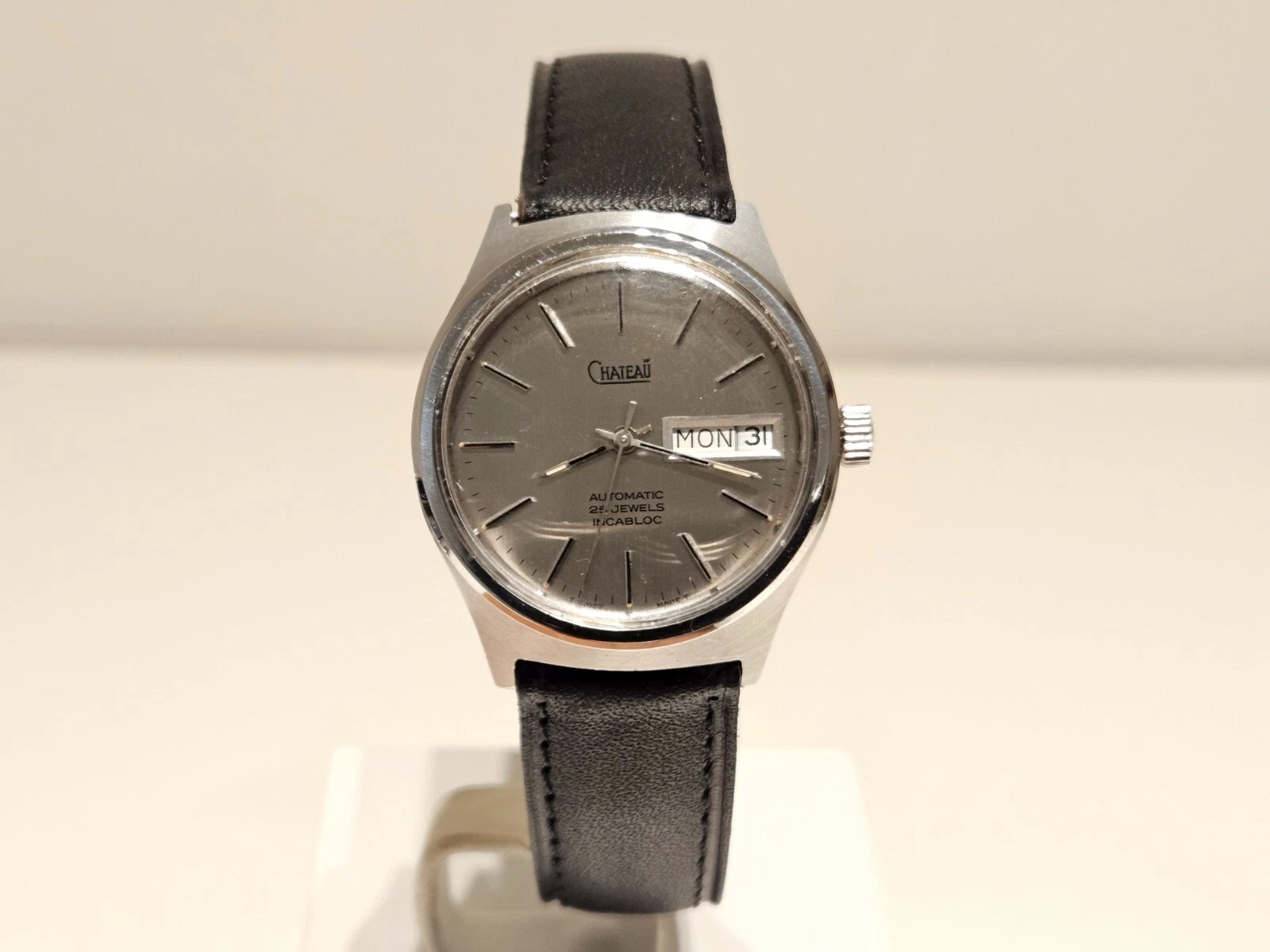VINTAGE RARE SWISS MEN'S ALL ST.STEEL AUTOMATIC DAY-DATE WATCH "CHATEAU"/ETA 25J
