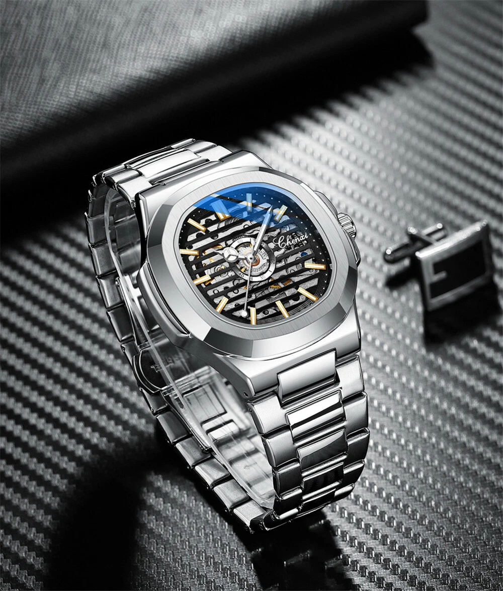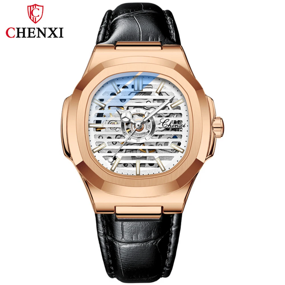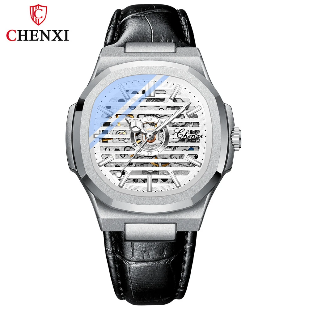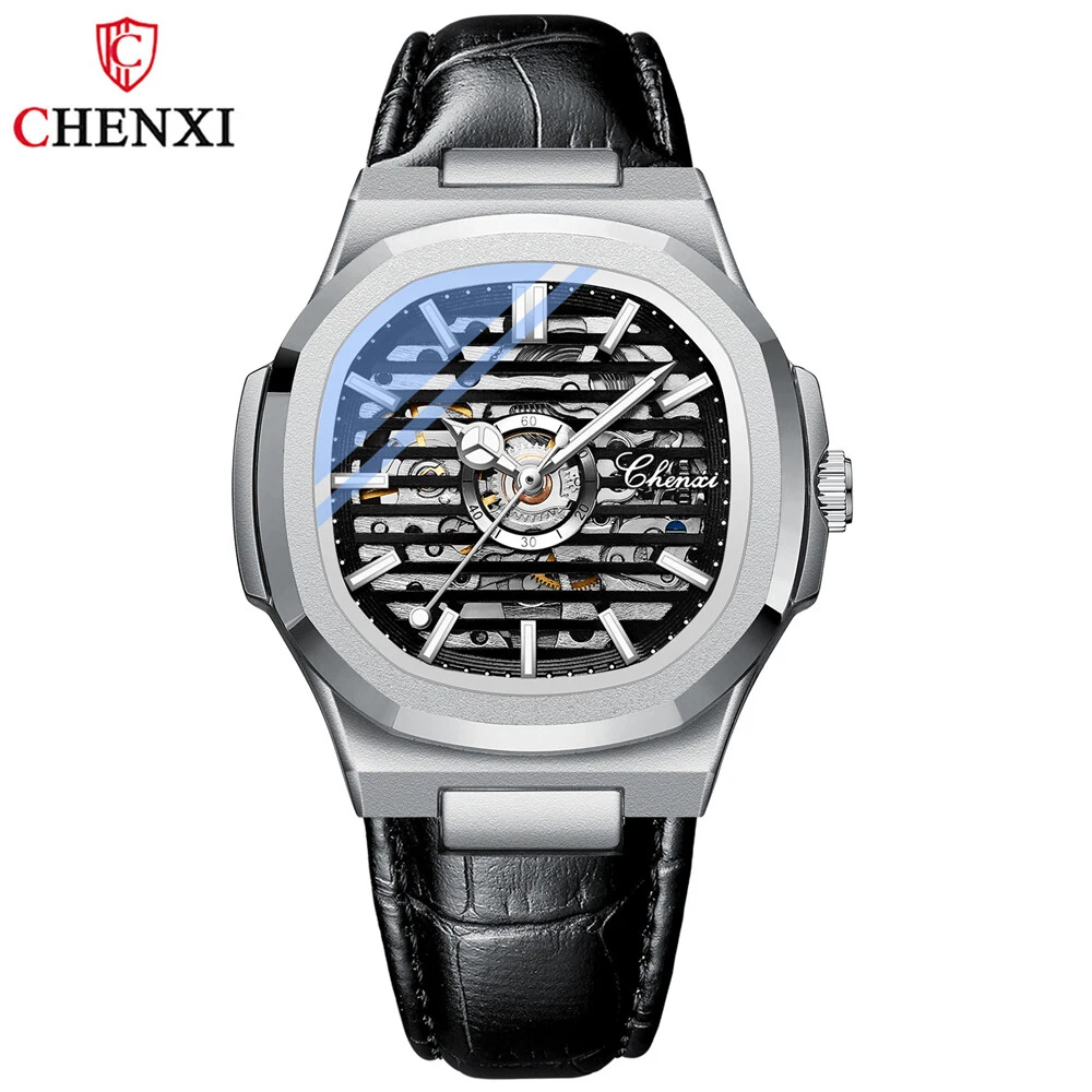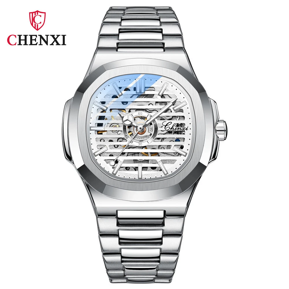 CHENXI Men Watch Automatic Mechanical Wristwatch Luxury Silver Business Watches