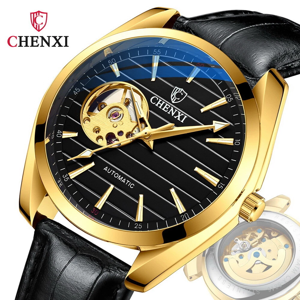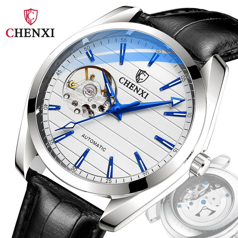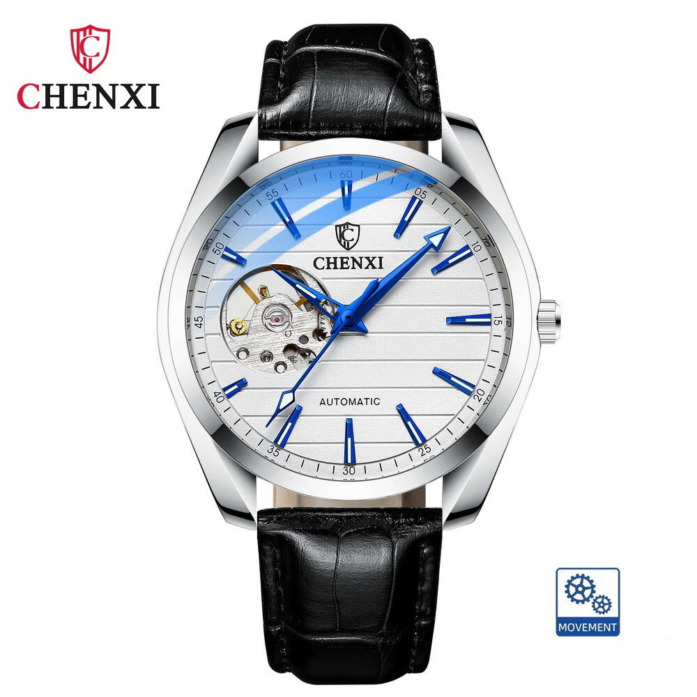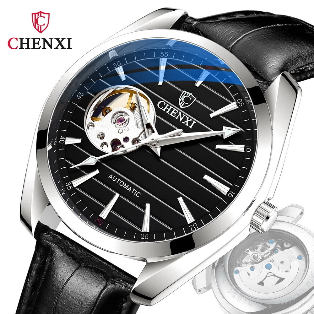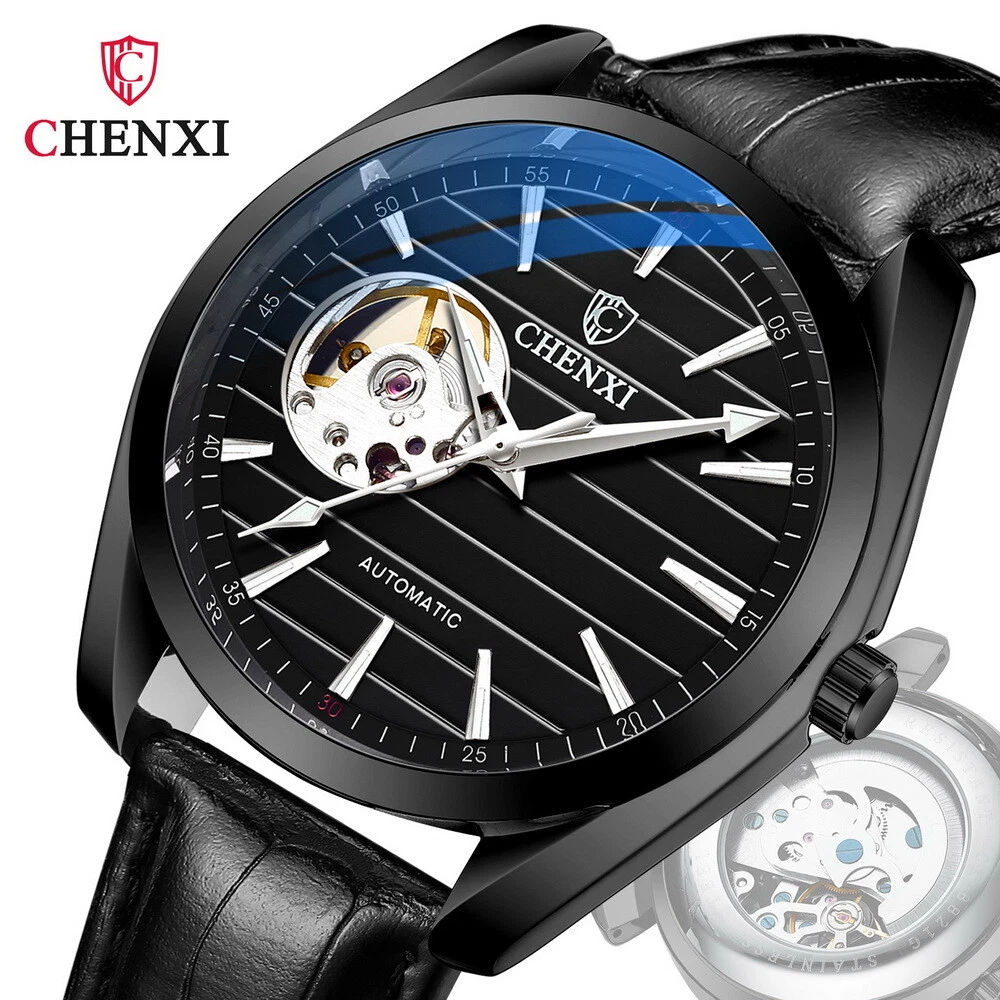 CHENXI Men's Leather Tourbillon Waterproof Luminous Automatic Mechanical Watch