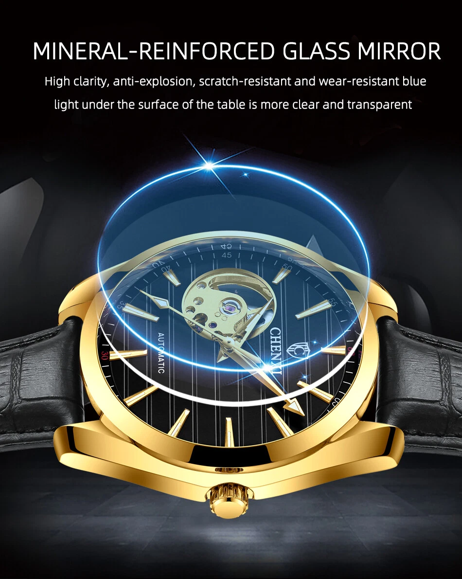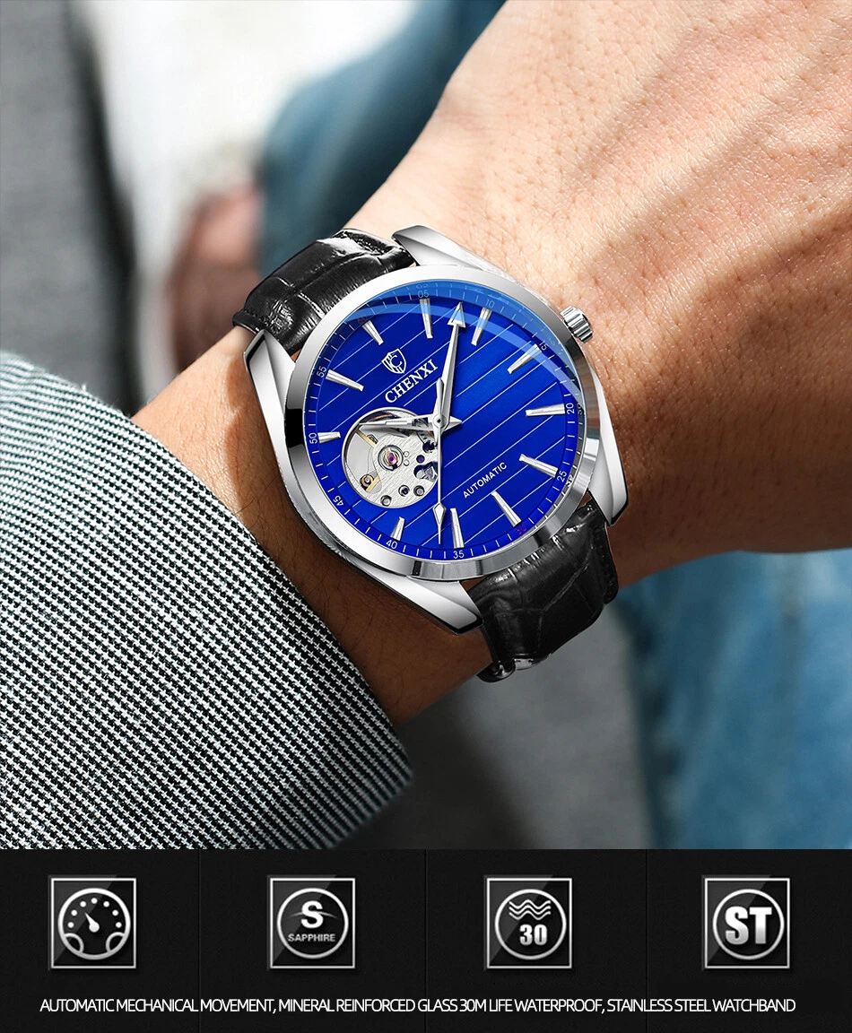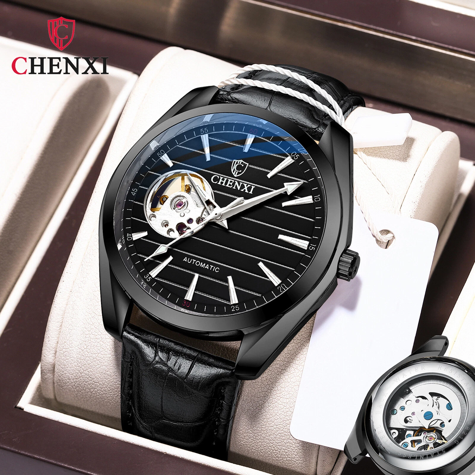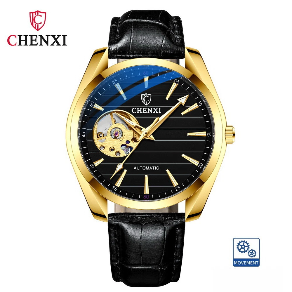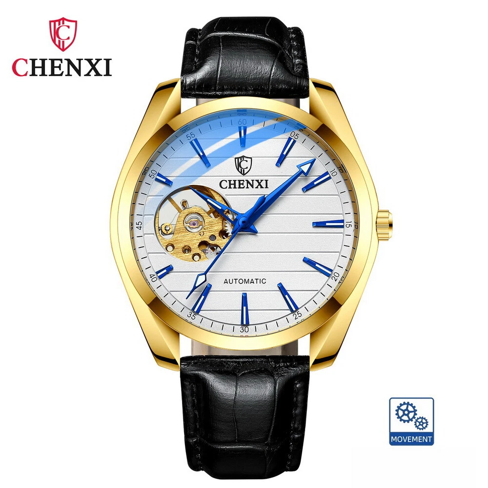 CHENXI Men's Leather Tourbillon Waterproof Luminous Automatic Mechanical Watch