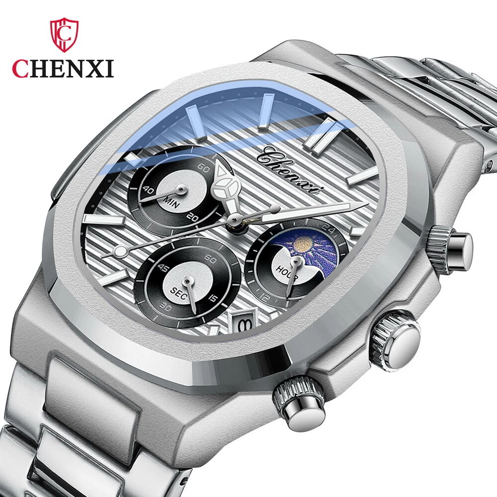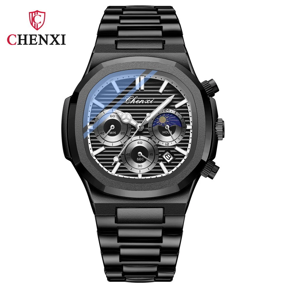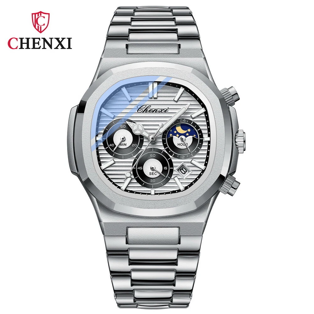 CHENXI Men's Octagon Multifunction Chronograph Calendar Waterproof Quartz Watch