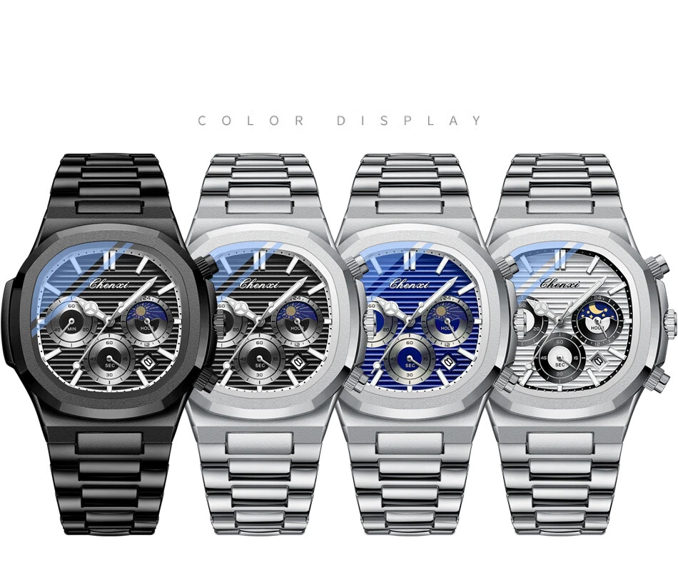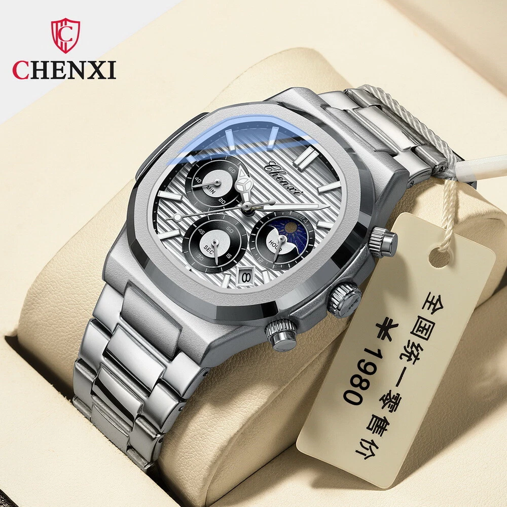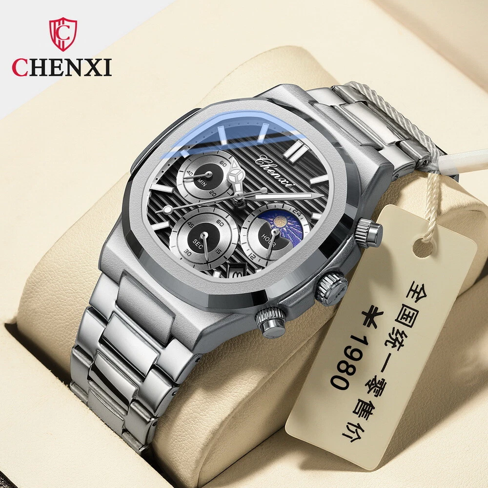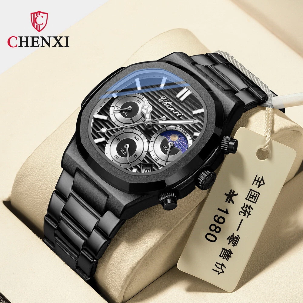 CHENXI Men's Octagon Multifunction Chronograph Calendar Waterproof Quartz Watch